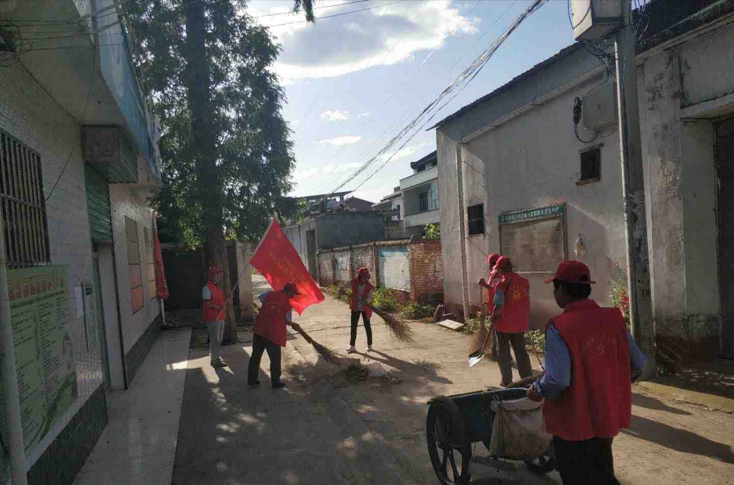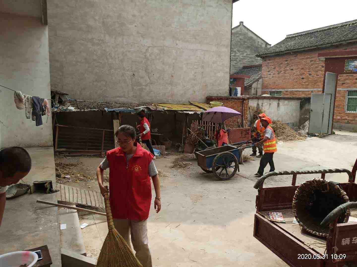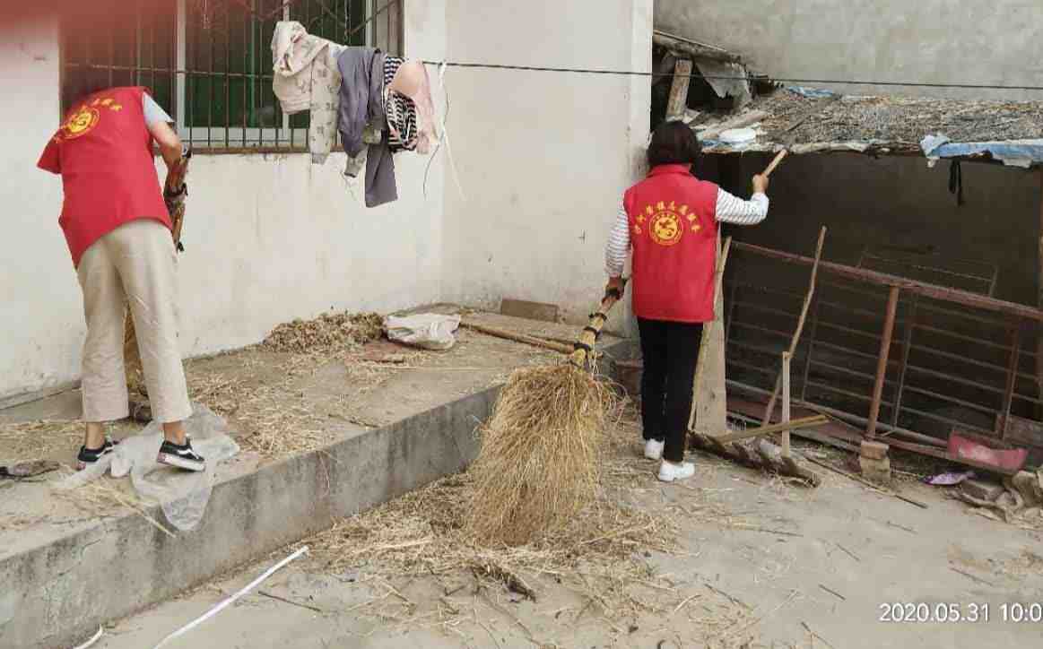 在活动中 ,志愿者为贫困户打扫卫生,清理积存垃圾和不常用物品,改善居住环境。