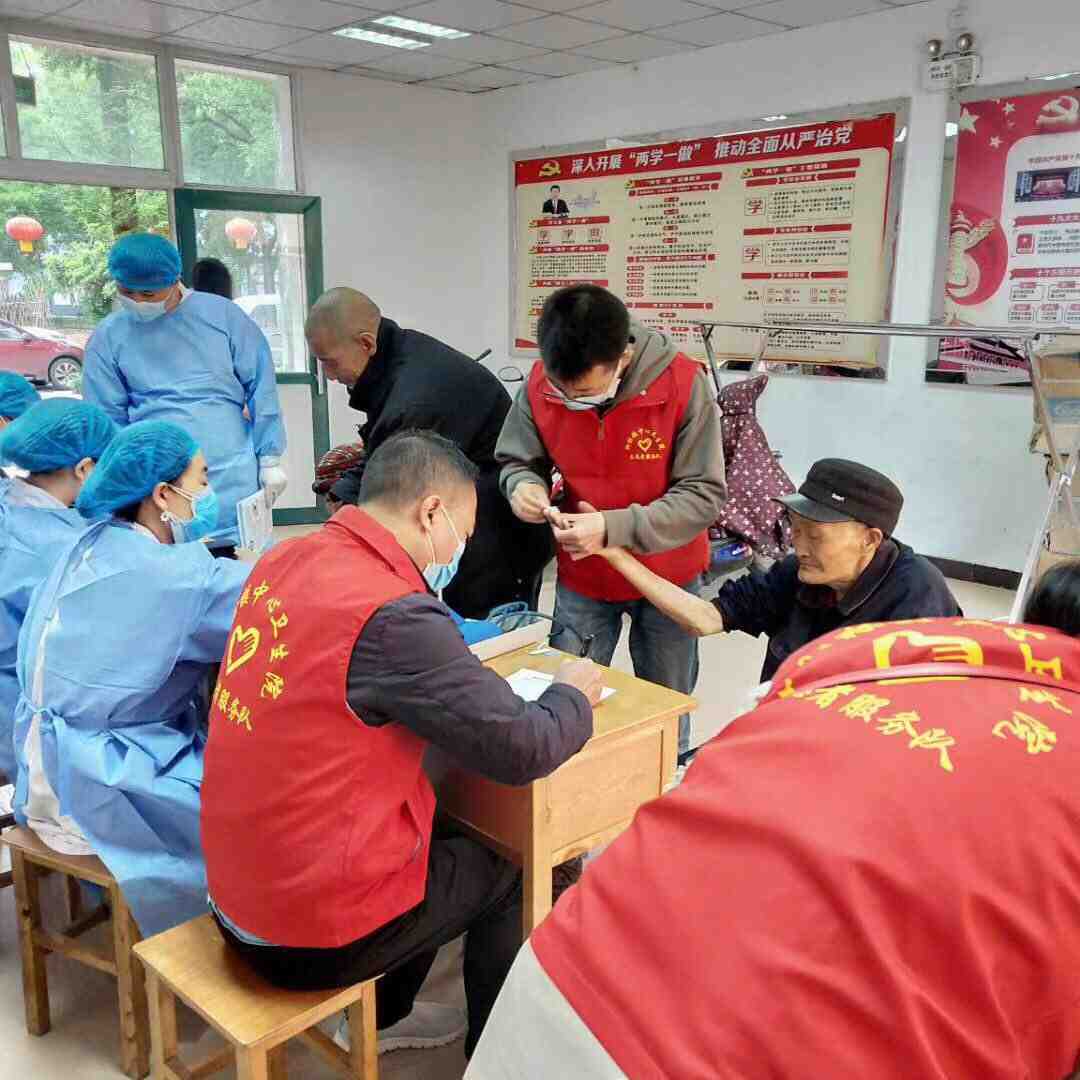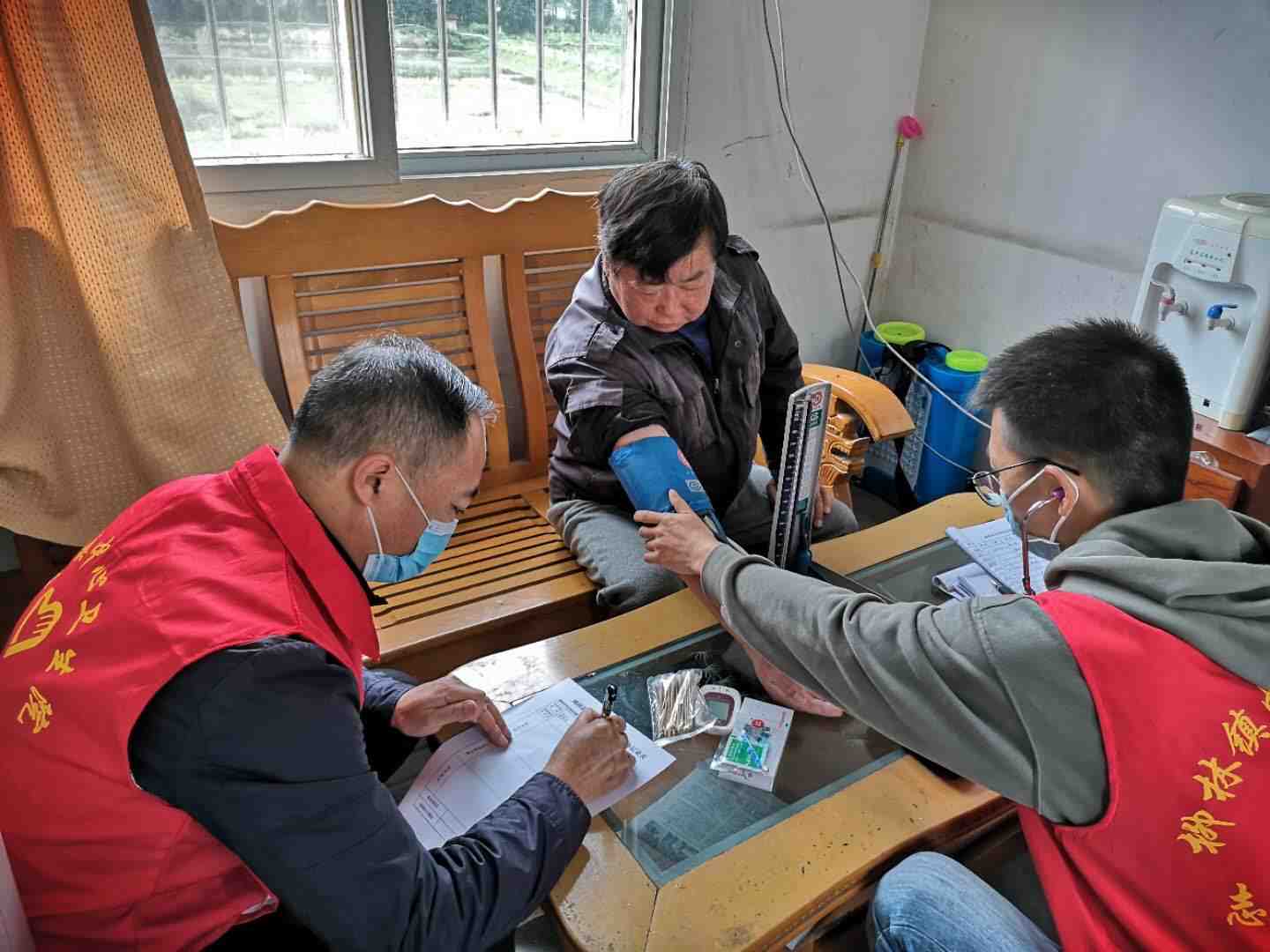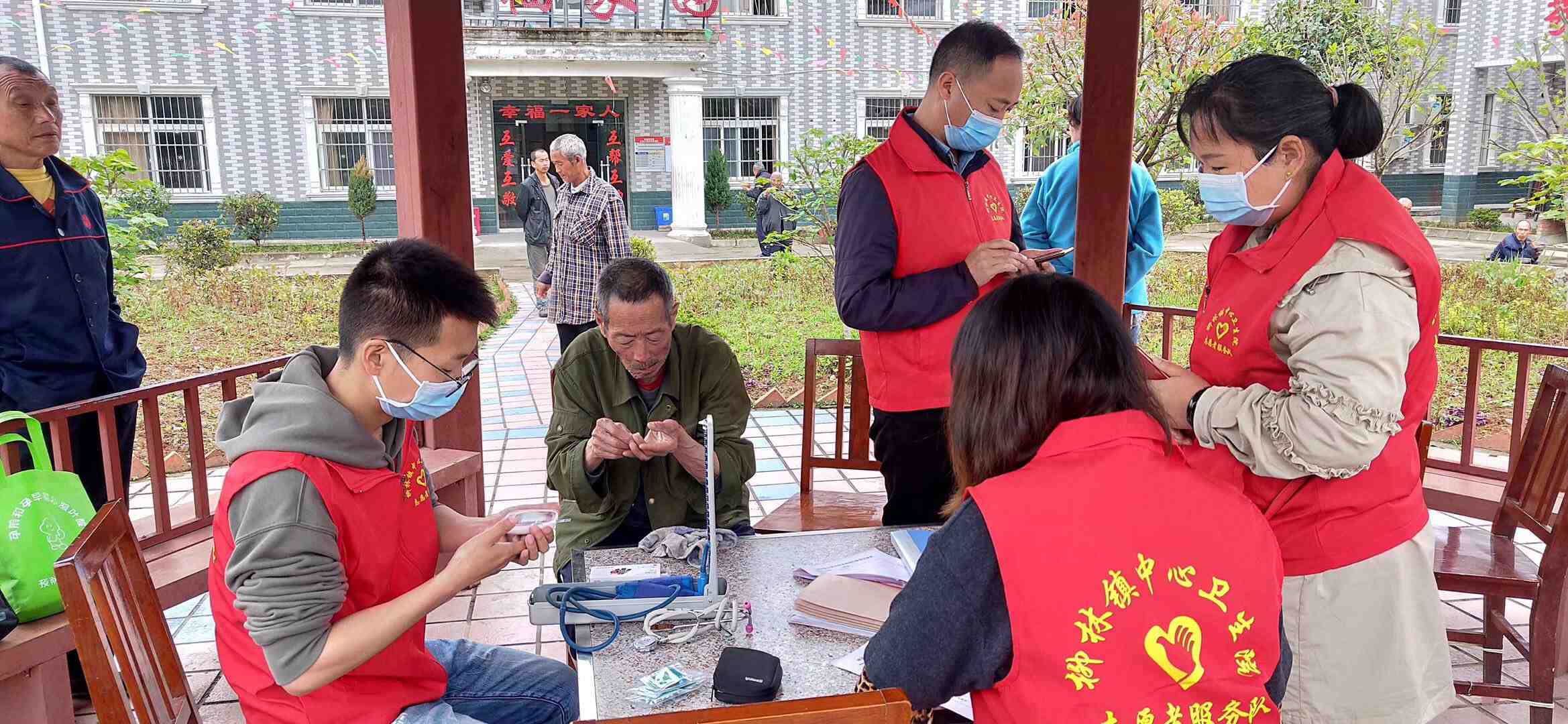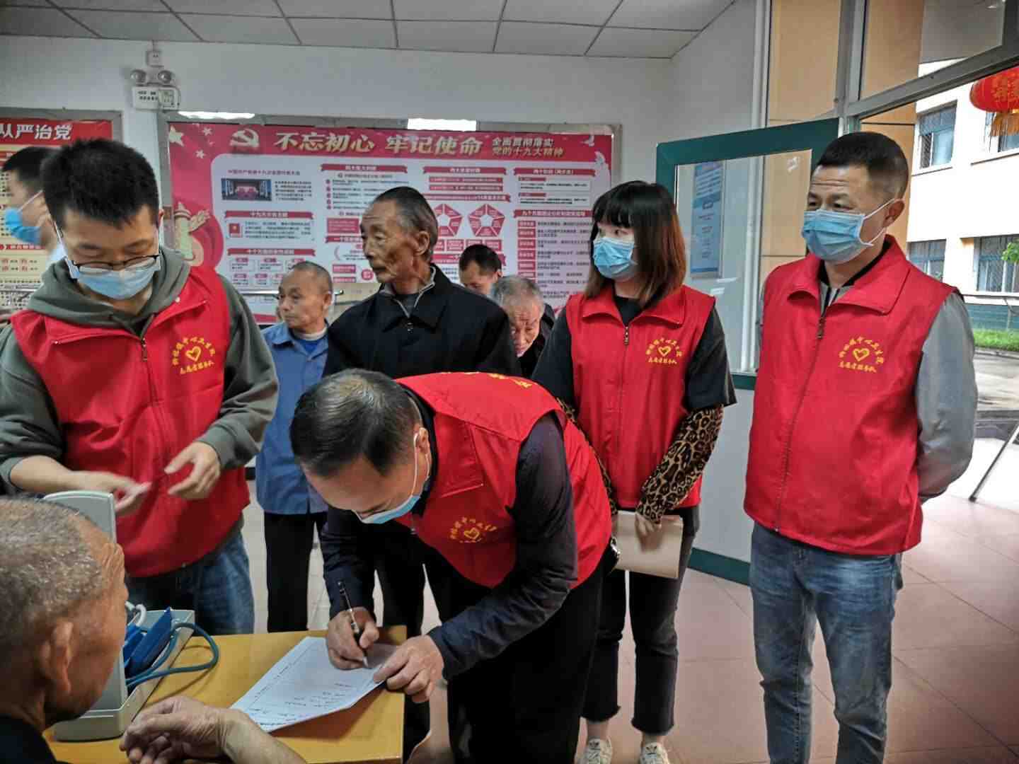 城固县柳林镇中心卫生院新时代文明志愿者服务队到五堵敬老院为老人测血糖、量血压、进行用药指导。