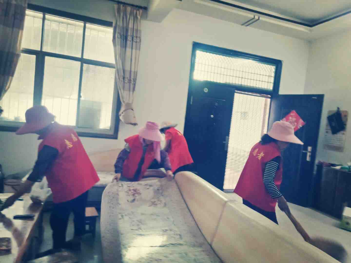 文光村组织志愿者到文光村六组余家山余文华家进行环境卫生大扫除,经整理后环境卫生达到干净整洁的场面