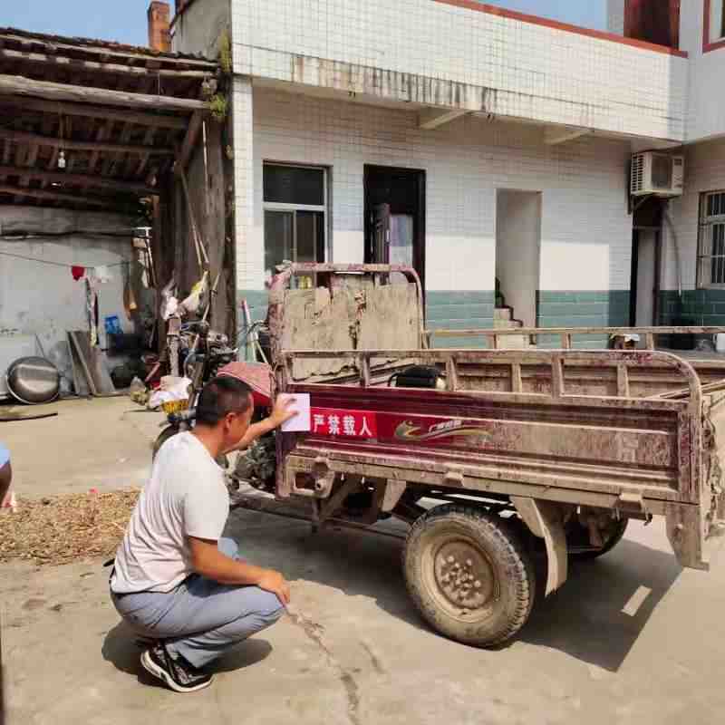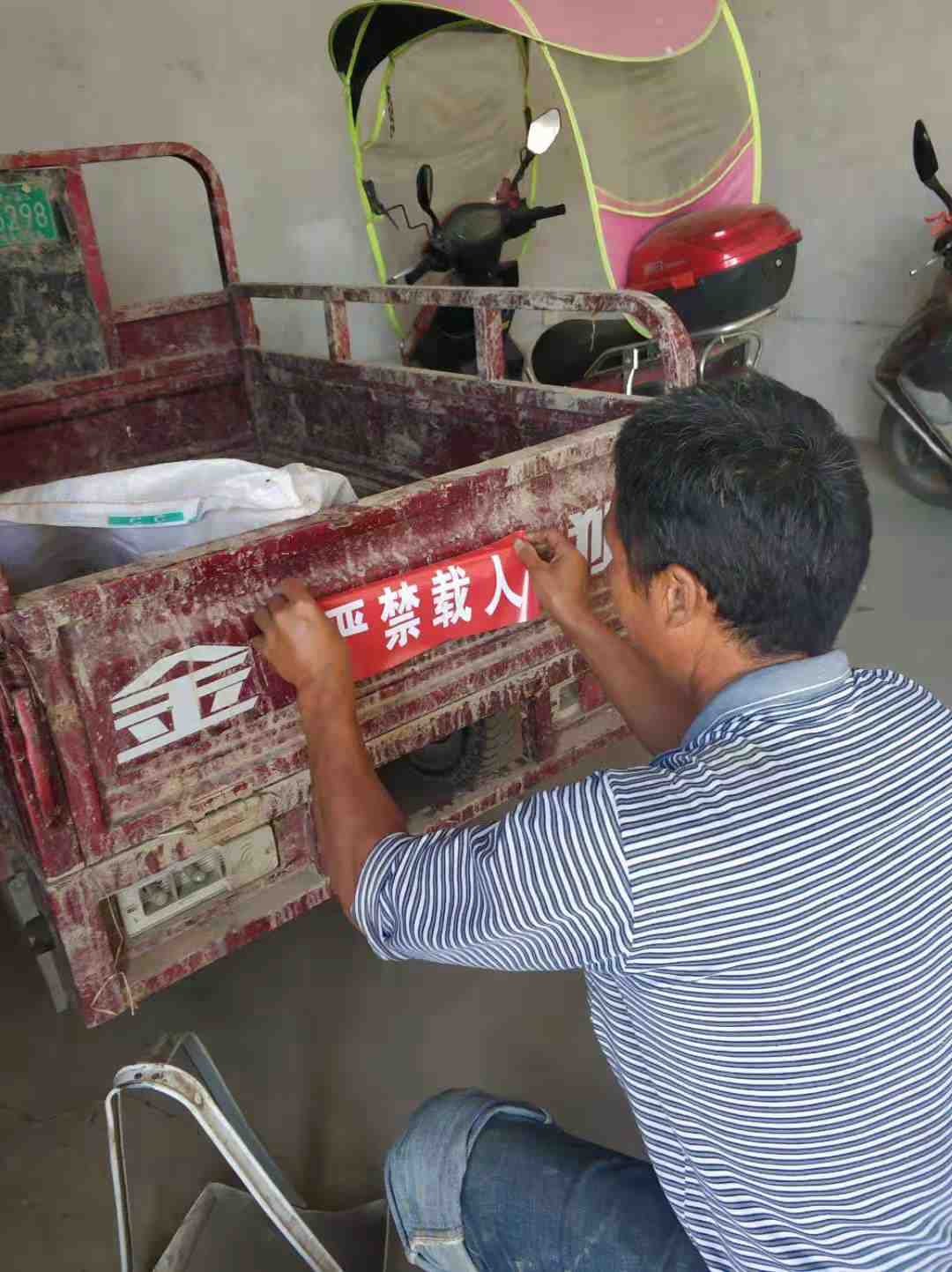 逐户走访排查,宣传并张贴“严禁载人”标语,并对车辆进行登记。