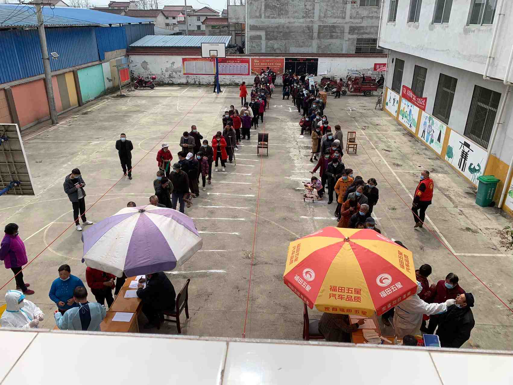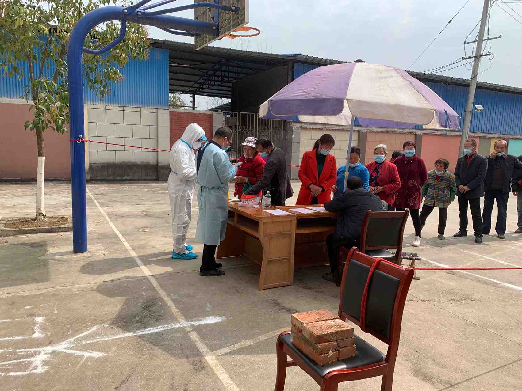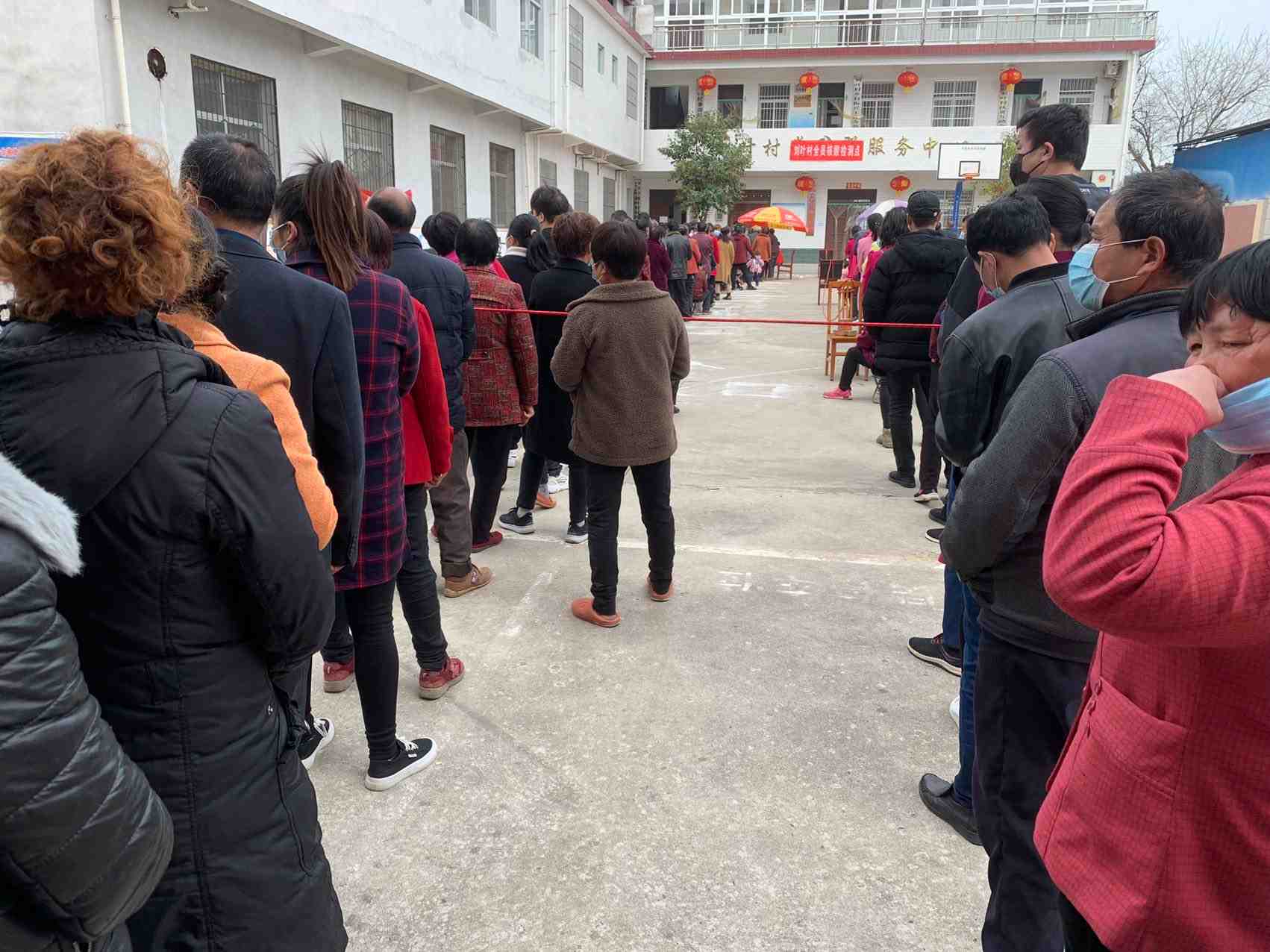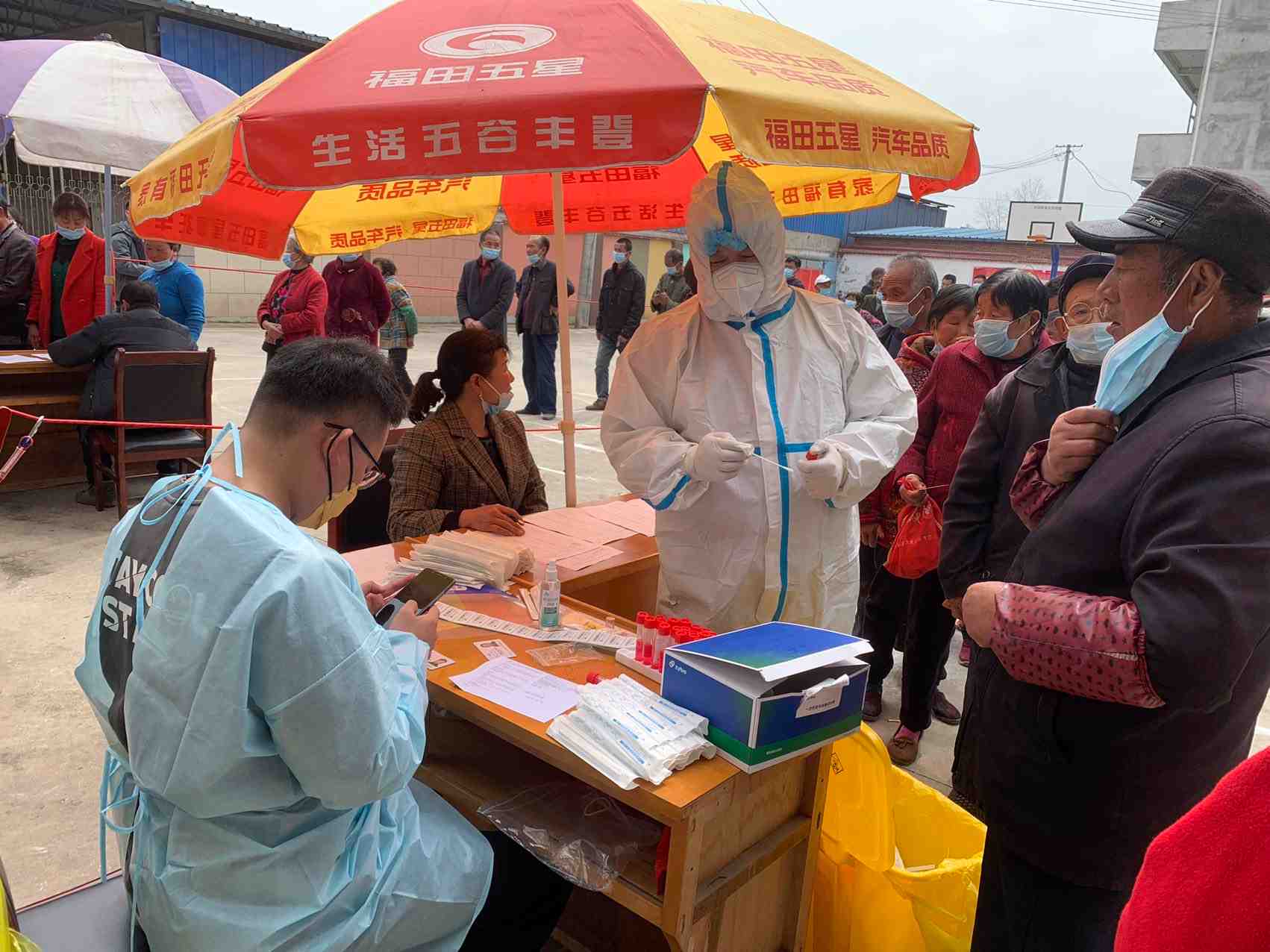 通过村组干部的准备,村民们的积极配合和大家对疫情防控工作的重视,村民们早早来排起了长队,等待检测。
