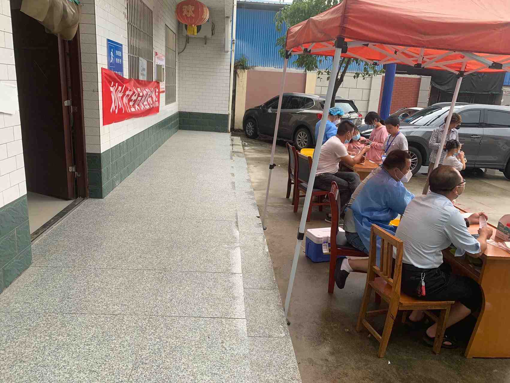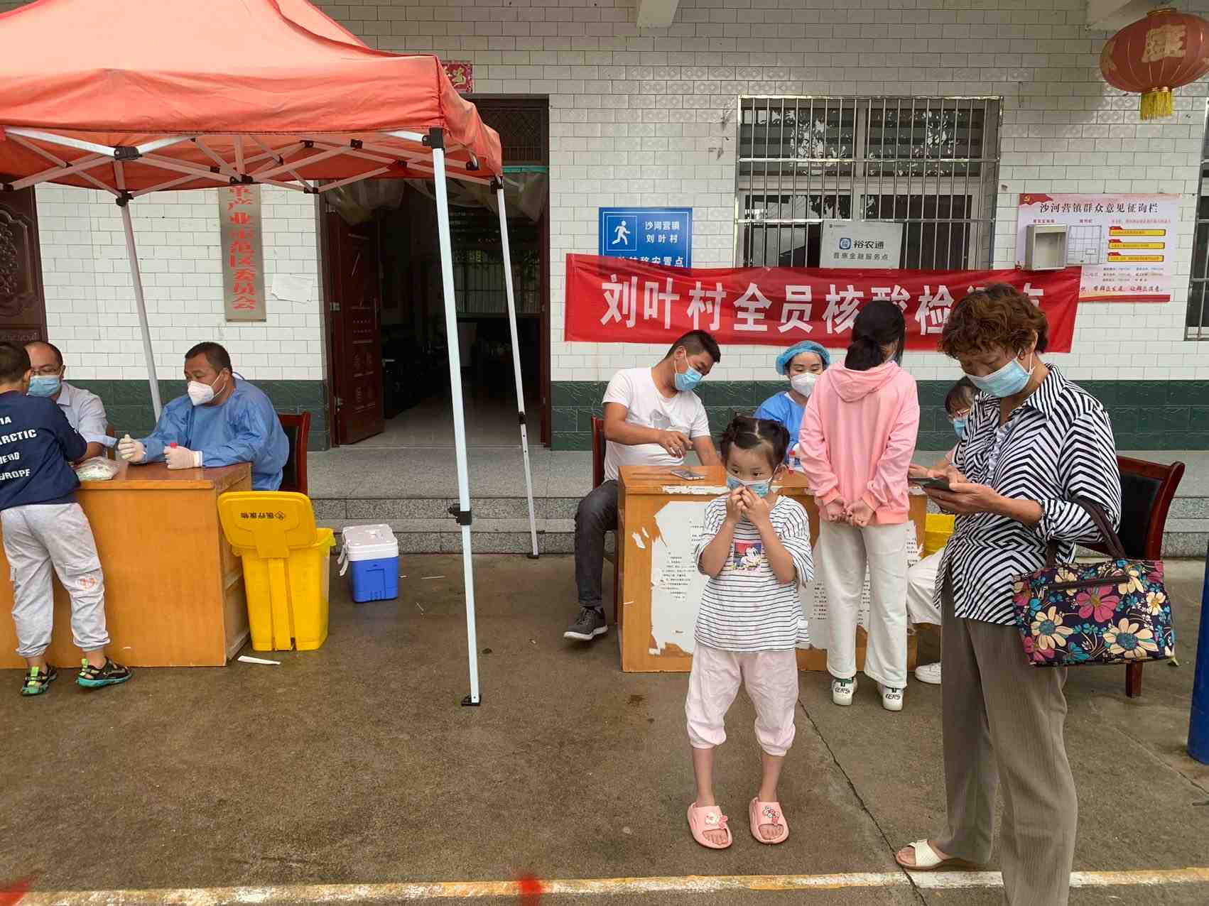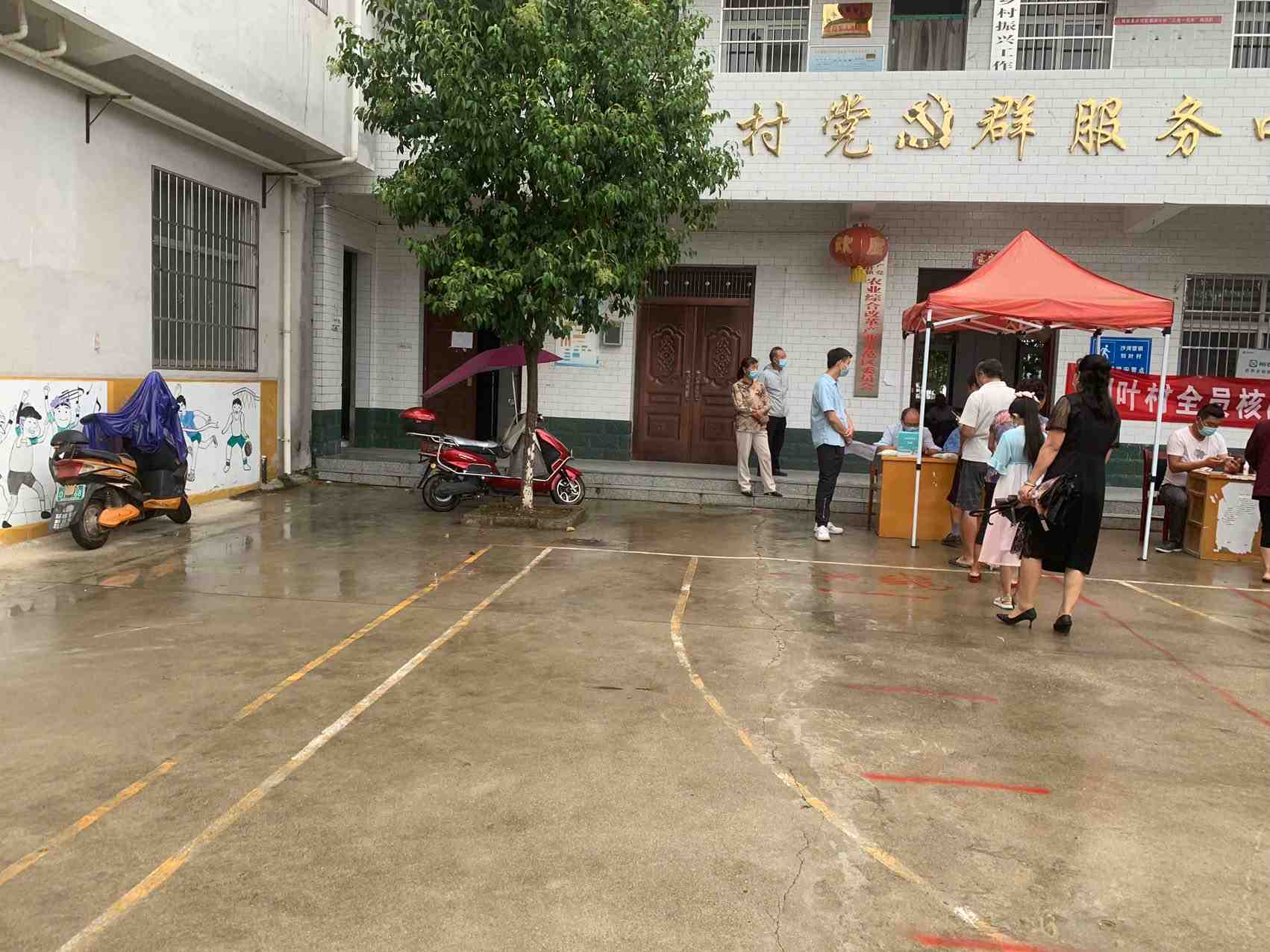 今天天气虽然下着雨,村民们都三三两两的打着雨伞前来做核酸,志愿者们也给大家做好了后勤保障工作。