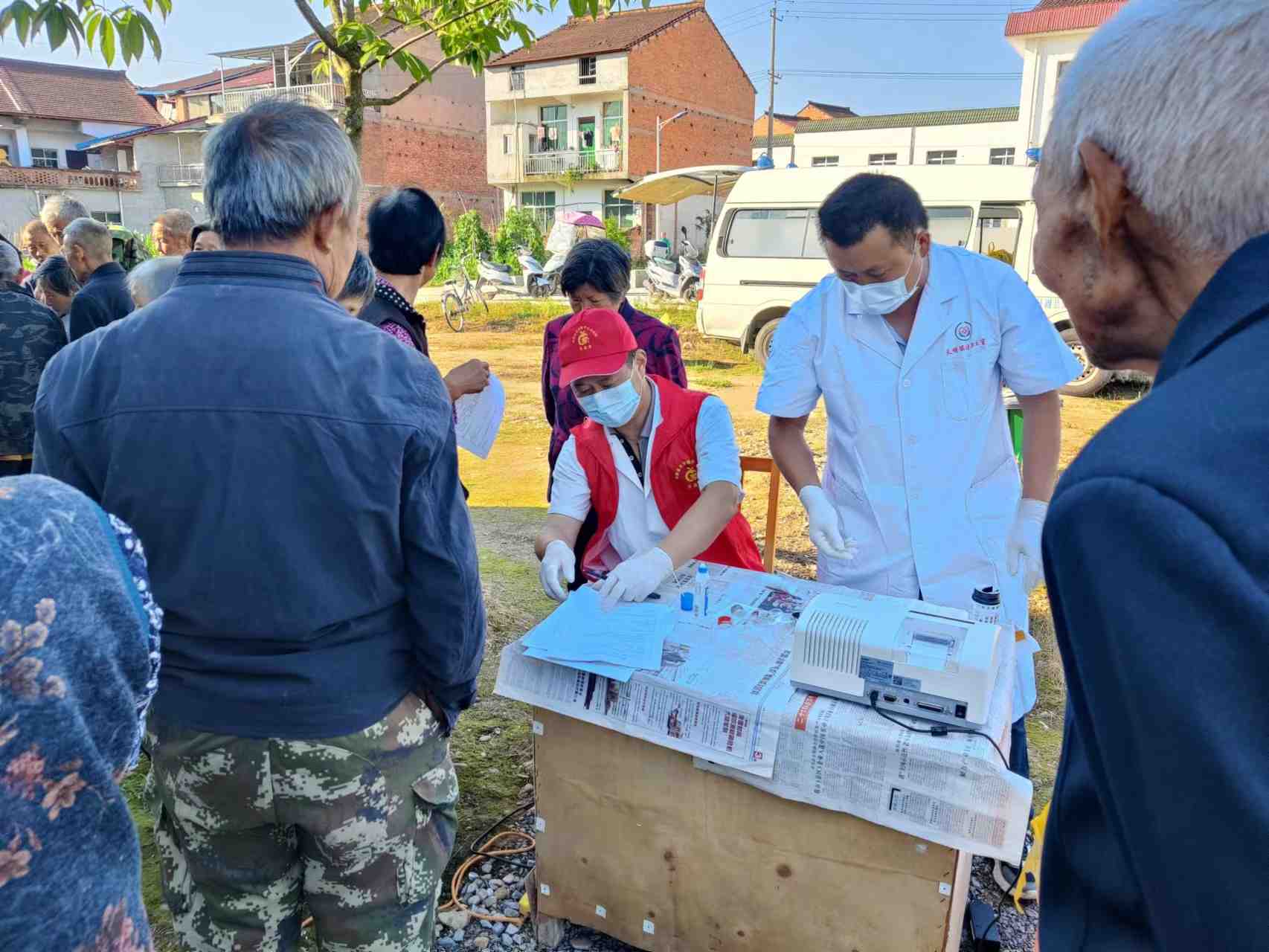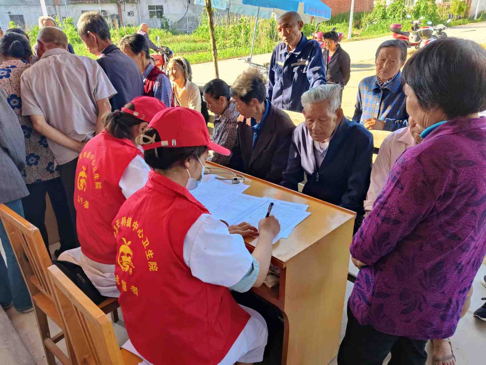 6月13日天明镇中心卫生院家庭医生体检团队为辖区盐井村65岁以上老年人进行免费体检。