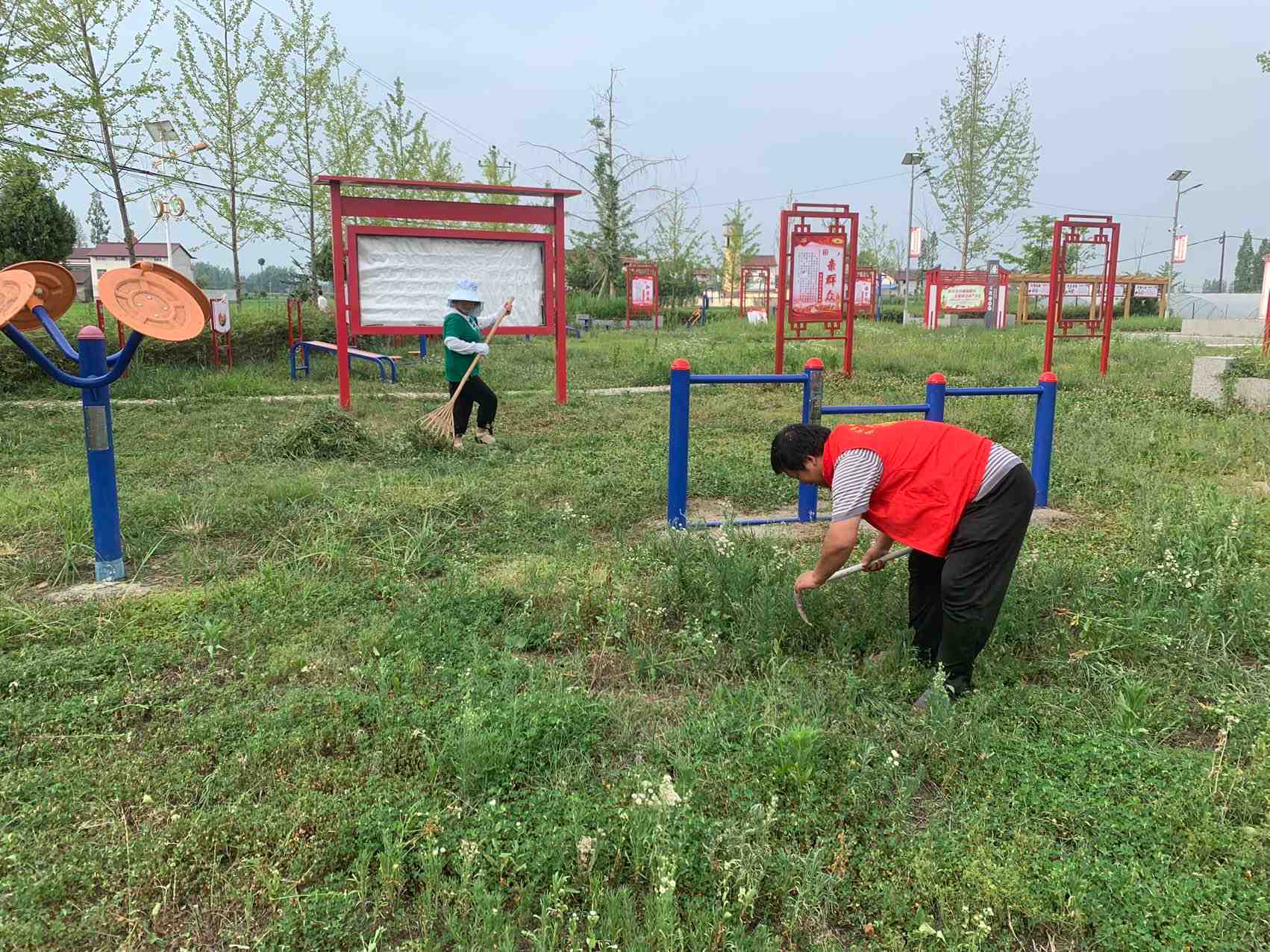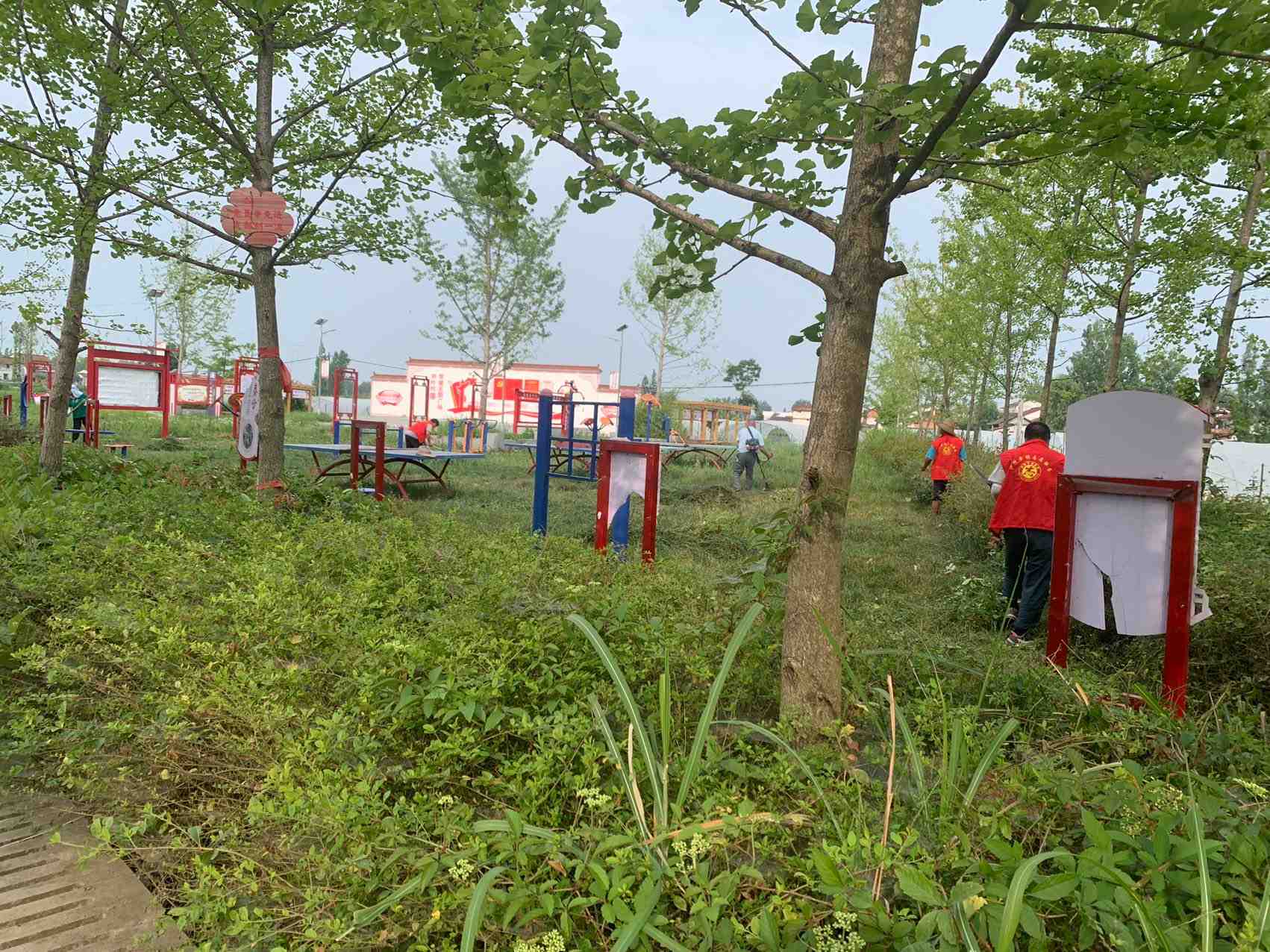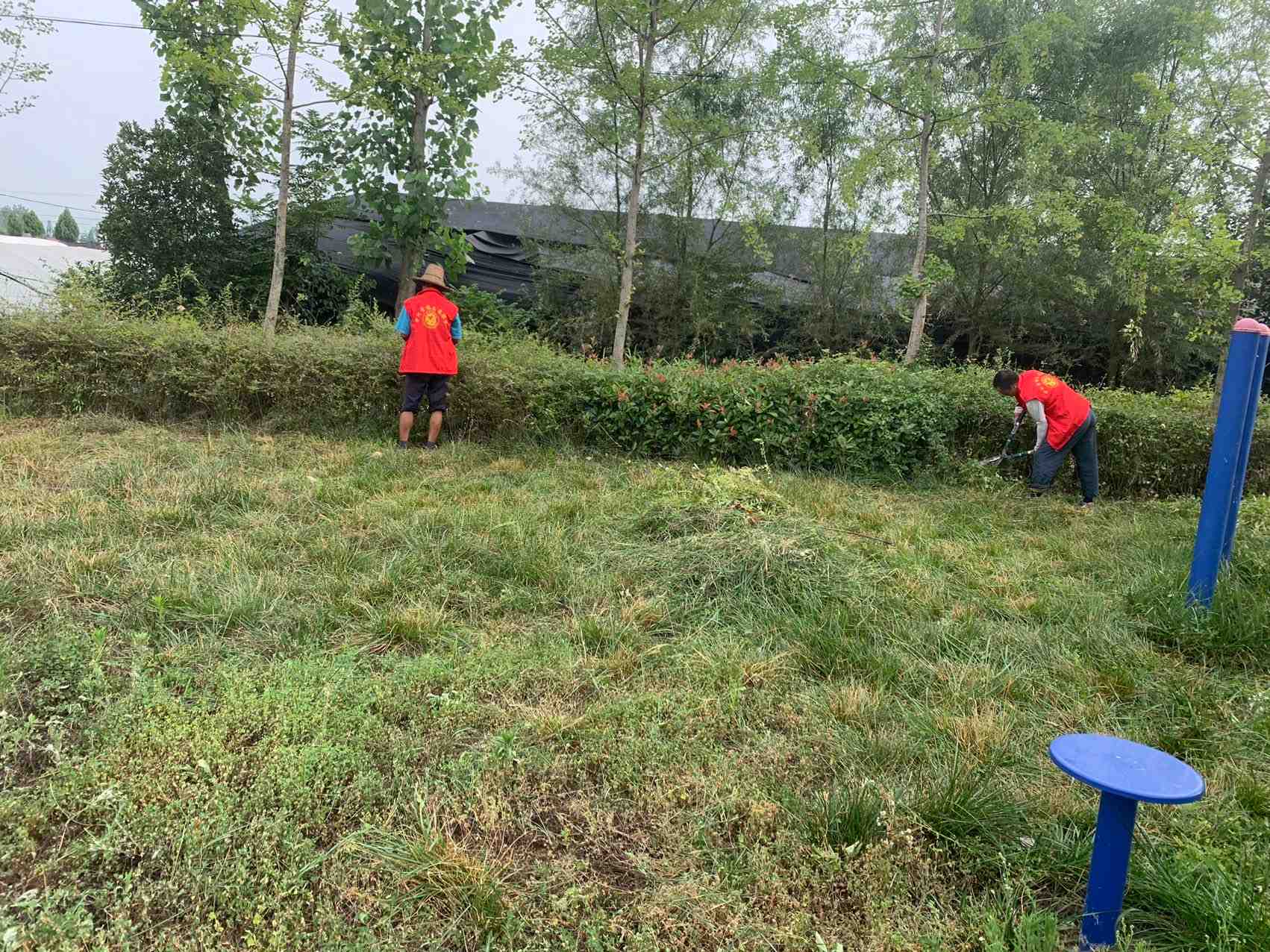 活动很给力,志愿者各自发挥自己能力割草,剪树,捡拾垃圾等,一天时间、把党建主题广场卫生搞的整洁干净。