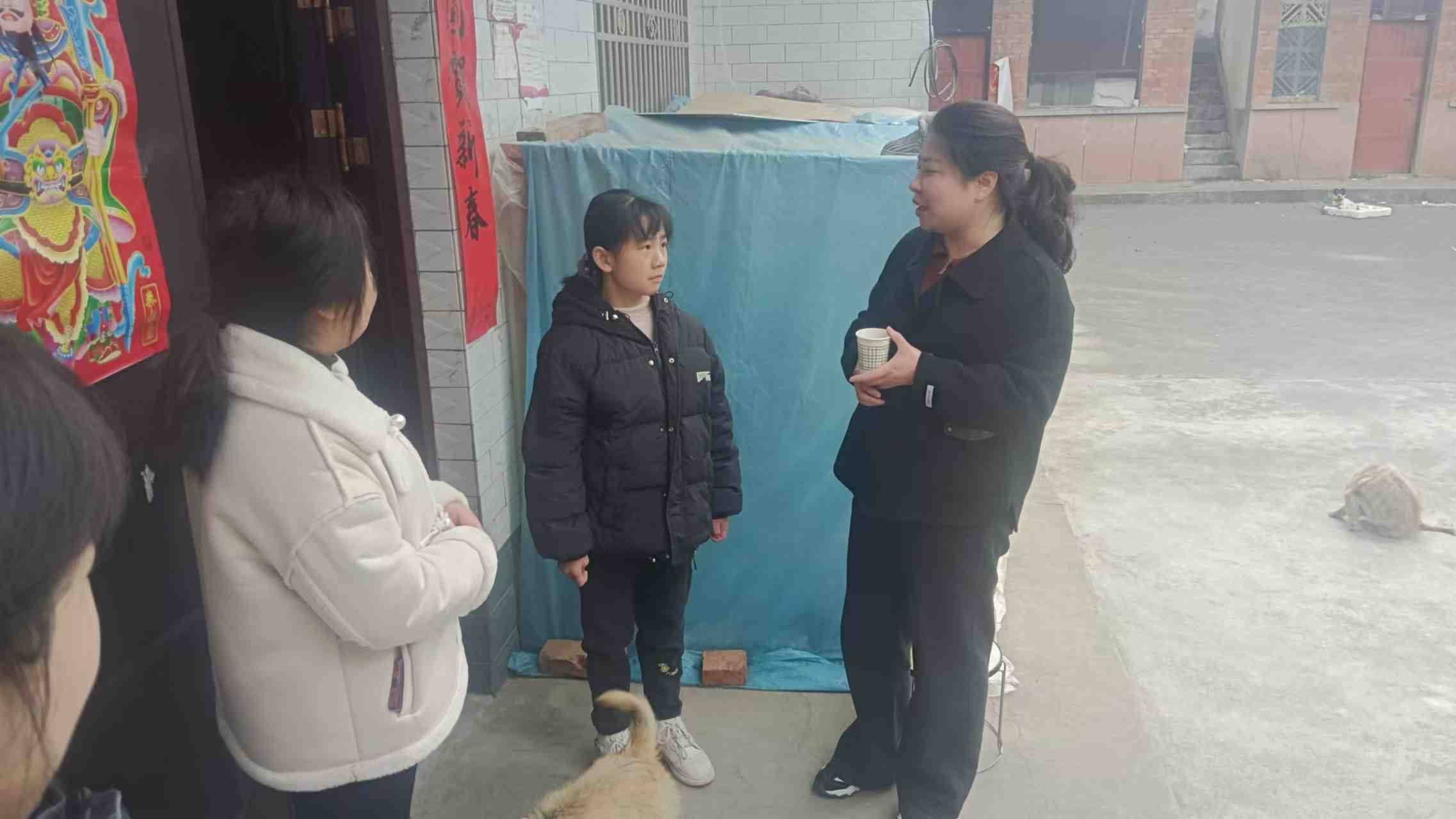志愿者们与留守儿童开展交流,关心她的生活学习。