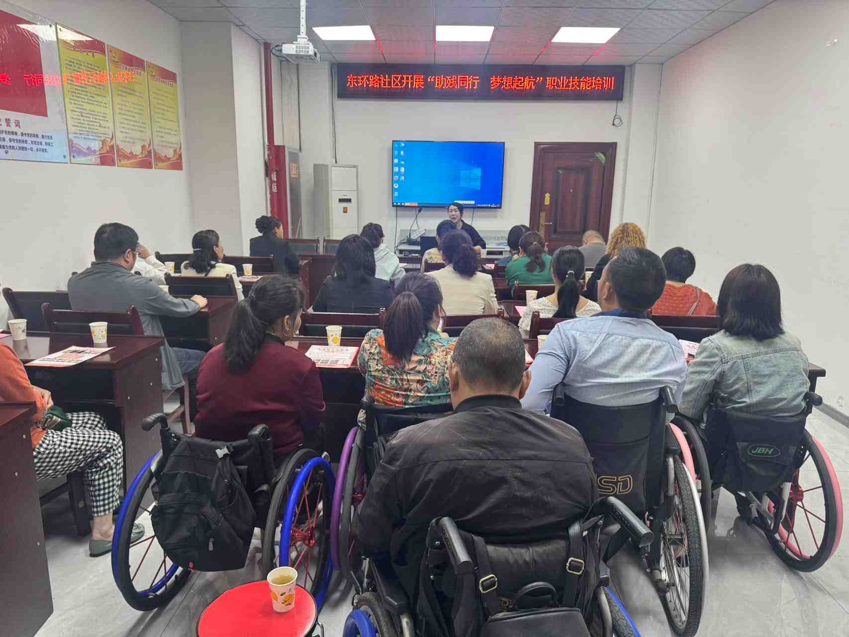东环路社区开展残疾人就业培训活动,现场专业老师通过理论、实操演示等,介绍电商运营流程和技巧,提高残。