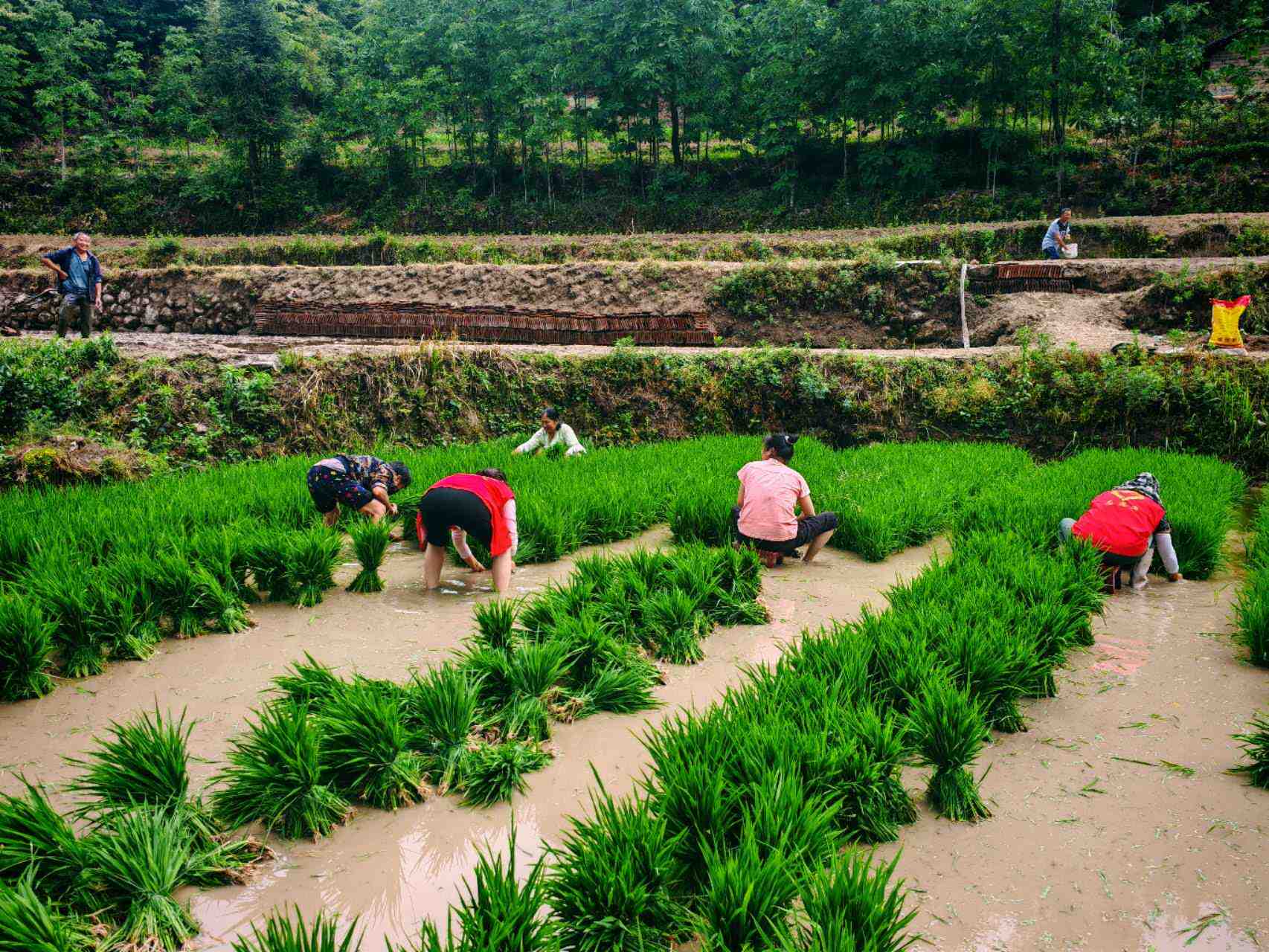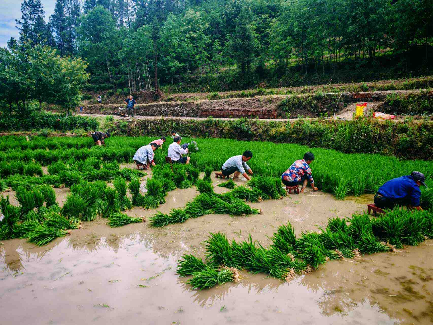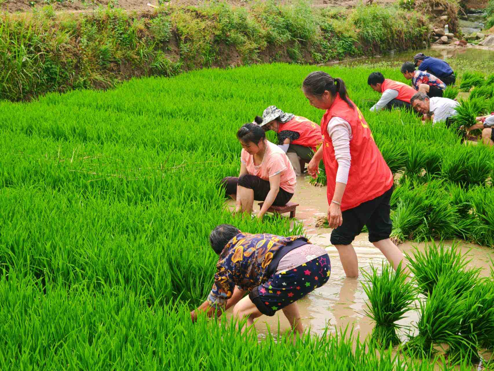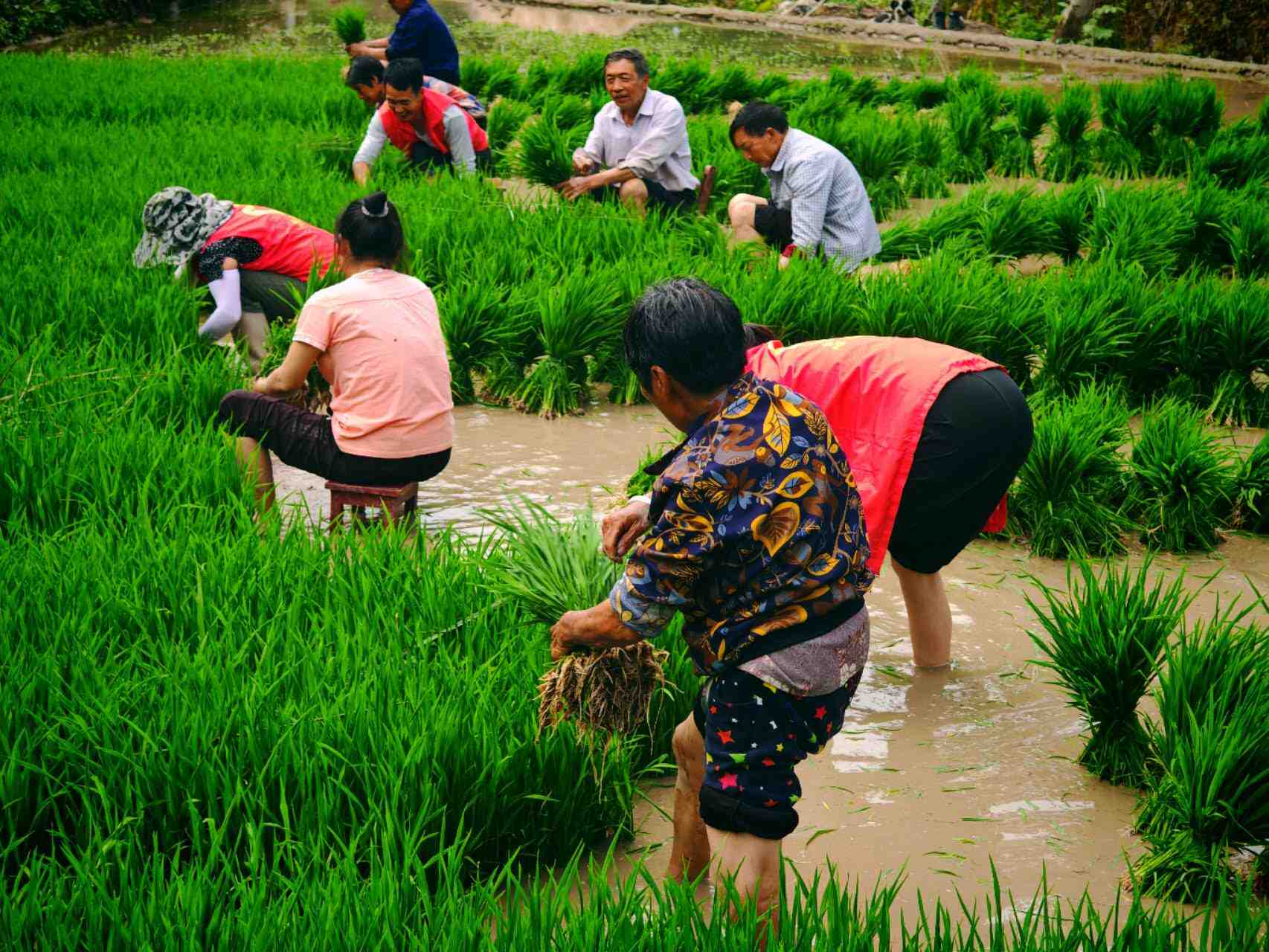 组织志愿者帮助留守老人插秧