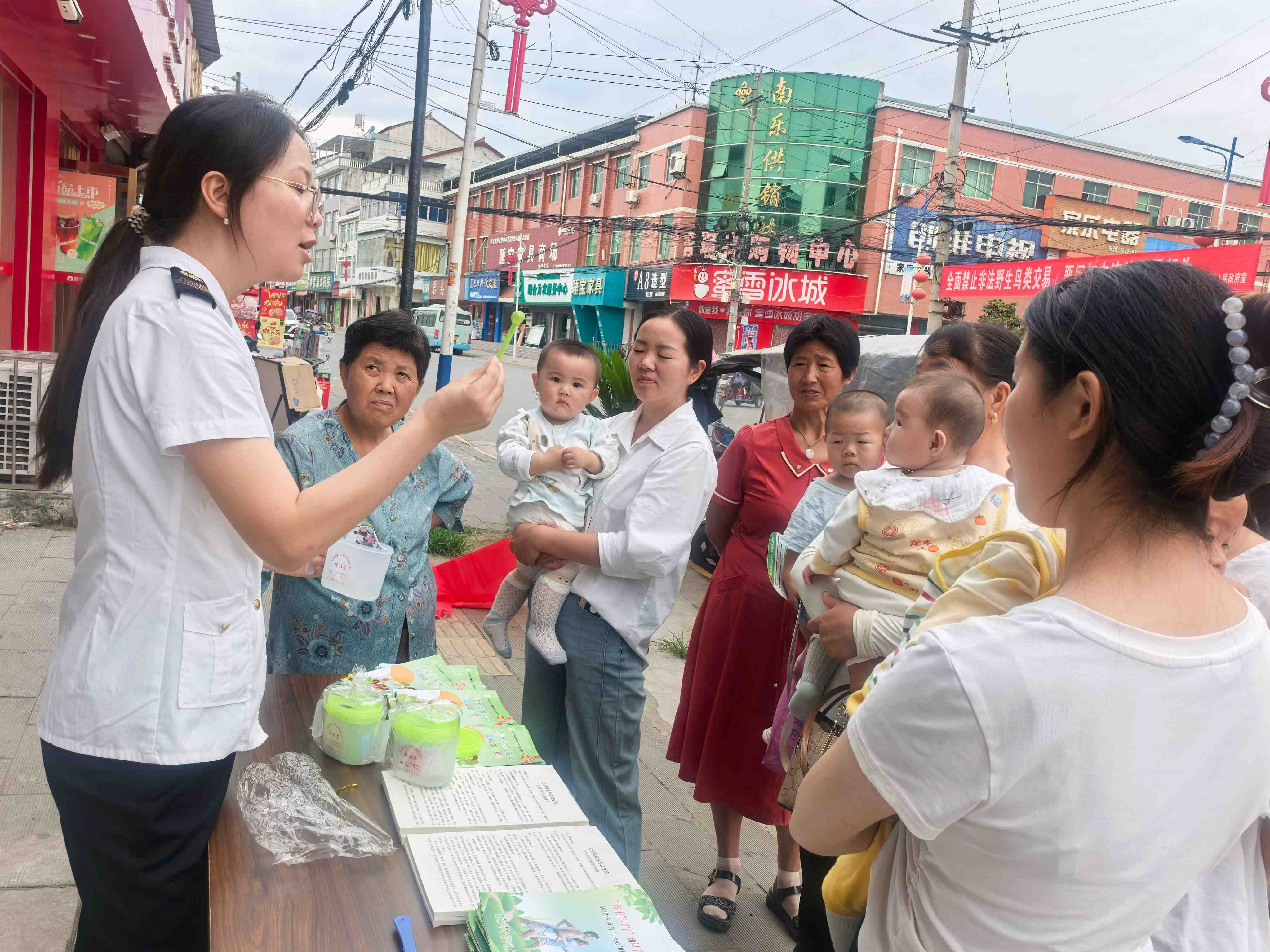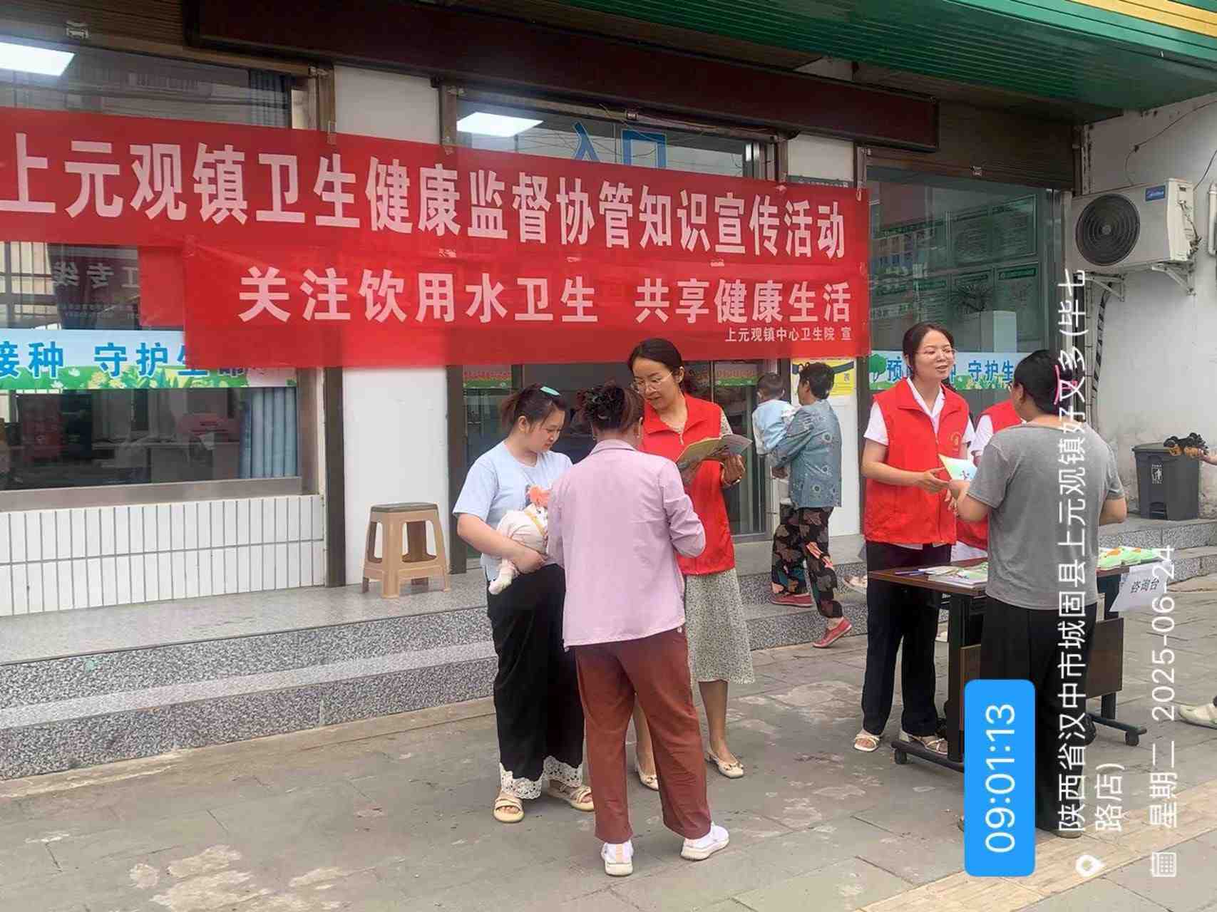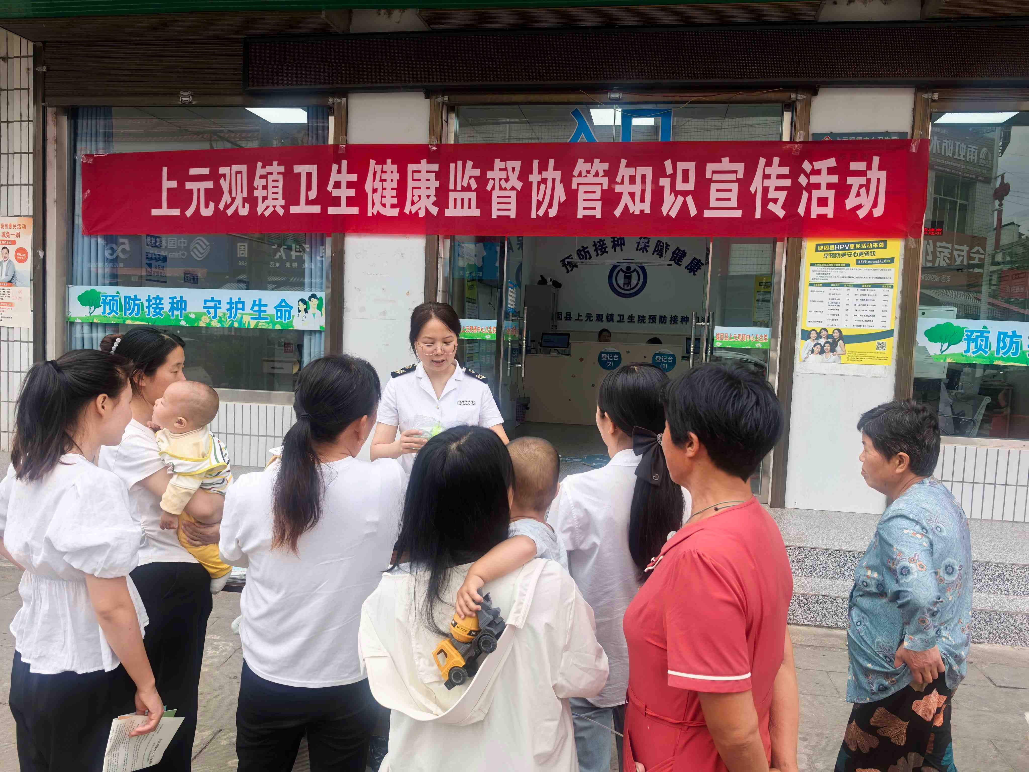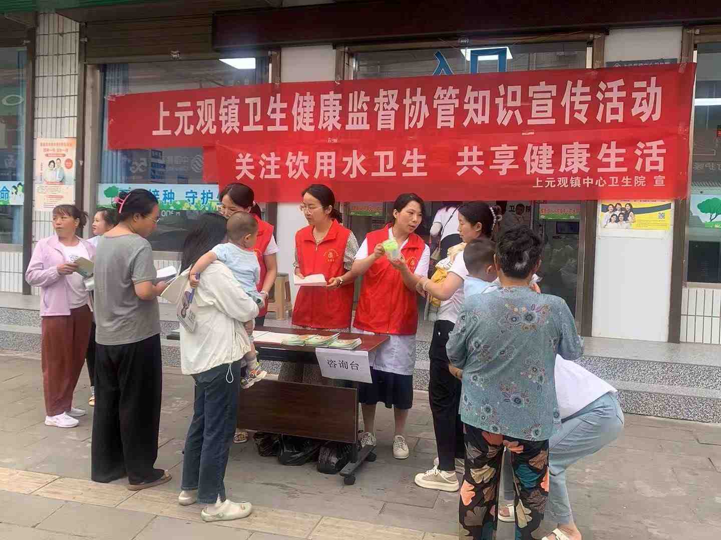 上元观镇中心卫生院志愿服务者为辖区居民宣传饮水卫生安全及非法行医行为相关知识。