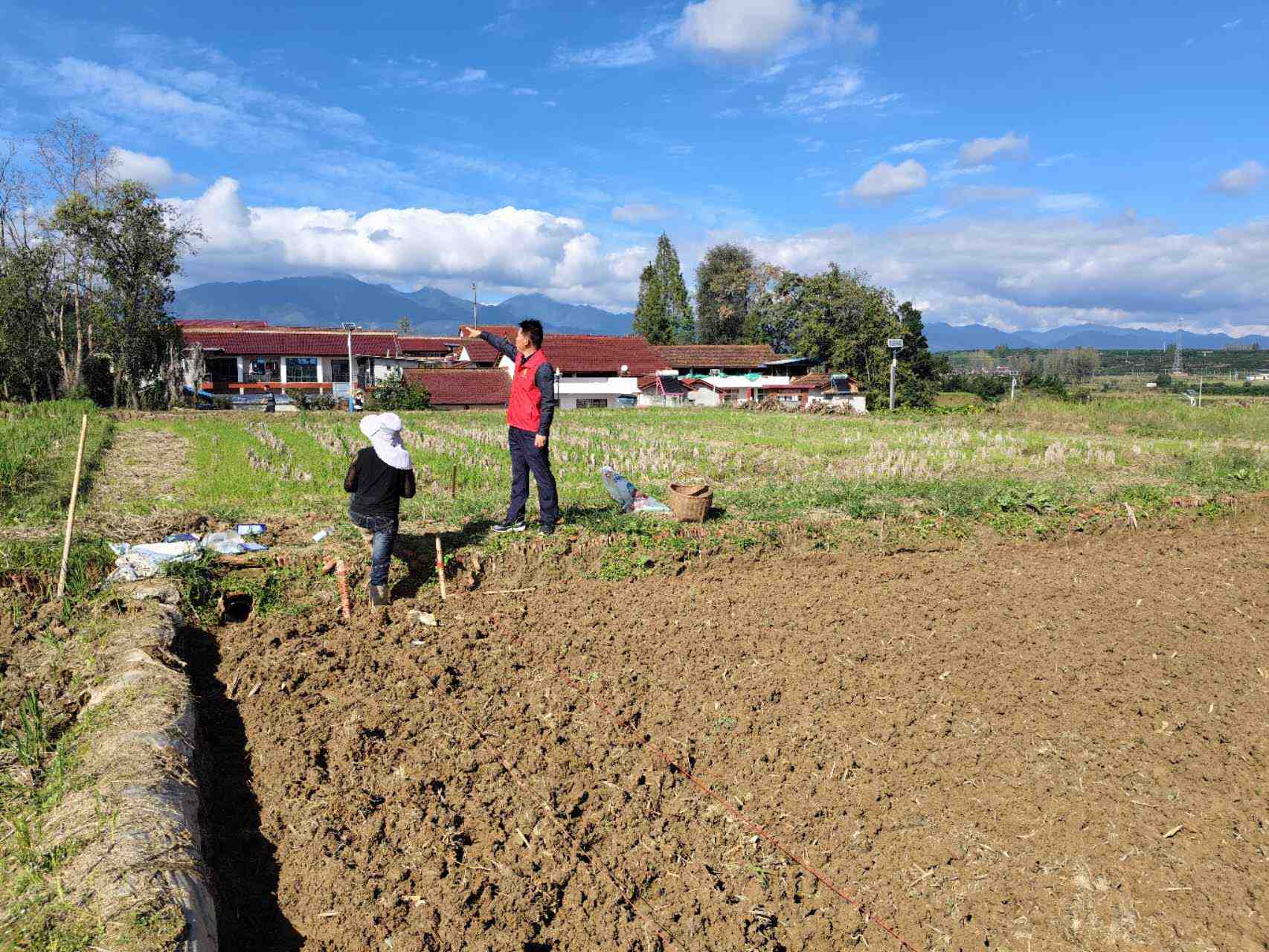 田间地头宣传抗霖秋冬播