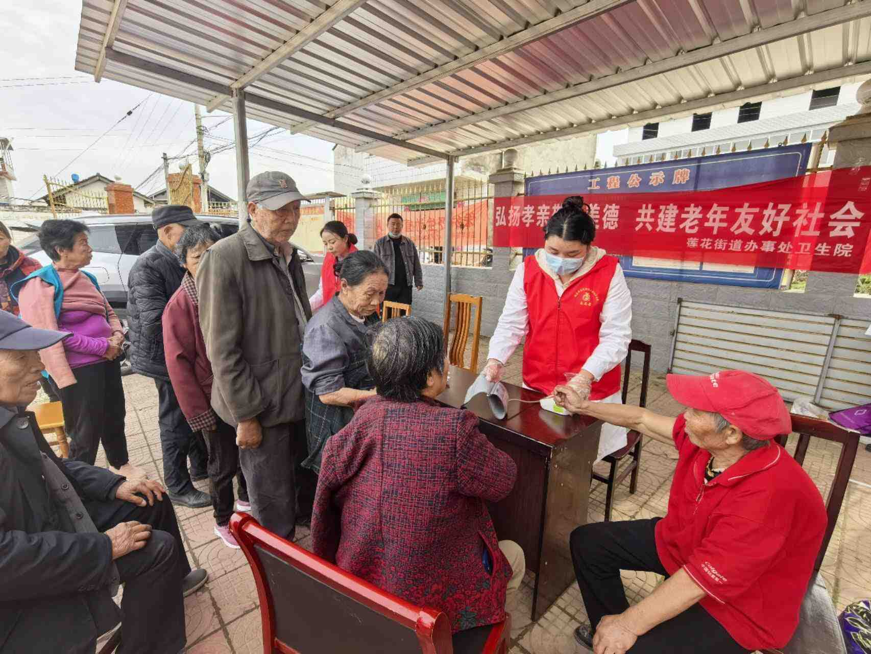 活动现场志愿者们为群众提供健康咨询、血压血糖检测以及合理膳食等宣传服务,群众受益匪浅,得到一致好评。