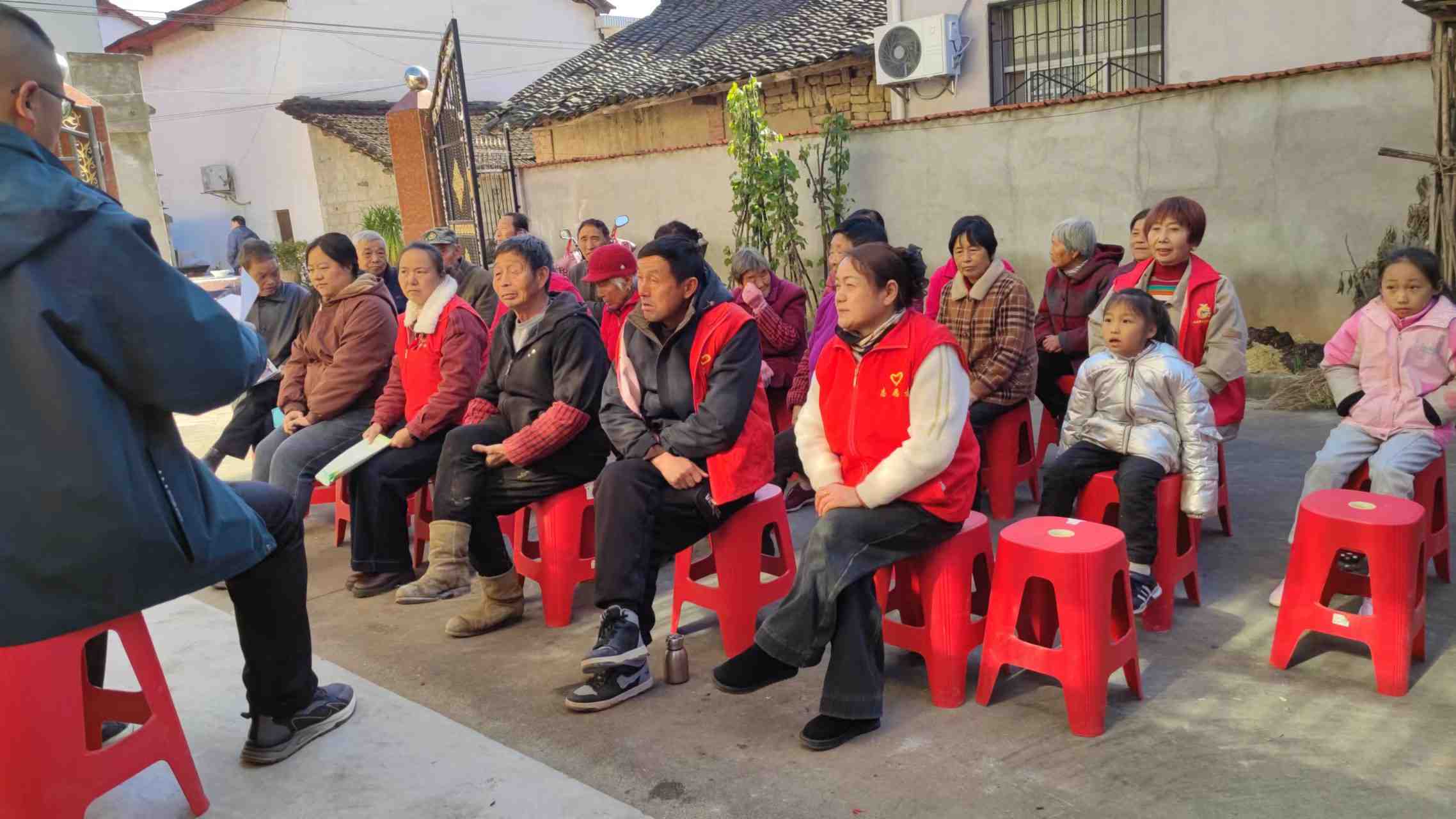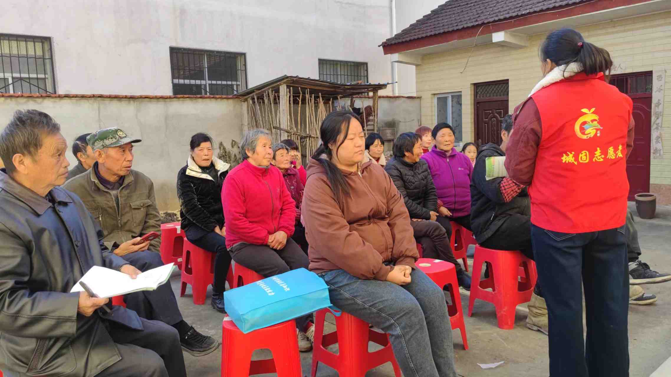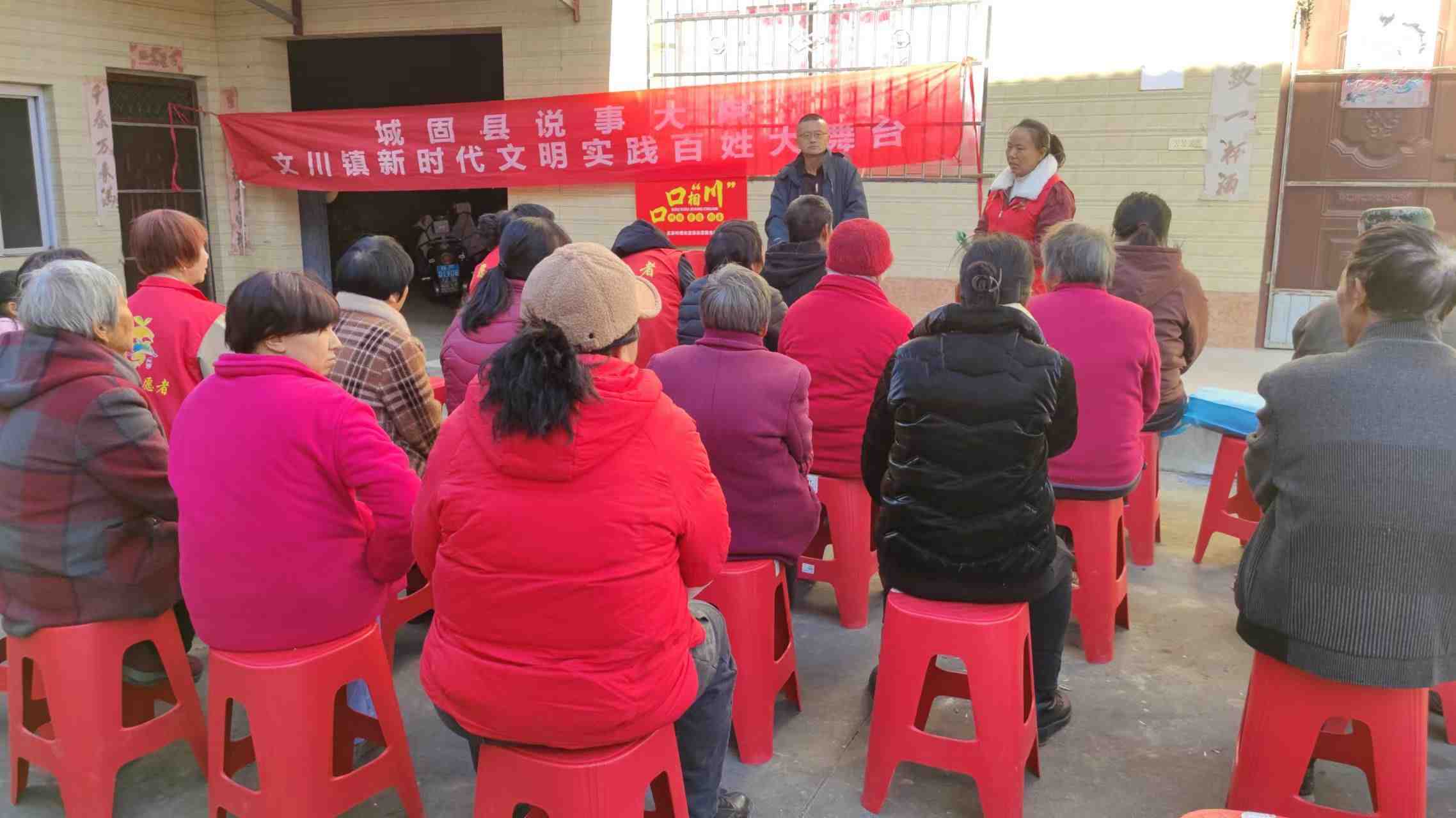 文苏村新时代文明实践站志愿者开展说事大院政策宣传活动,1,冬防安全,大气污染,2,合疗收缴等政策
