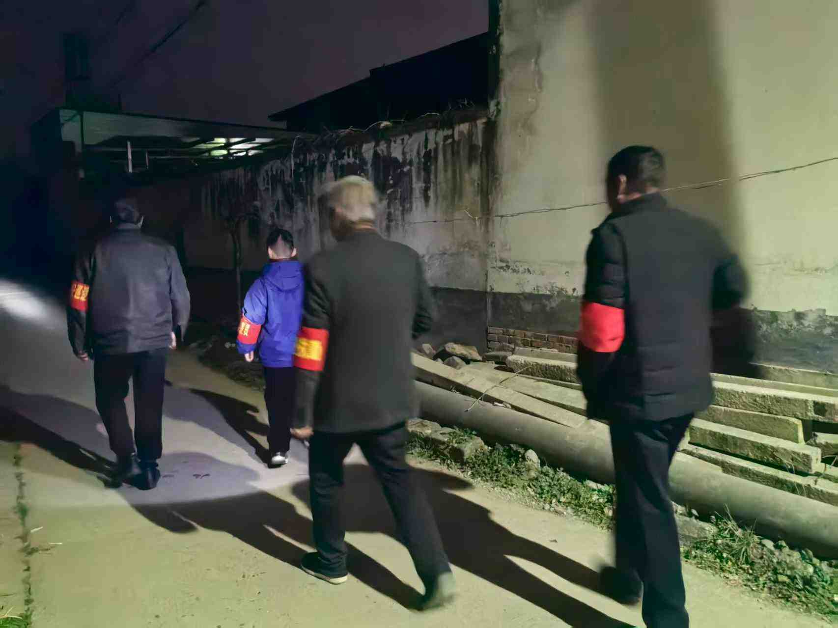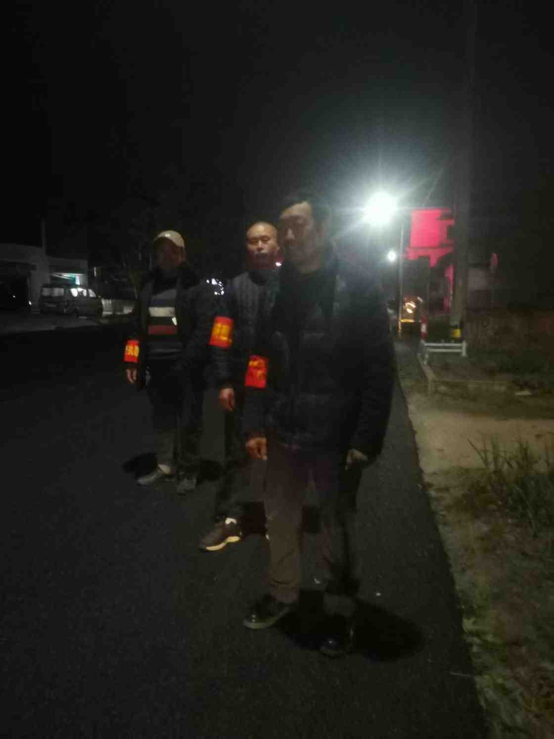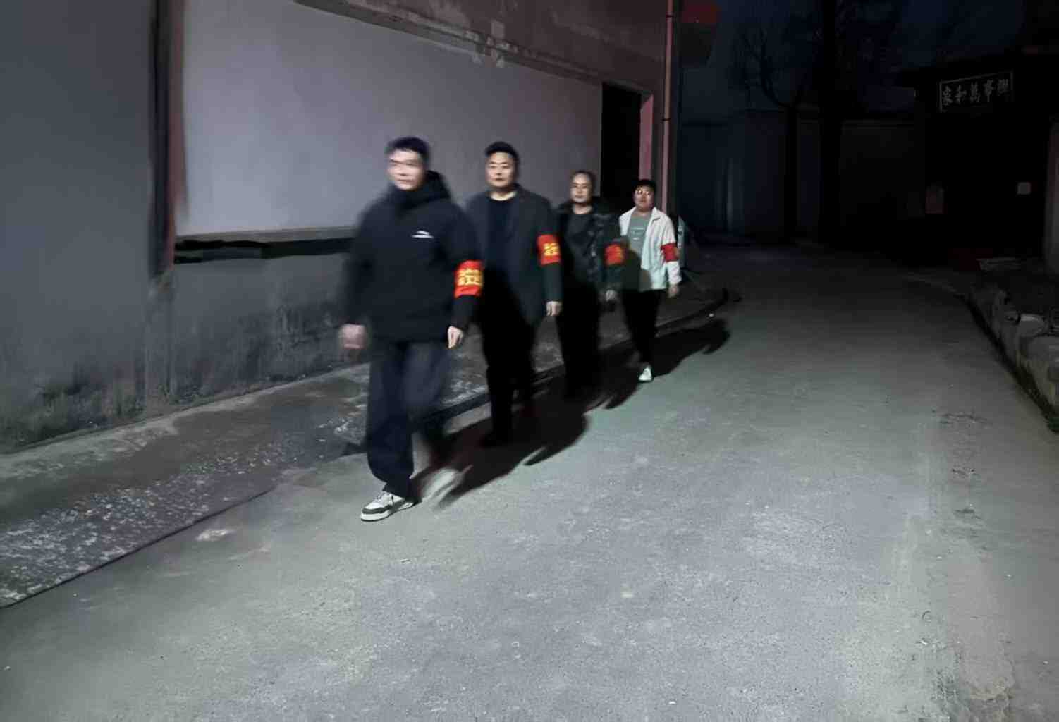 红袖章对村内进行夜间巡逻
