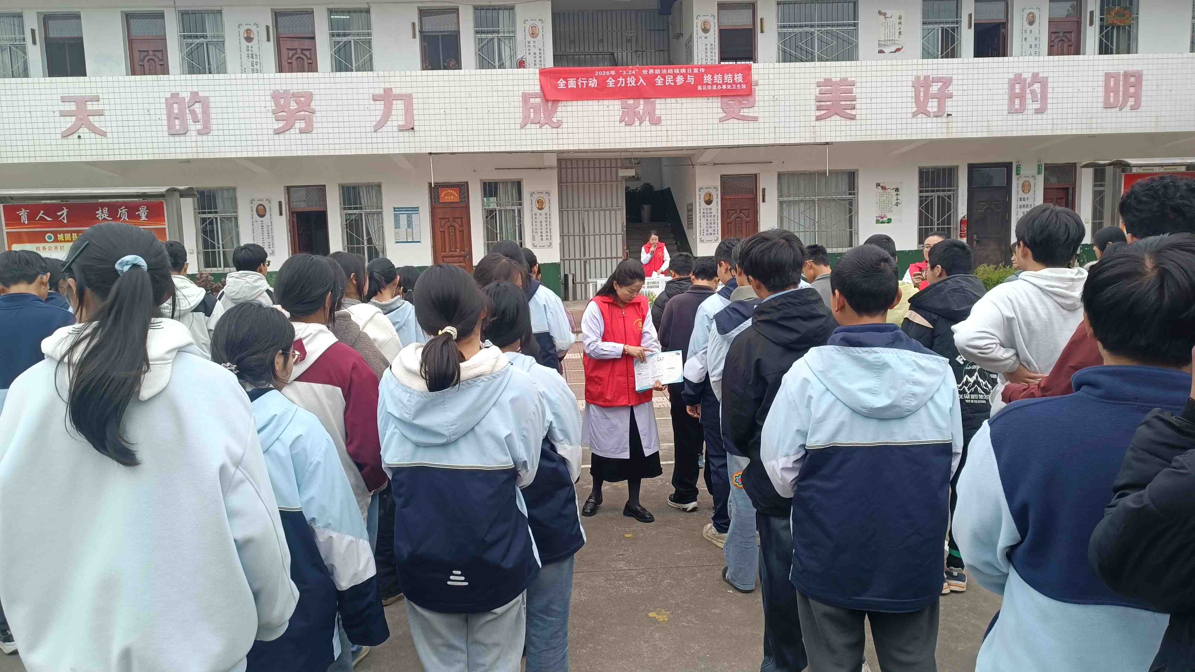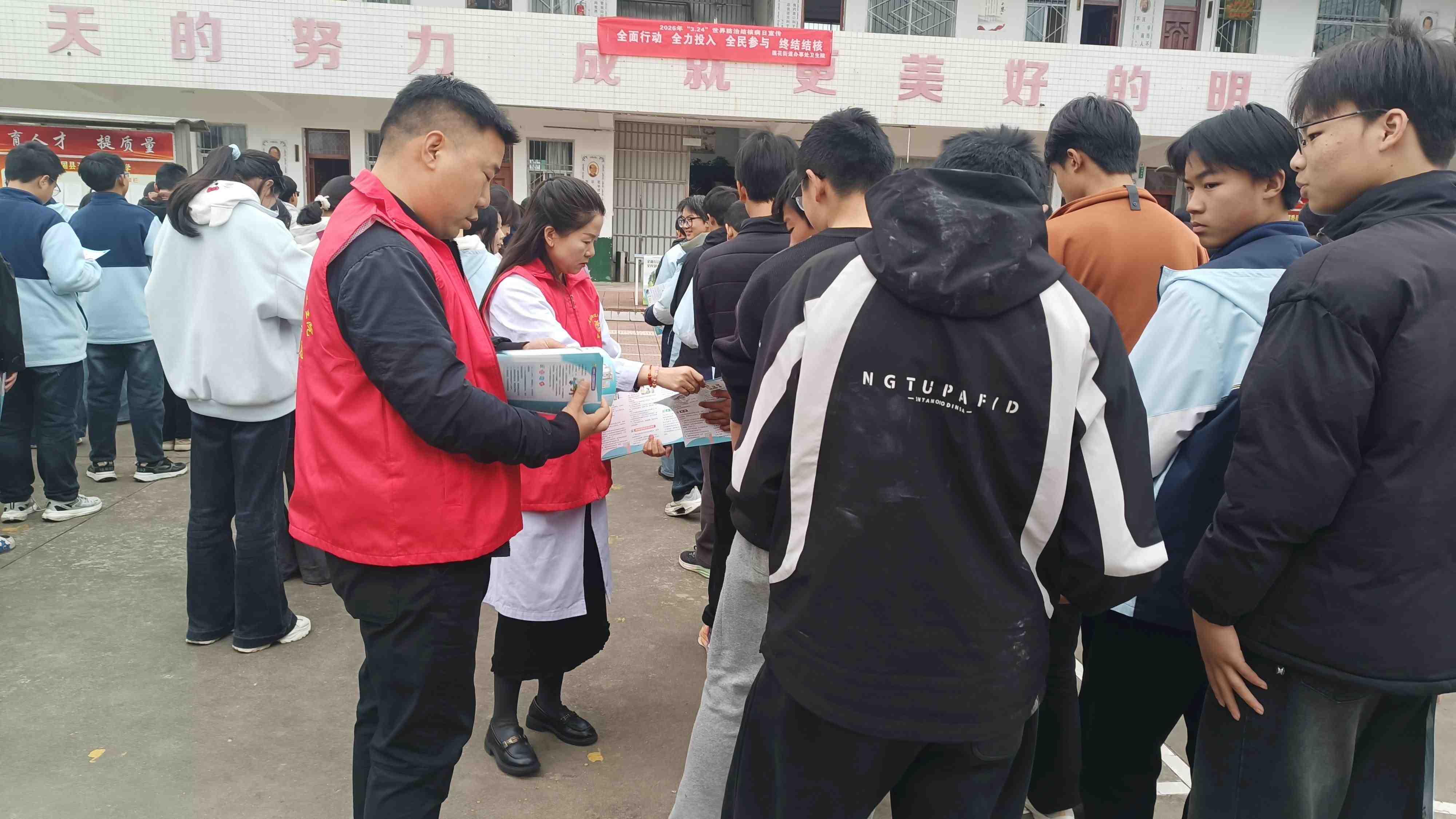 全面行动进校园,全力投入防结核,志愿者细致科普、互动答疑,守护师生健康。