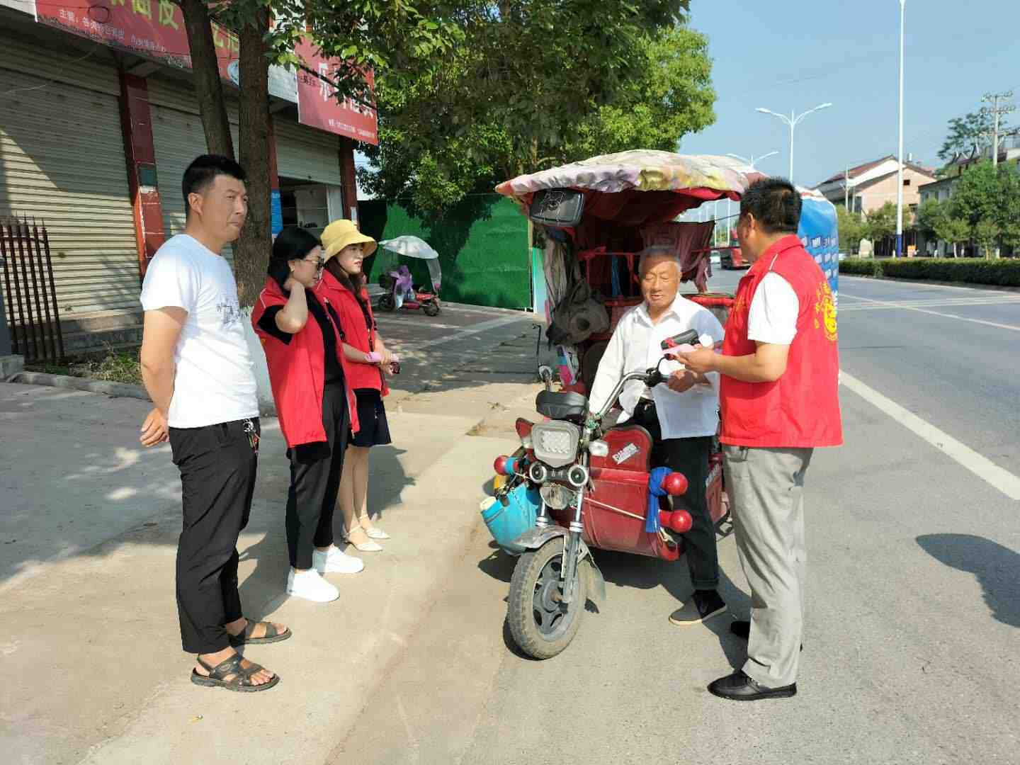 6月11日,沙河营镇组织各村(社区)志愿者开展交通安全知识宣传活动。志愿者从提高村民交通安全意识入手,通过在农用车上张贴禁止载人标志、发放交通安全宣传资料、面对面向村民宣传交通安全知识等方式,重点宣传违规载人等行为的危害及可能造成的严重后果,提醒广大村民关注自身生命安全,提升自我保护意识、交通安全意识,倡导农村驾驶人员拒绝超速、酒驾、超载、骑摩托车不戴头盔、无牌无证驾驶、农用车载人等农村道路常见的交通违法行为,养成良好交通出行习惯。