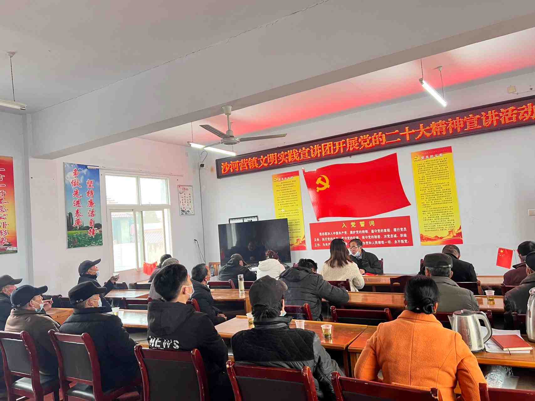 为了全面学习贯彻党的二十大精神,沙河营镇组建新时代文明志愿宣讲团,迅速掀起学习宣传贯彻热潮。12月8日至12月15日,沙河营镇文明实践宣讲团在各村陆续召开了7场宣讲会,宣讲员从党的二十大会议的历史背景、成就、时代意义、指引作用等方面深入浅出地讲解了二十大精神。重点阐述了党的二十大报告中关于“全面推进乡村振兴”“建设宜居宜业和美丽乡村”等重要论述,结合自身感受和镇村实际,用通俗易懂的语言,把“书面语”话为“家常话”,让党的二十大精神以“接地气”的方式“飞入寻常百姓家”。