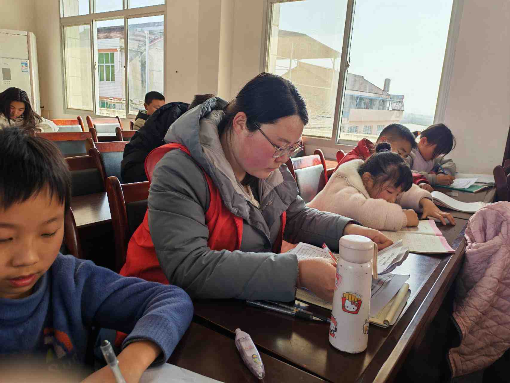 为切实破解社区内小学生寒假作业无人辅导,家长看管不便等难题,让社区孩子们度过一个充实有序,饱含温度的假期,我社区聘请有资质的专业老师及社区内大学生志愿者为孩子们进行辅导,孩子们很受益,家长们也很感恩。