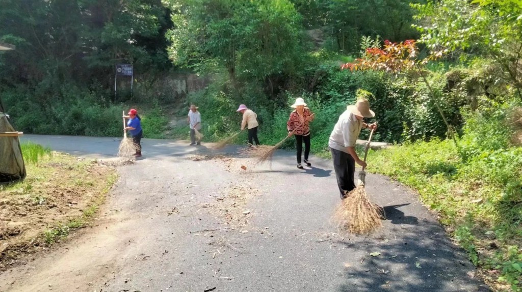 虽已立秋,晴热依旧。环境整治小组的志愿者头顶烈日、挥汗如雨,认真清理道路上的落叶及雨天冲刷的淤泥和碎石,还村组道路一片洁净。