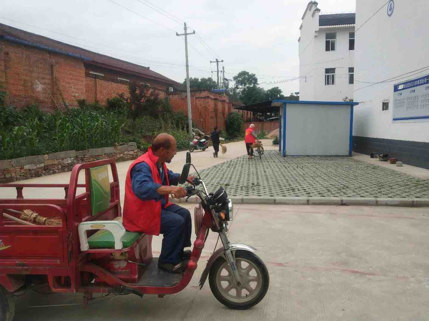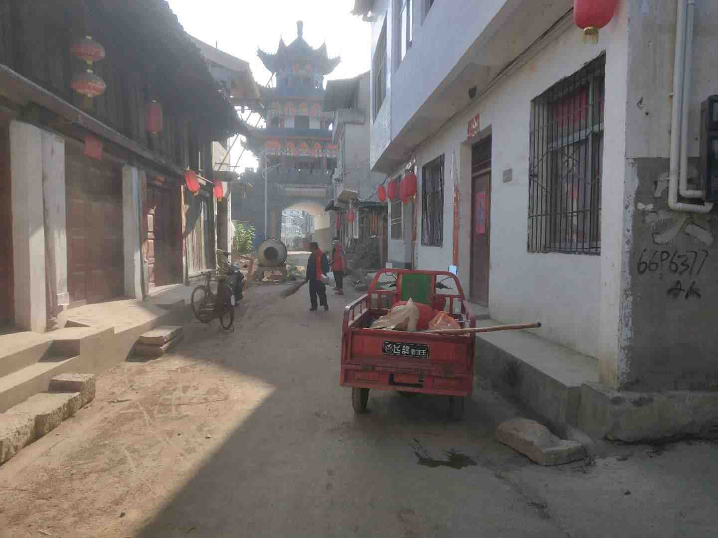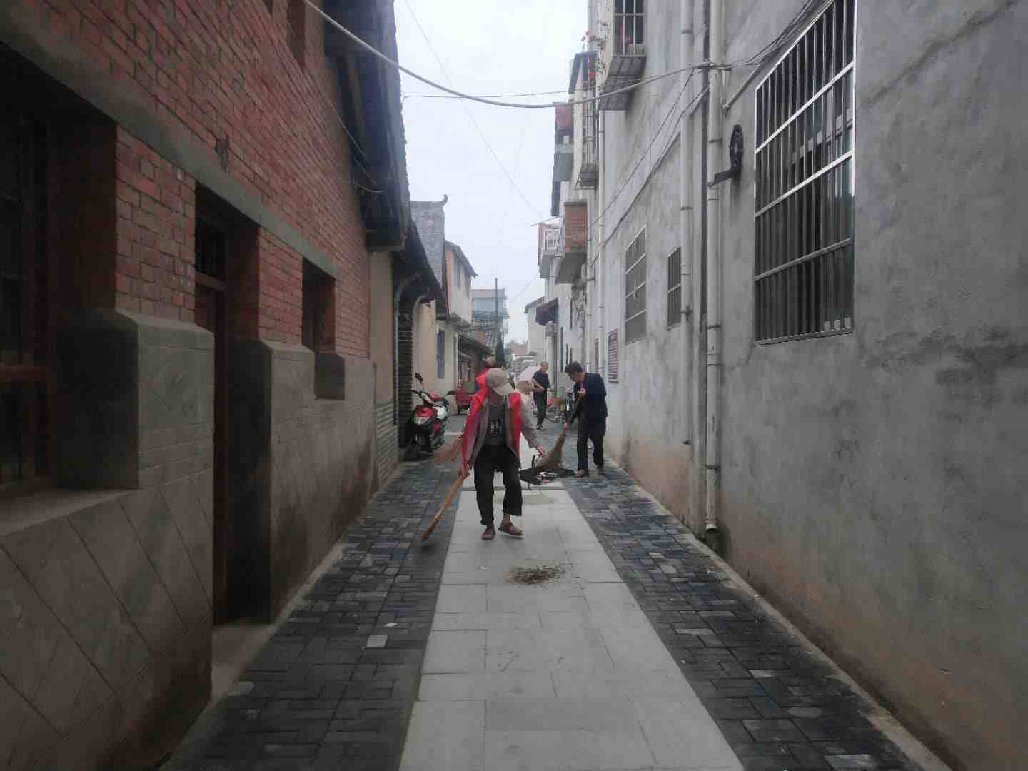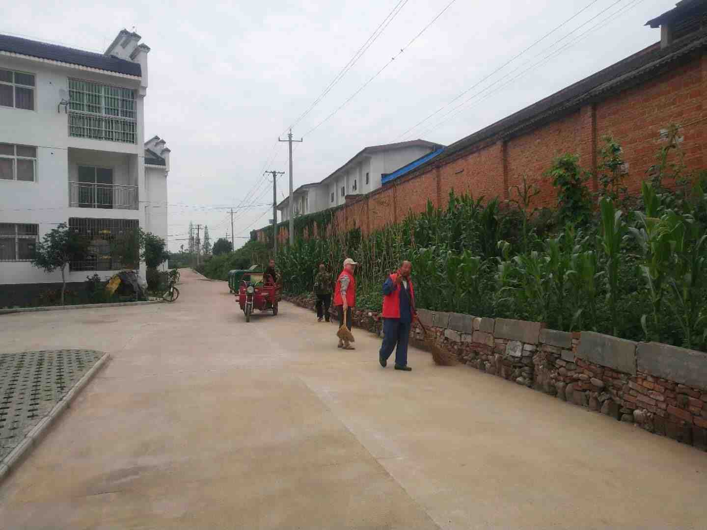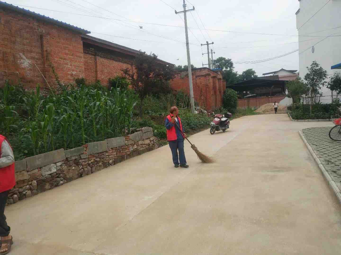 志愿者对乐丰村环境卫生进行打扫