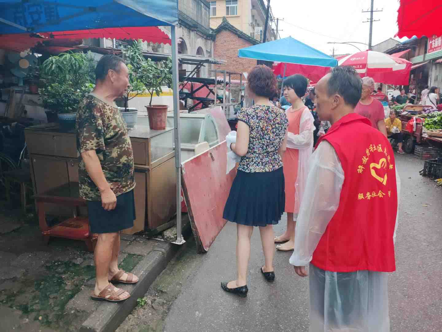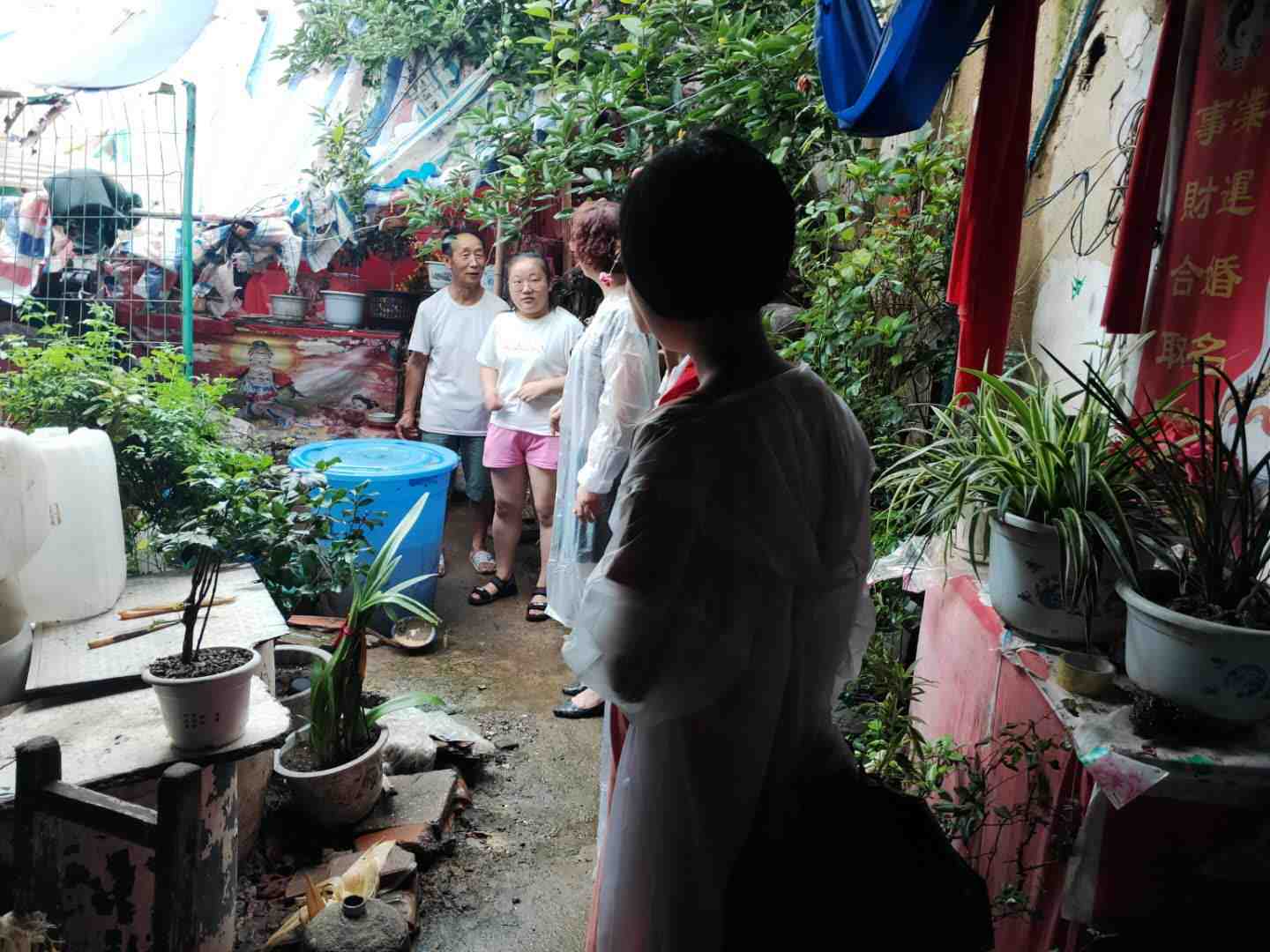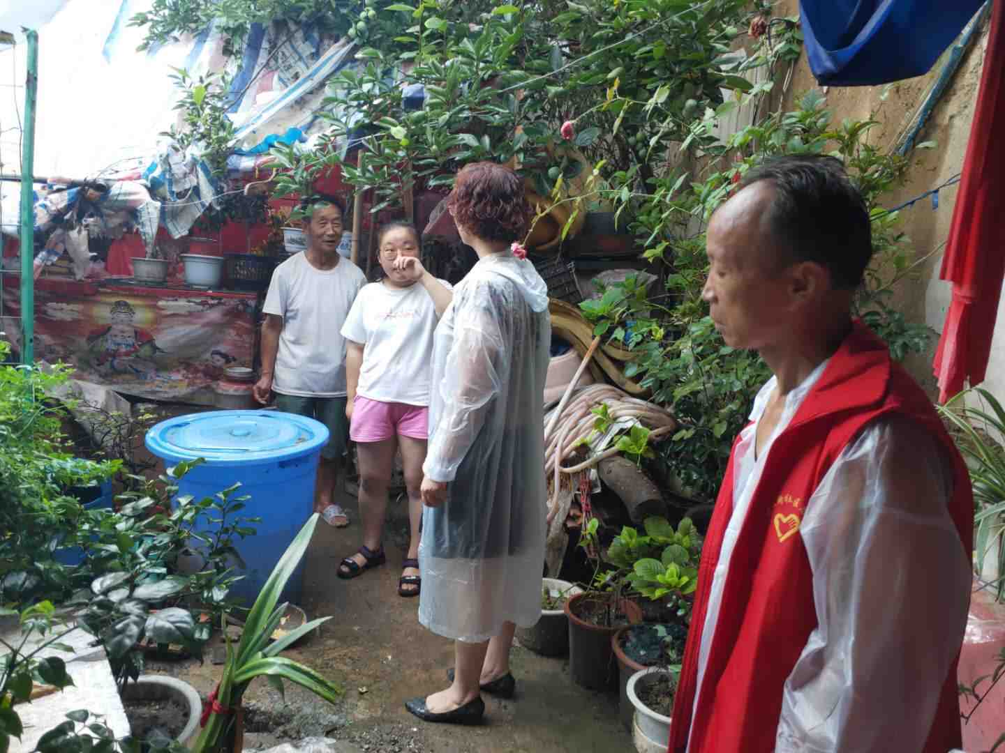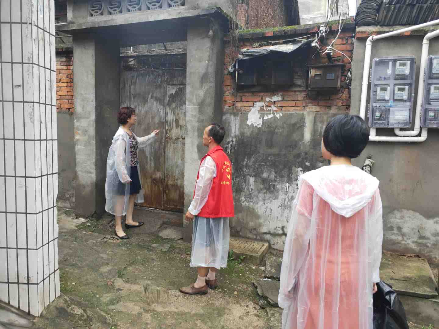 雨后志愿者全面巡查辖区旧屋、危房、危墙、建筑等重点区域,同时加强宣传,提醒居民群众做好强降雨防御工作