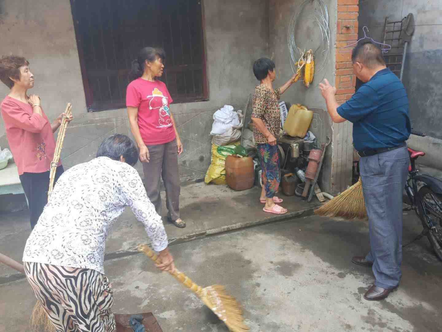 雨后天晴,社区党支部书记及帮扶干部一起入户走访,给贫困户送去慰问品并为他们打扫卫生,帮助解决实际困难