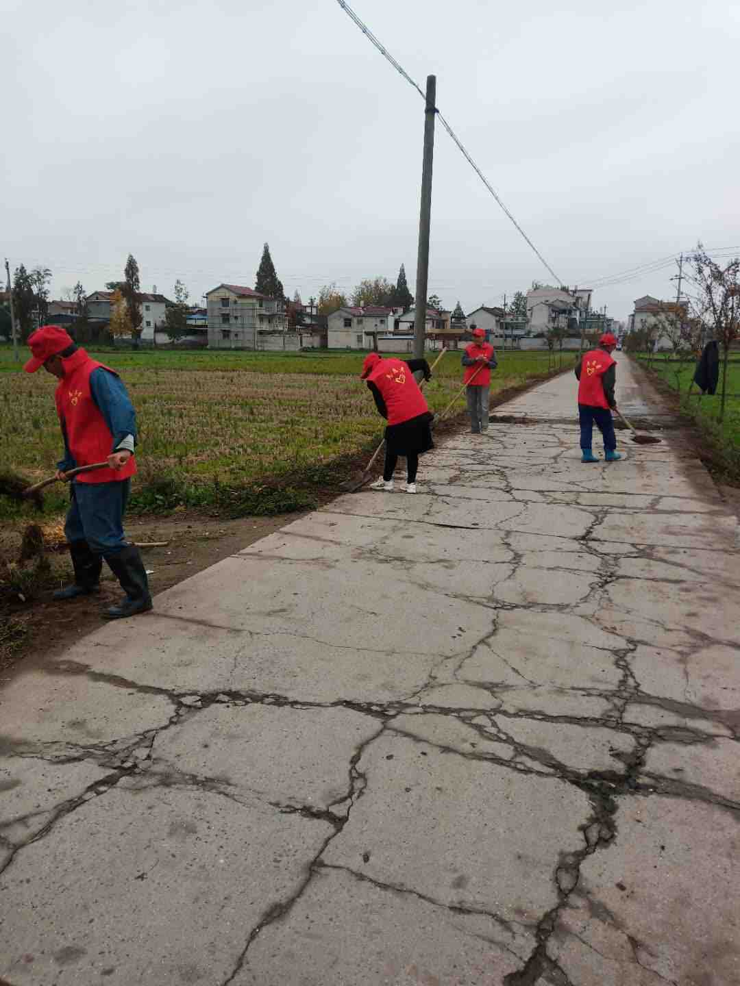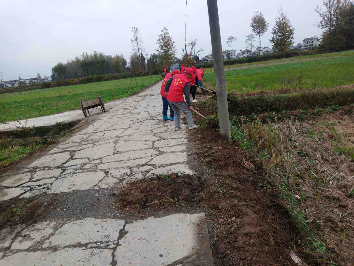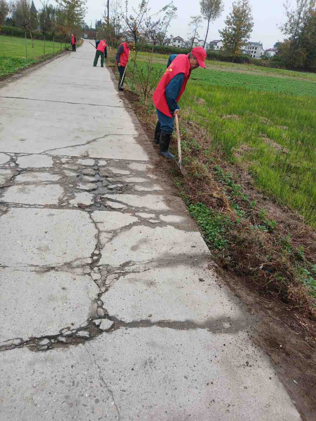 志愿服务者们,为村庄道路两边清除杂草,劳动激情高涨。