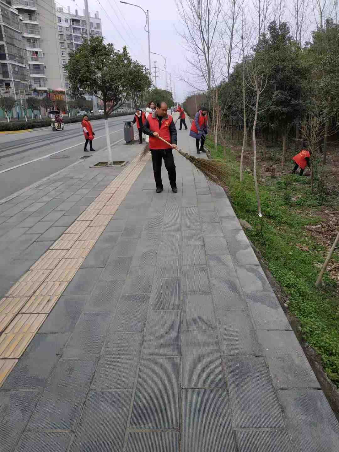 廉家庄村组织青年志愿者,打扫东三环环境卫生很彻底。