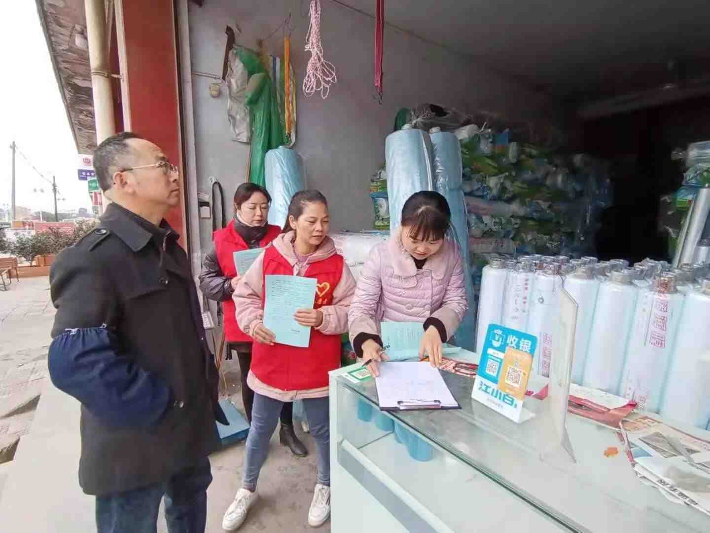 志愿者告知村民看指挥灯信号、人行横道信号灯、行人务必遵守的规定,哪些状况最危险