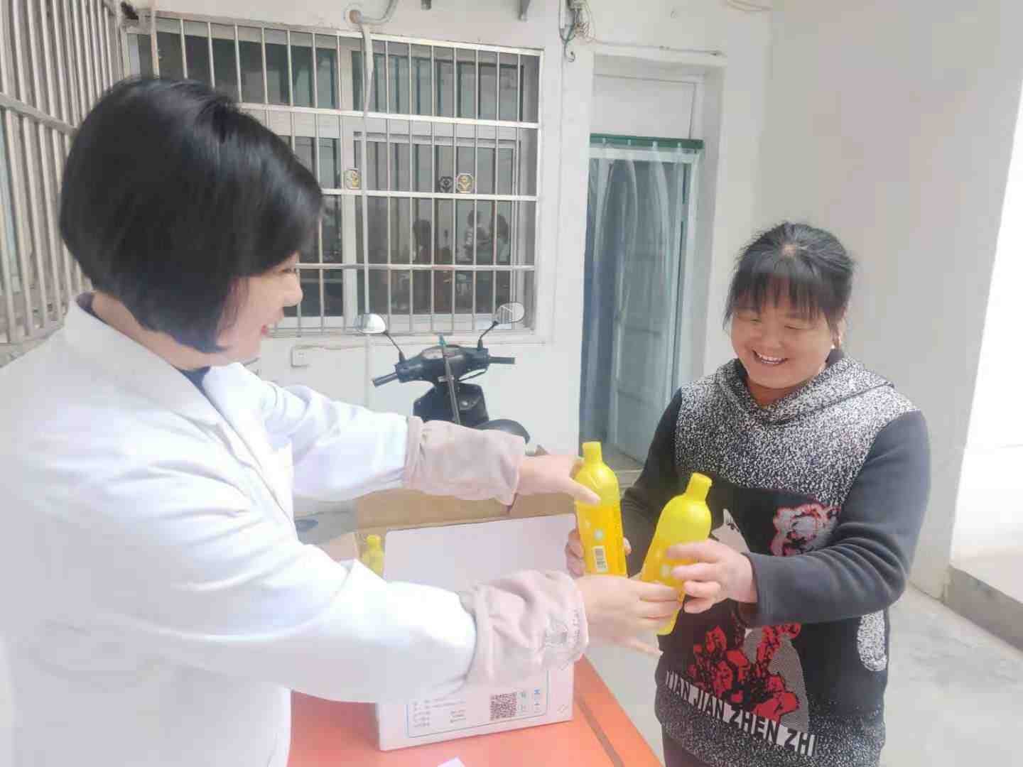 志愿者们为儿童发放了消毒液等物品,给村民讲解如何做好儿童的卫生防护,让留守儿童感受到村集体的温暖。