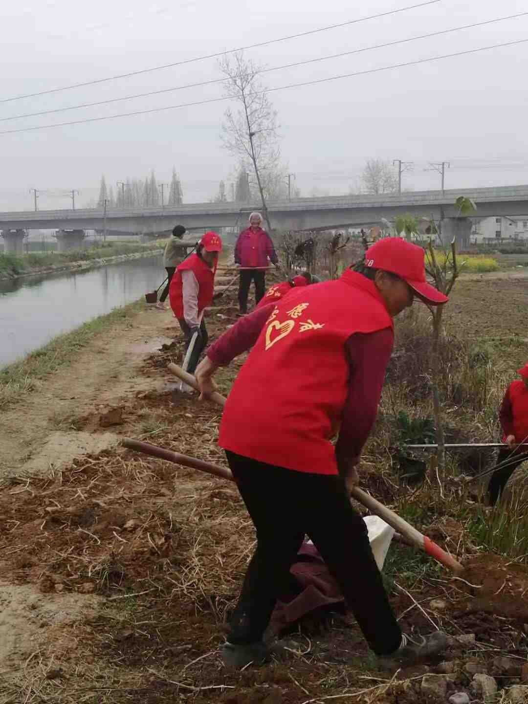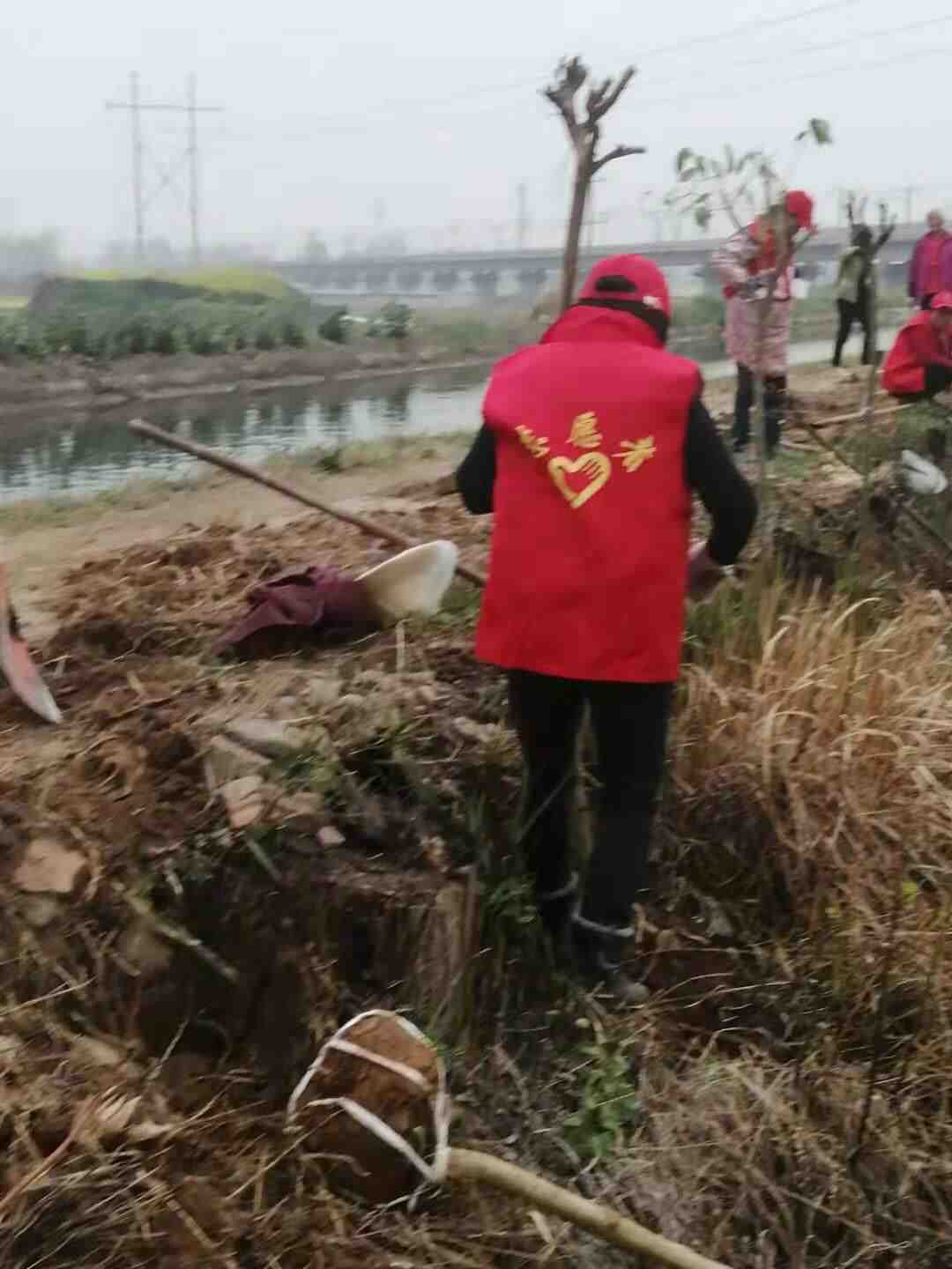 军王村新时代文明实践站组织志愿者对村后渠边护栏栽树