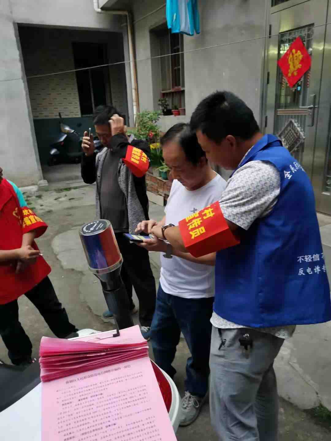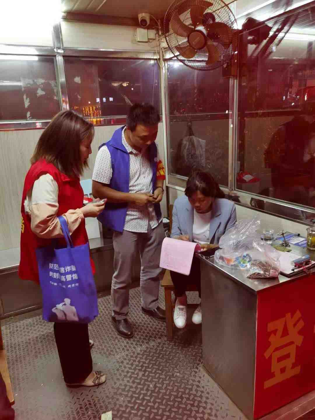 志愿者晚上加班为村民宣传反诈骗,帮村民下载国家反诈中心APP。