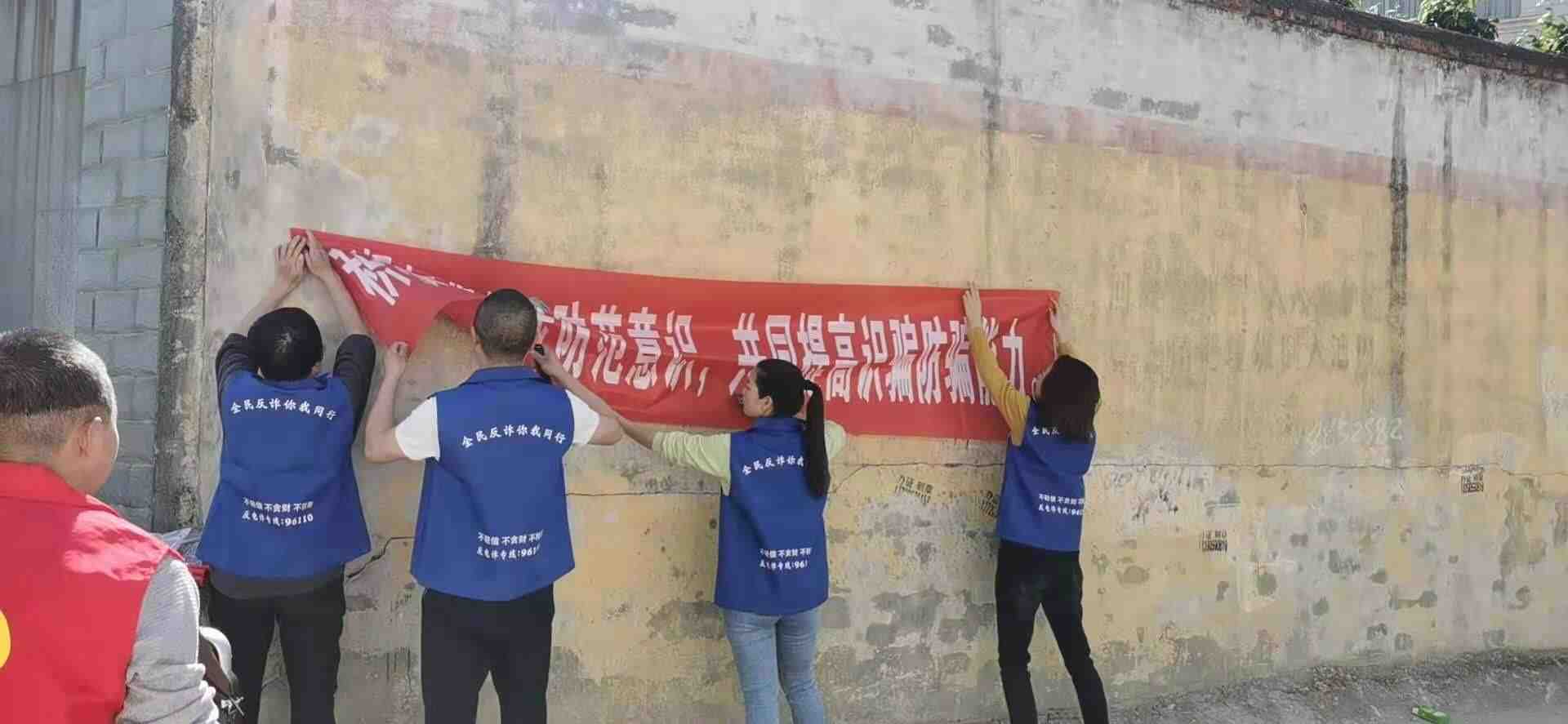 为有效防范新型电信网络诈骗,进一步提高人民群众辨别和防范能力,志愿者走访、入户、张贴宣传布告、横幅等