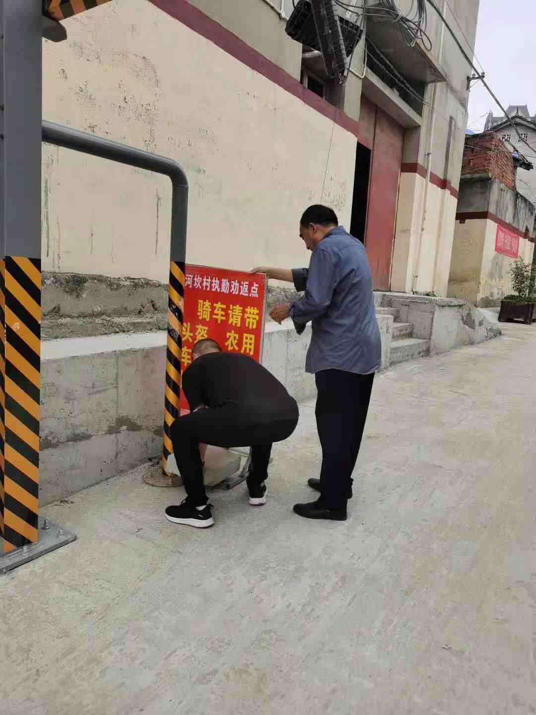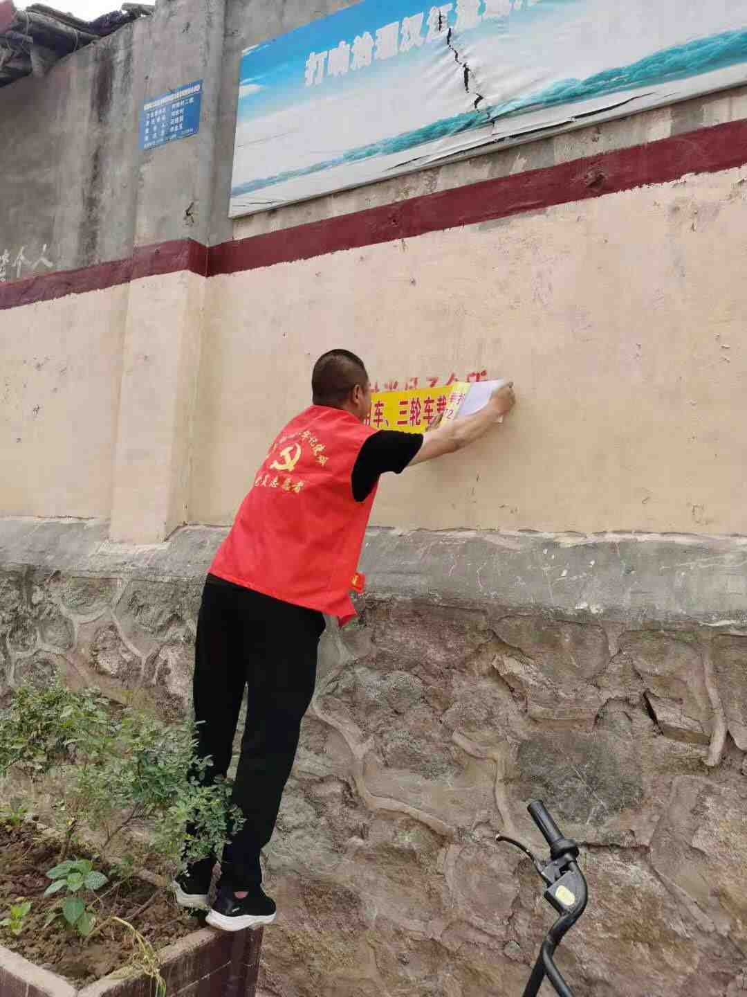 志愿者对村内路口安装警示牌、张贴警示标语,对村民进行说服劝导,让每位村民做到文明出行,安全行驶。