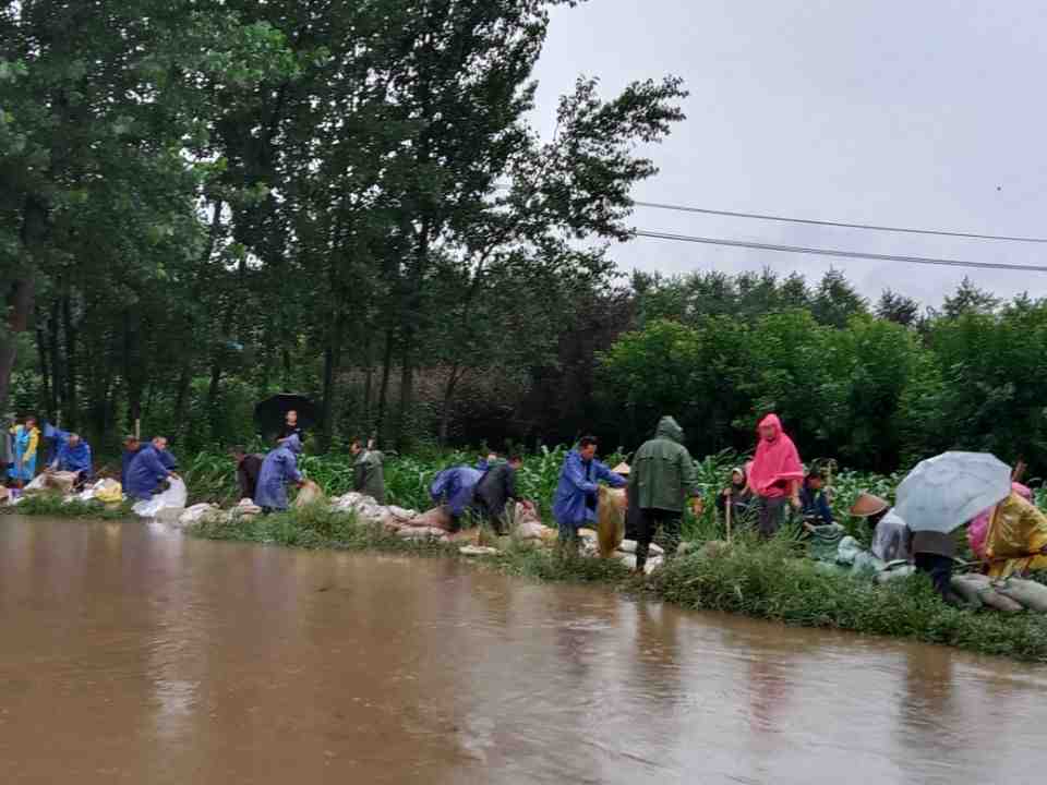村组志愿者自发组织防汛抢险工作,齐心协力,一同抵御汛期。