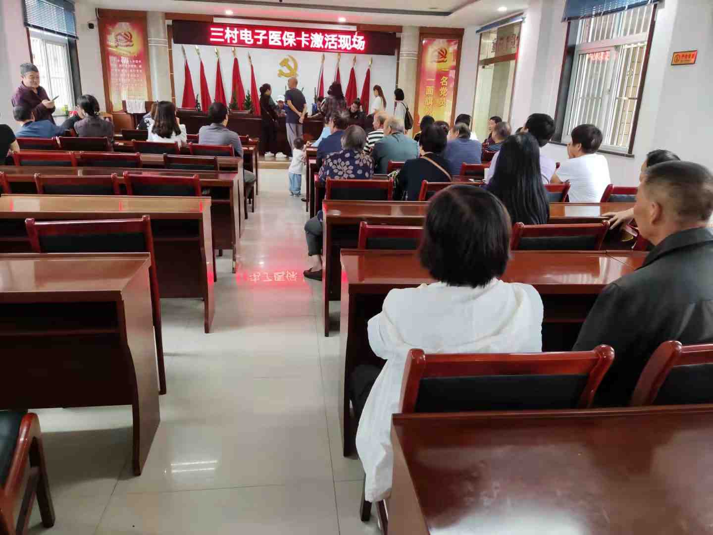 志愿者协助工作人员,完成电子医保激活。