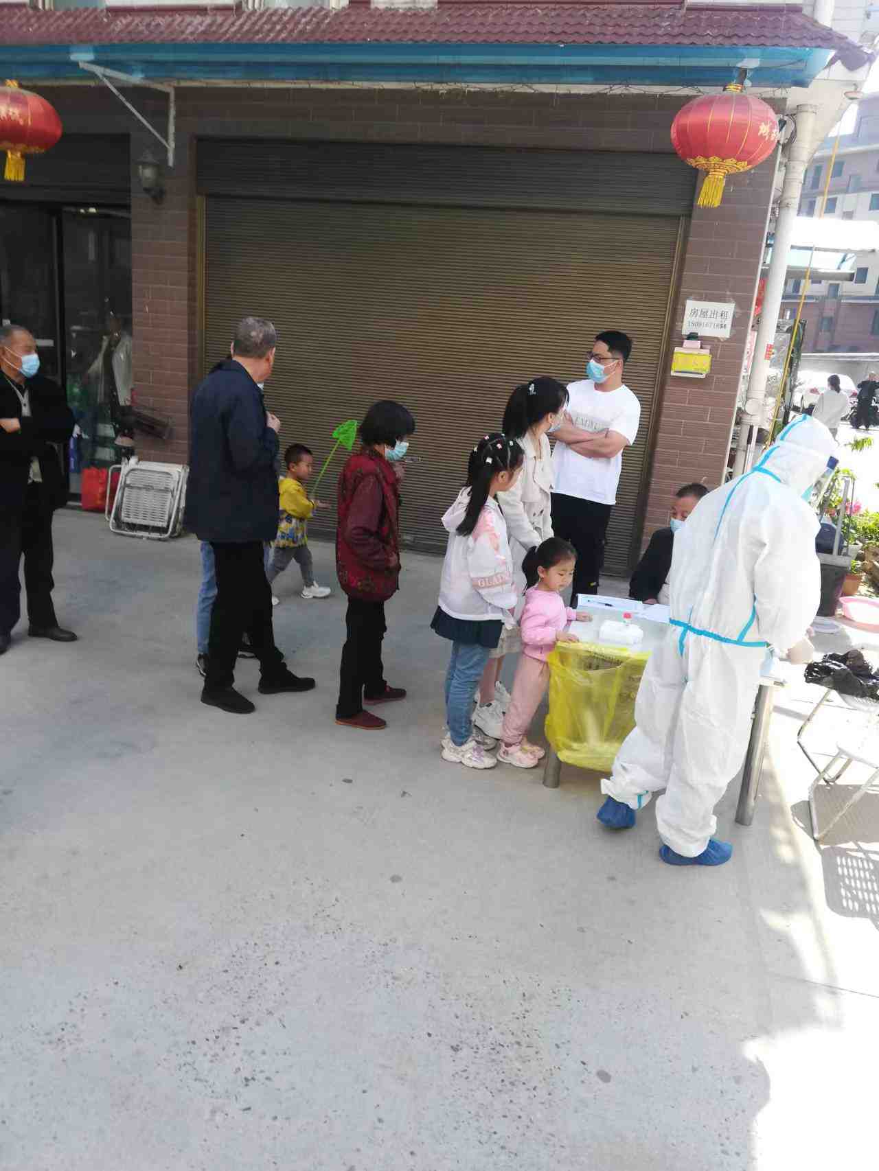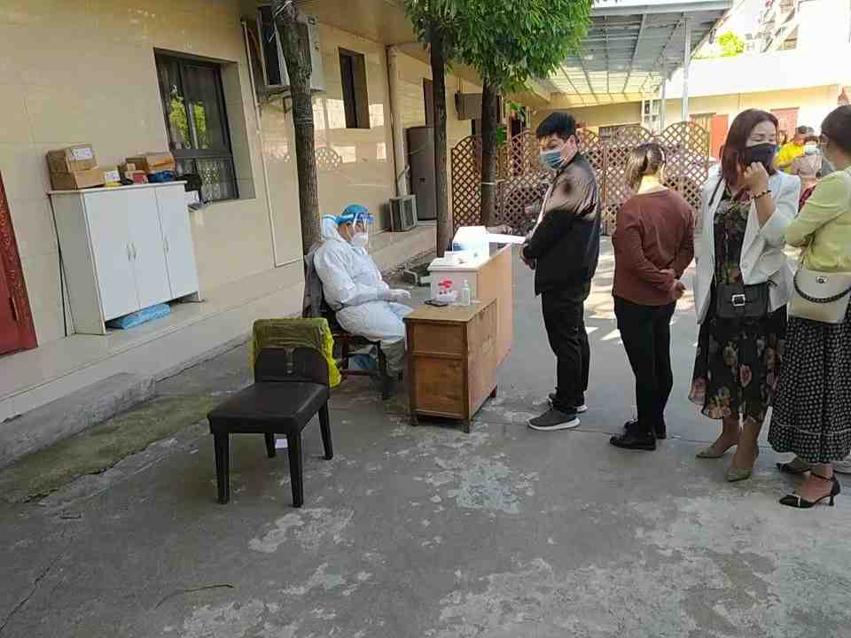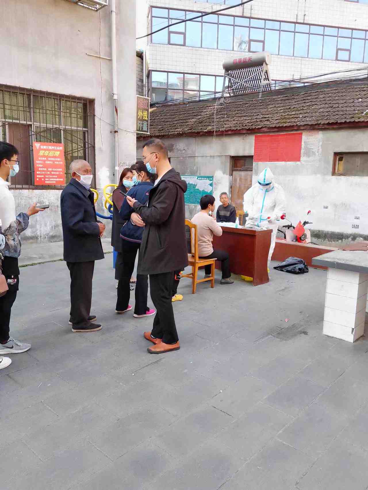 三村志愿者协助医护人员为辖区内的居民进行核酸检测