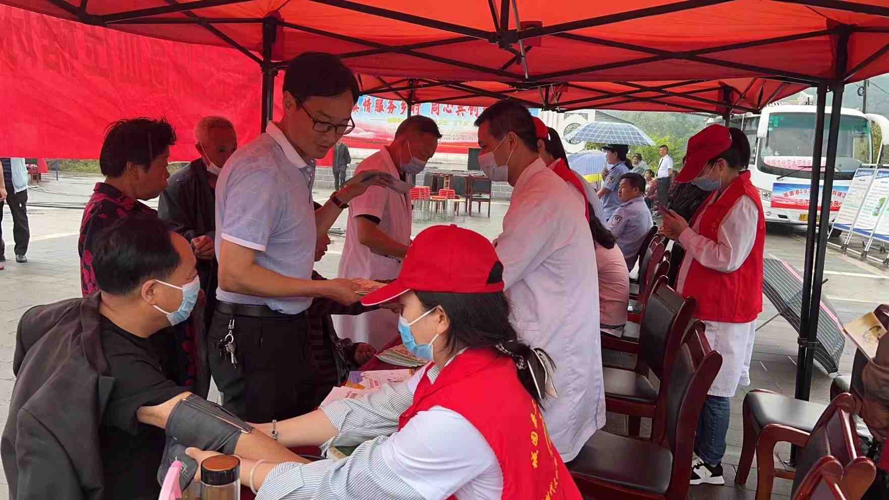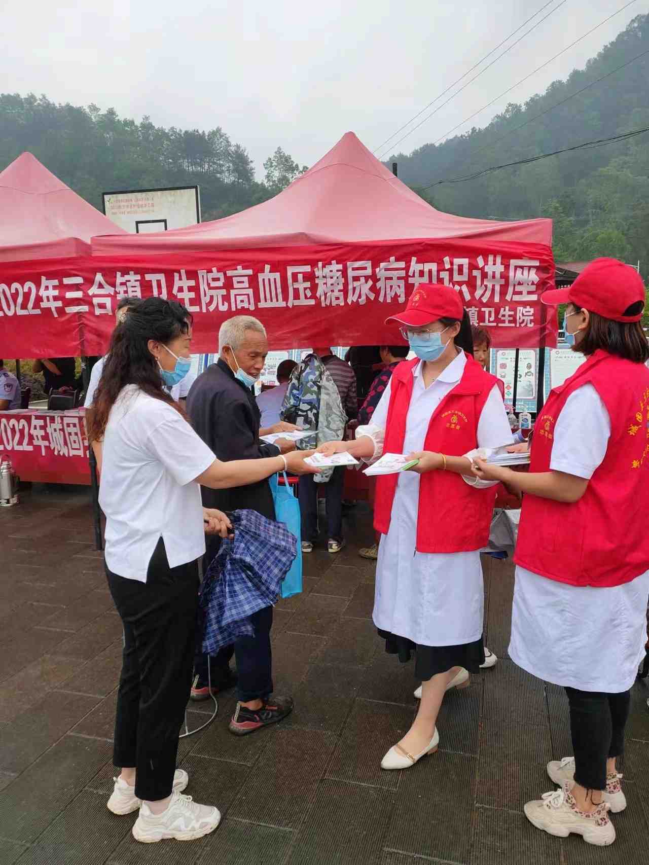 5.25日三合镇卫生院组织志愿者为辖区群众开展健康义诊,健康宣教活动。