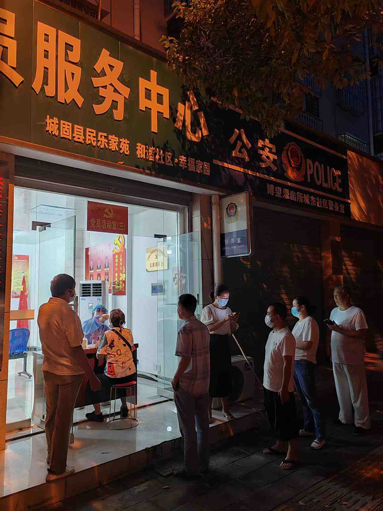 天还没亮,志愿服务队准时到达城东社区协助开展核酸采样工作。扫码、维持秩序、帮助行动不便的老年人做核酸