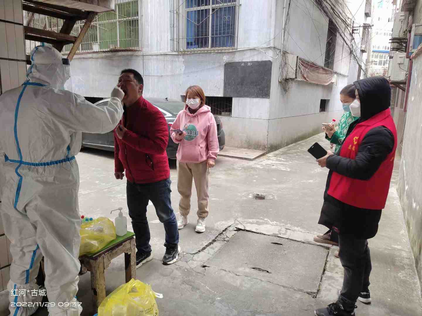 11月22日凌晨,县财政局志愿服务队组织党员干部志愿者150余人,协助汉江路社区做好疫情防控各项工作