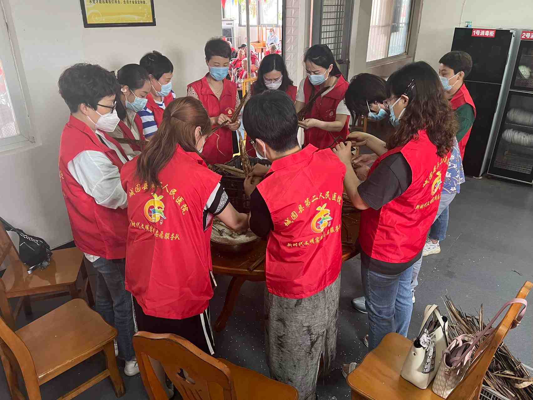 城固县第二人民医院走进栗子园老年公寓开展“迎端午、包粽子、包饺子、敬老人”活动。