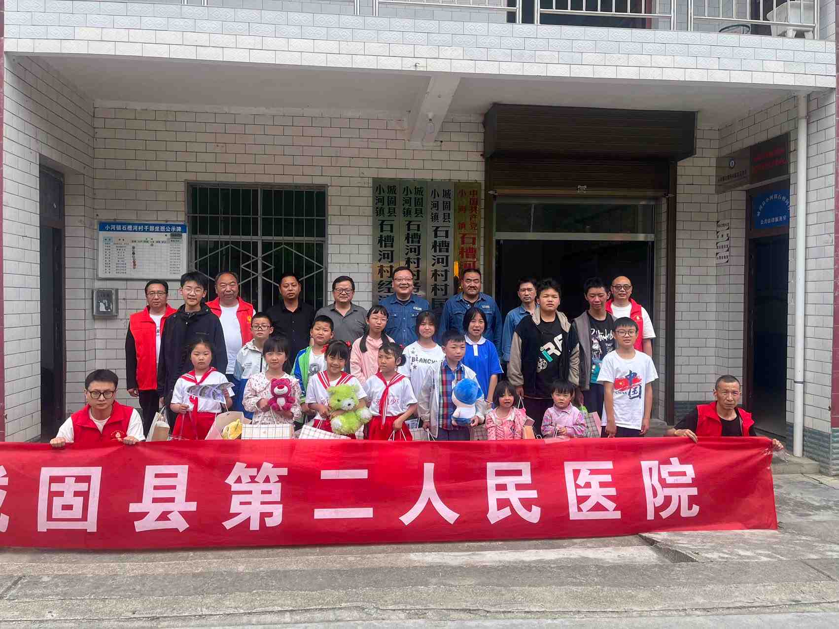 “六一”来临之际,城固县第二人民医院到石槽河为孩子们送去书本、文具等慰问品。