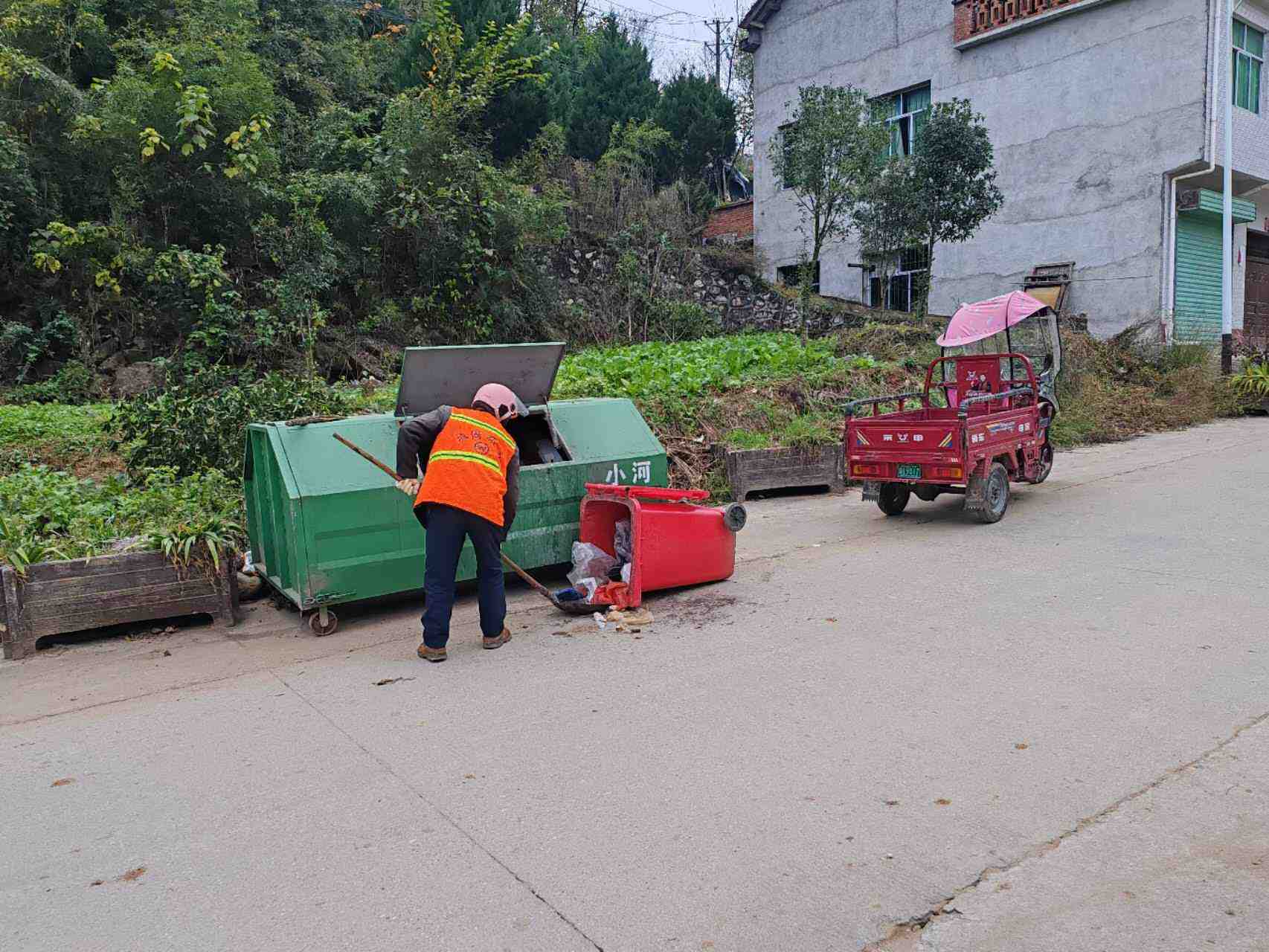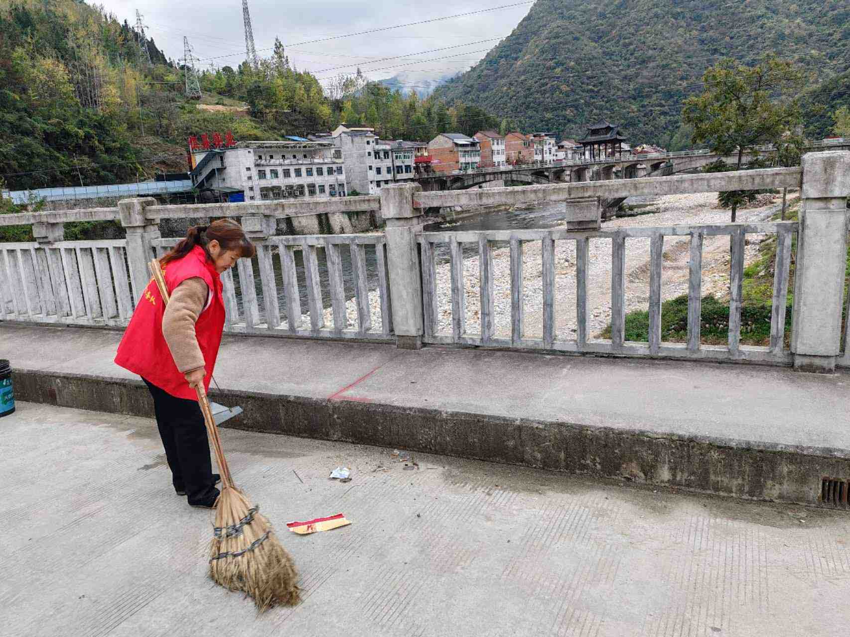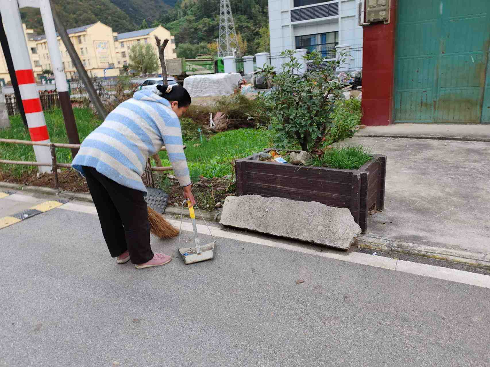 长坝湾村志愿者清扫村内道路,让道路变的干净,整洁
