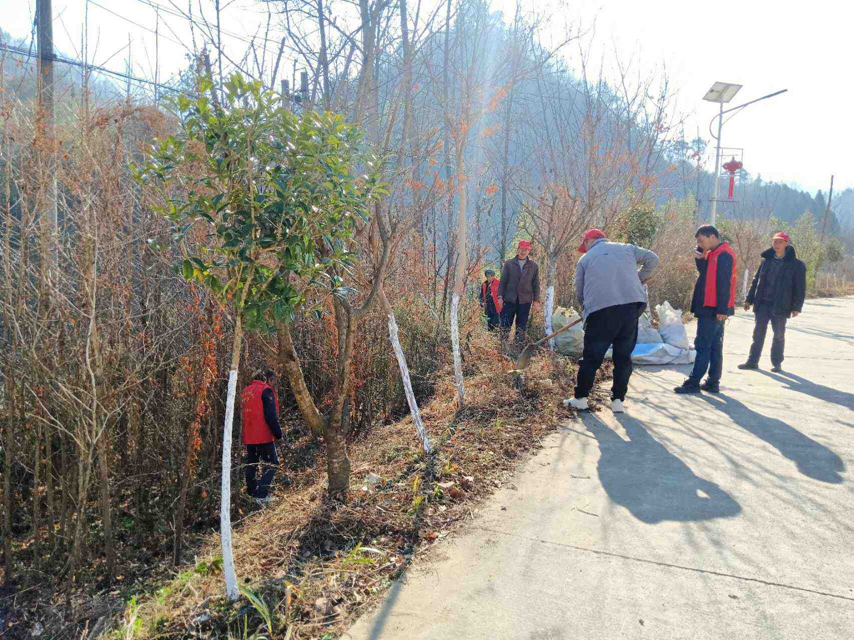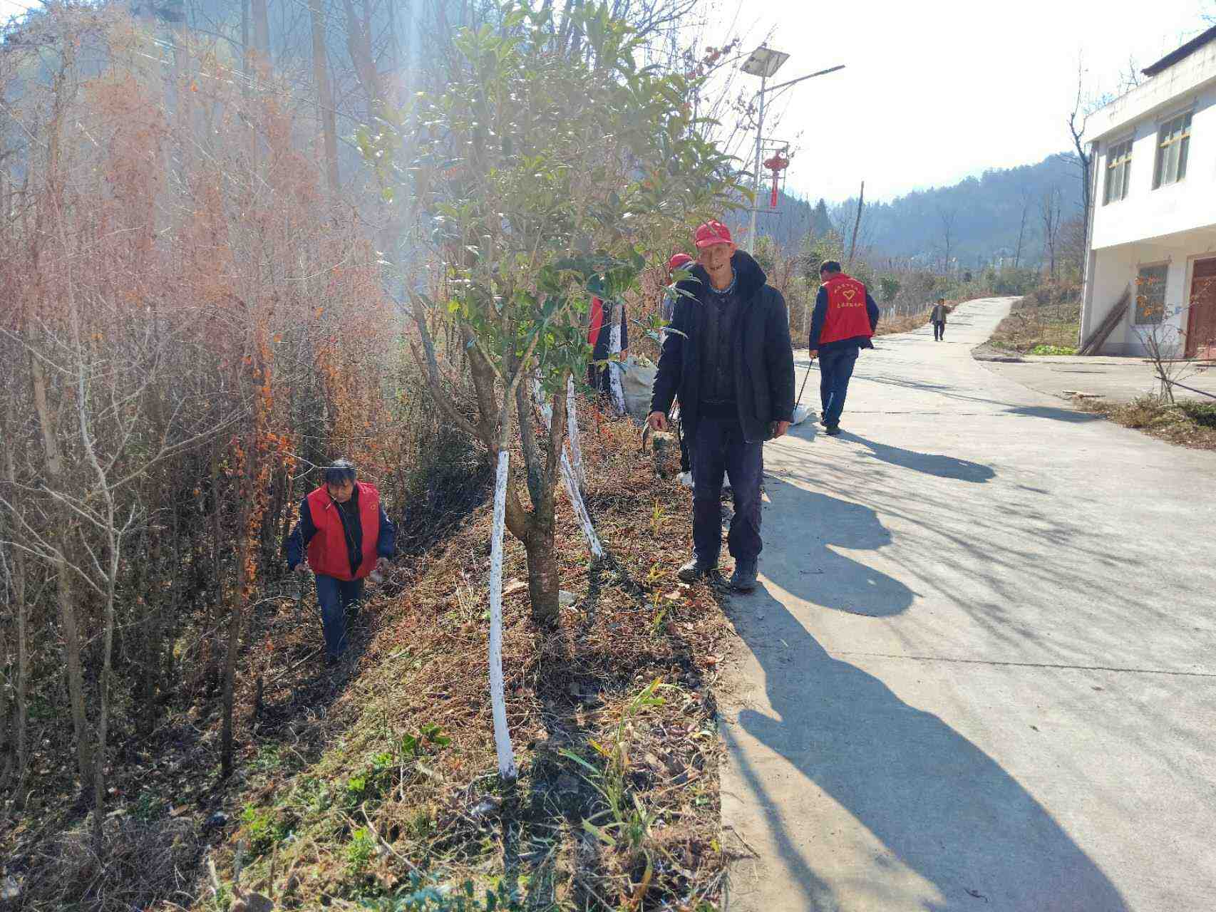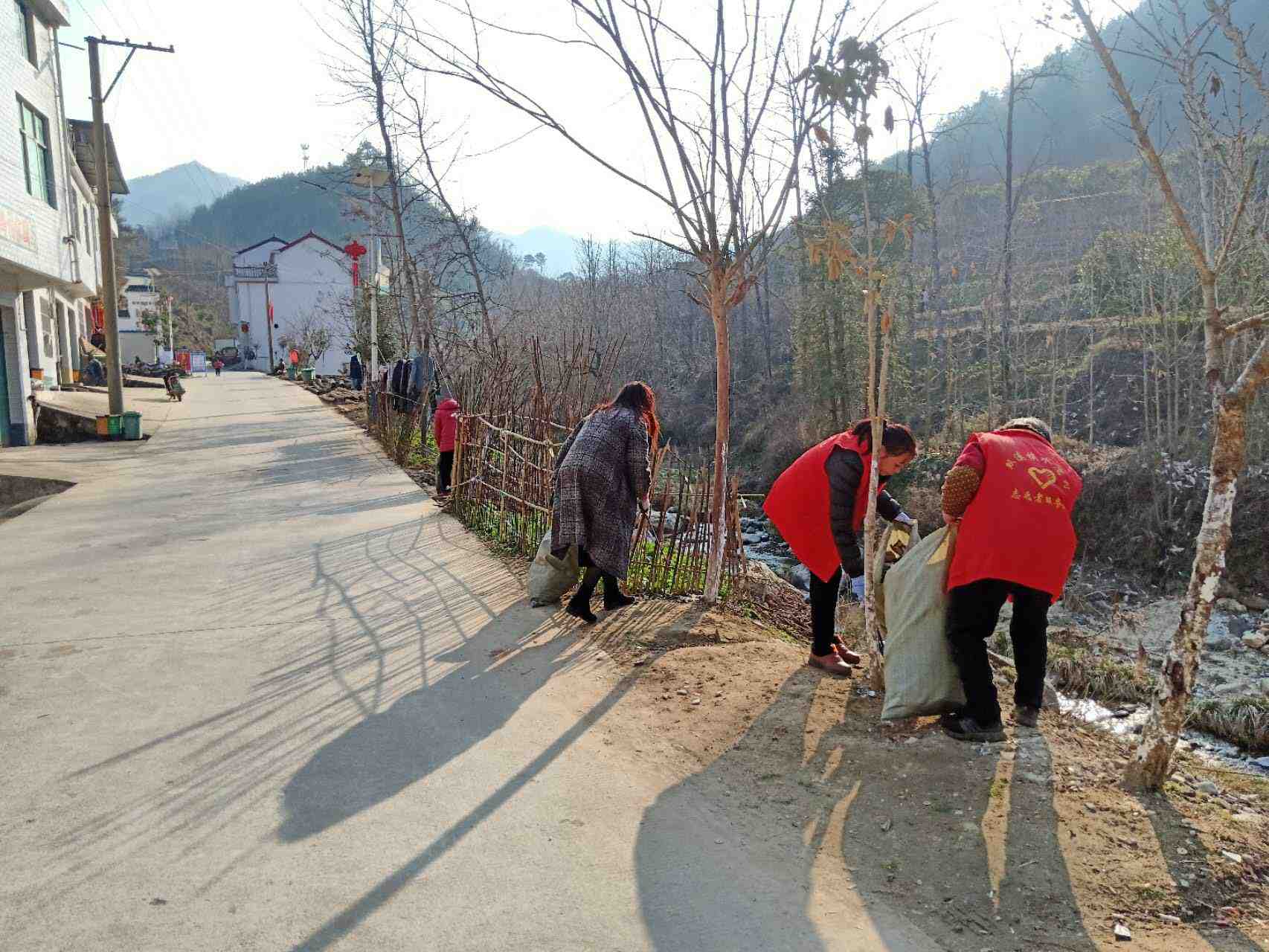 组织志愿者对辖区内两条主干道进行清理