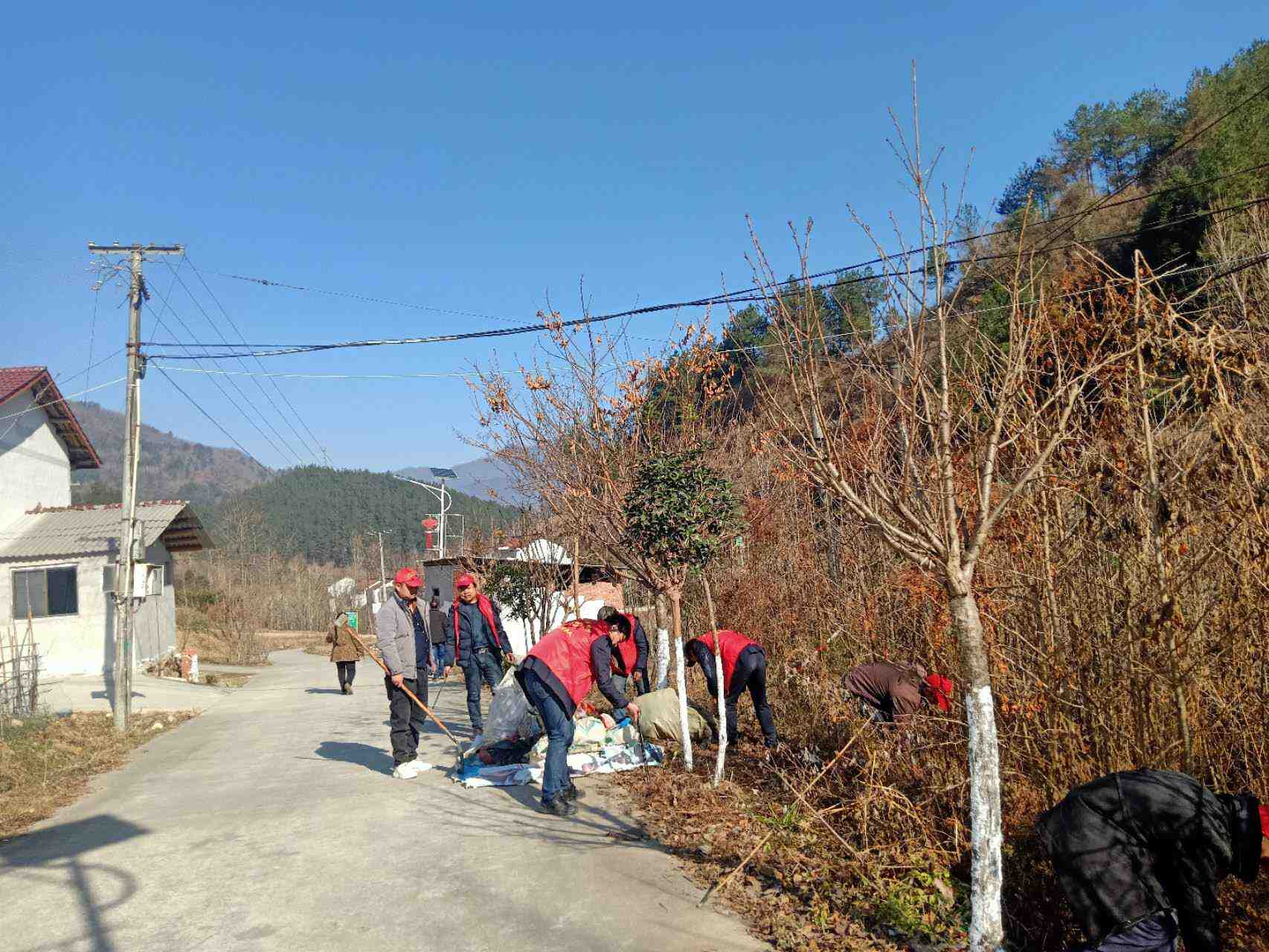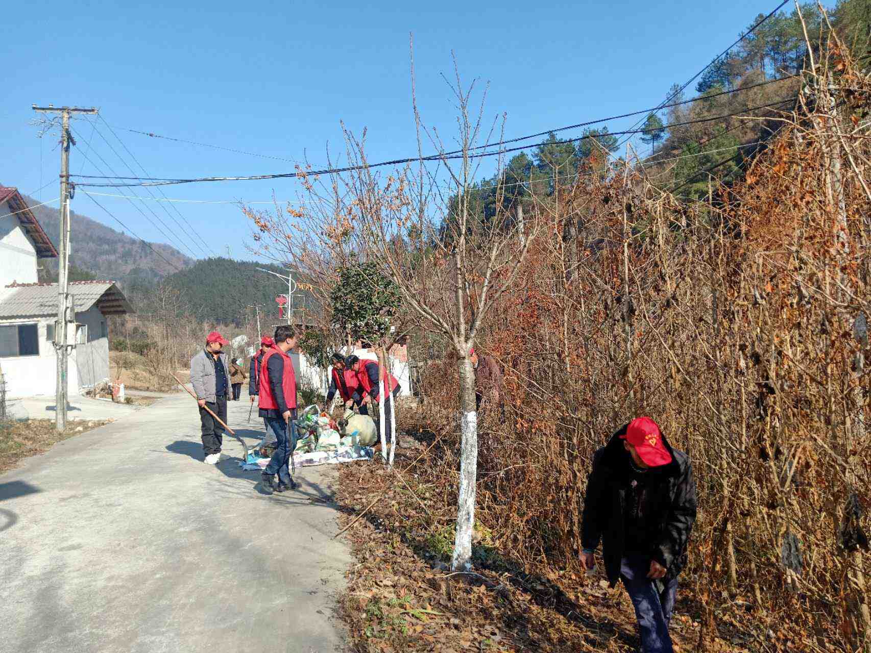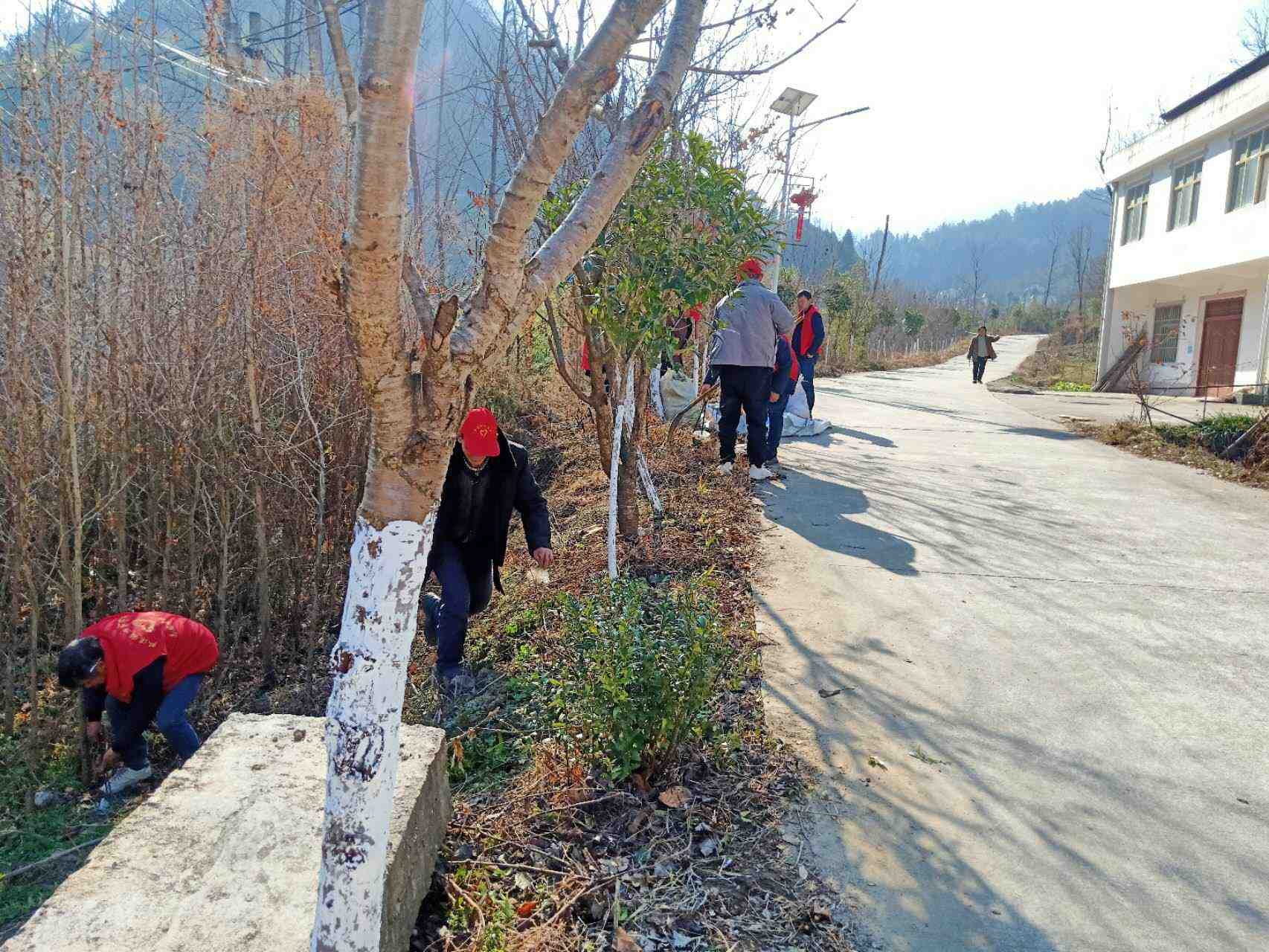 组织志愿者对辖区内两条主干道进行清理