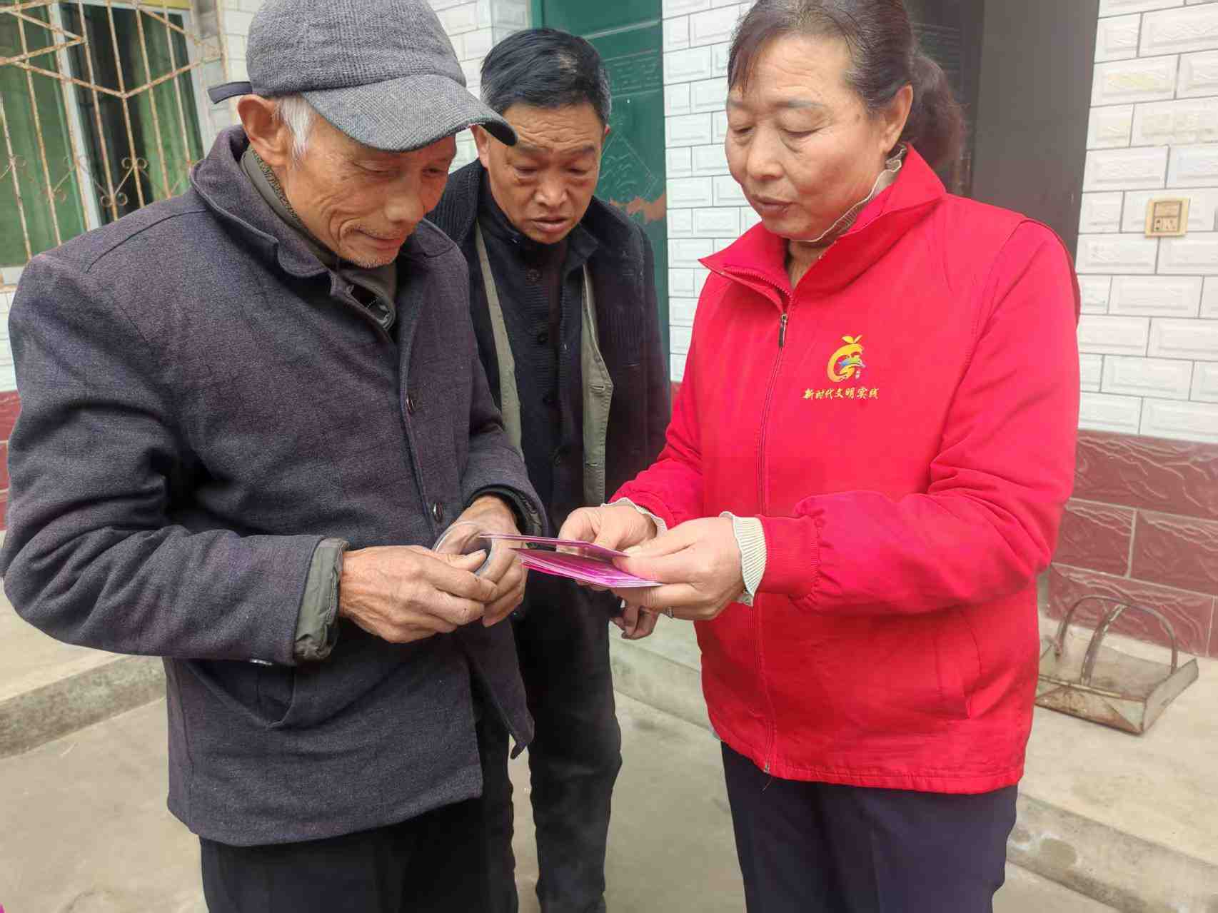 文苏村新时代文明实践站志愿者入户开展政策宣传活动。
