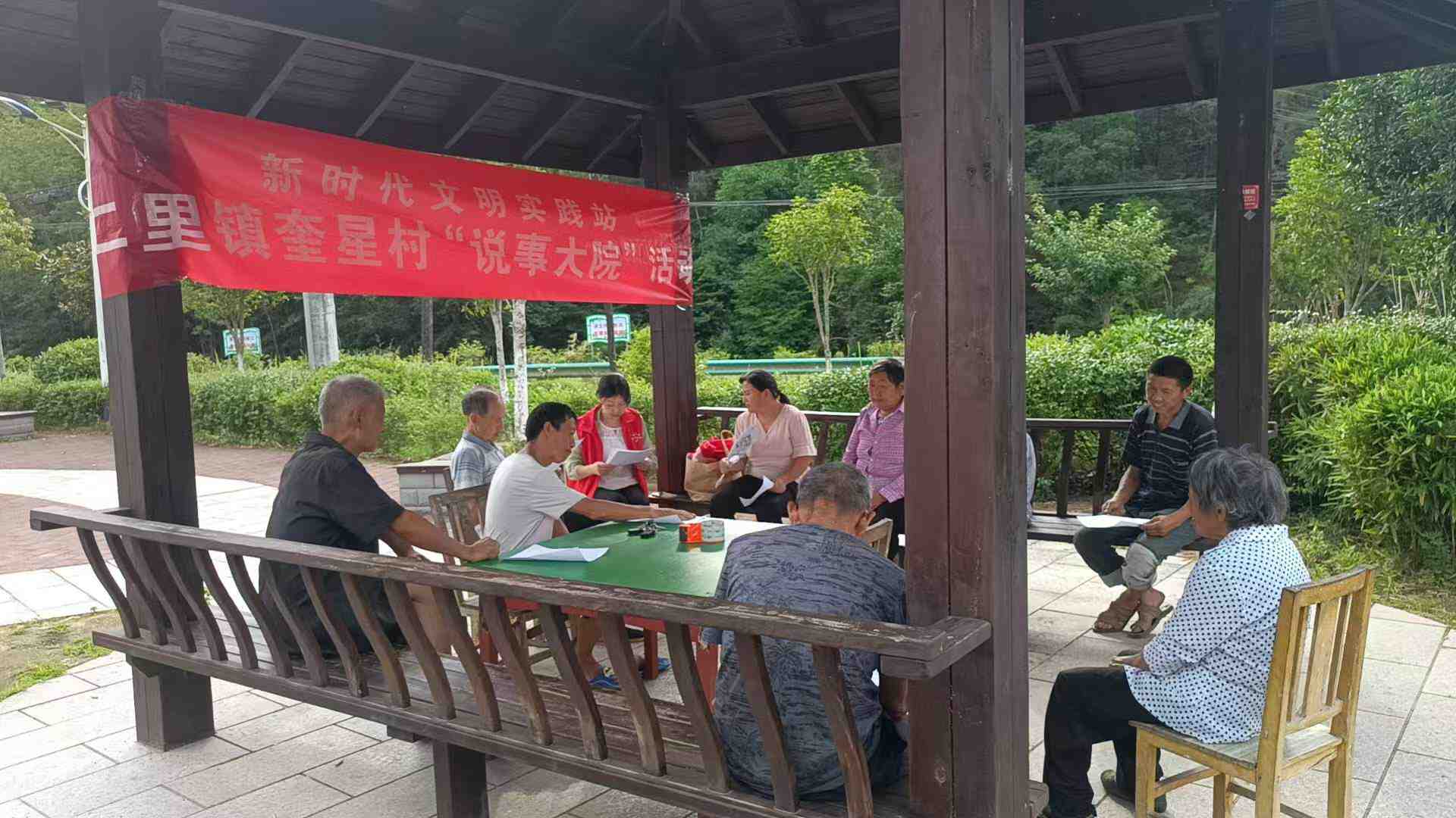 魁星村开展说事大院活动 宣传野生动植物保护 ,非法采砂,防汛备汛,环境整治,养老保险缴费等宣传工作