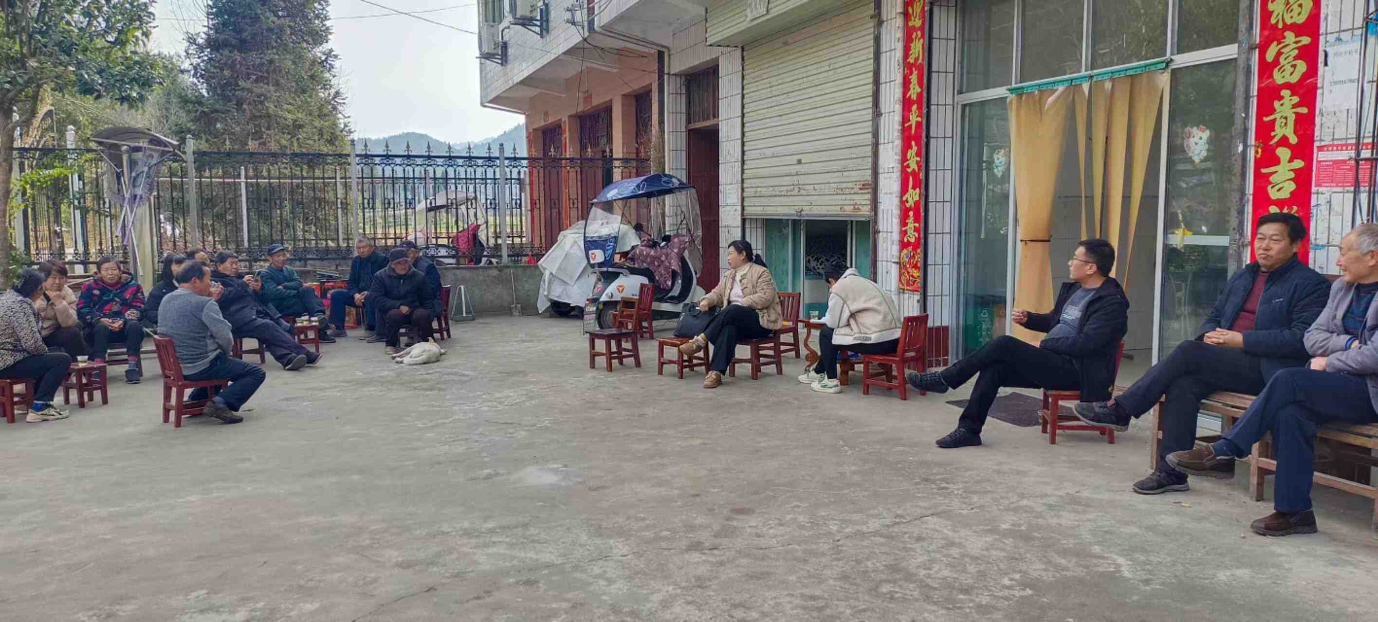 黄垭村召开院坝会,组织四组和五组的群众,共同商讨关帝到白云这片的土地流转的问题,2025年产业发展怎