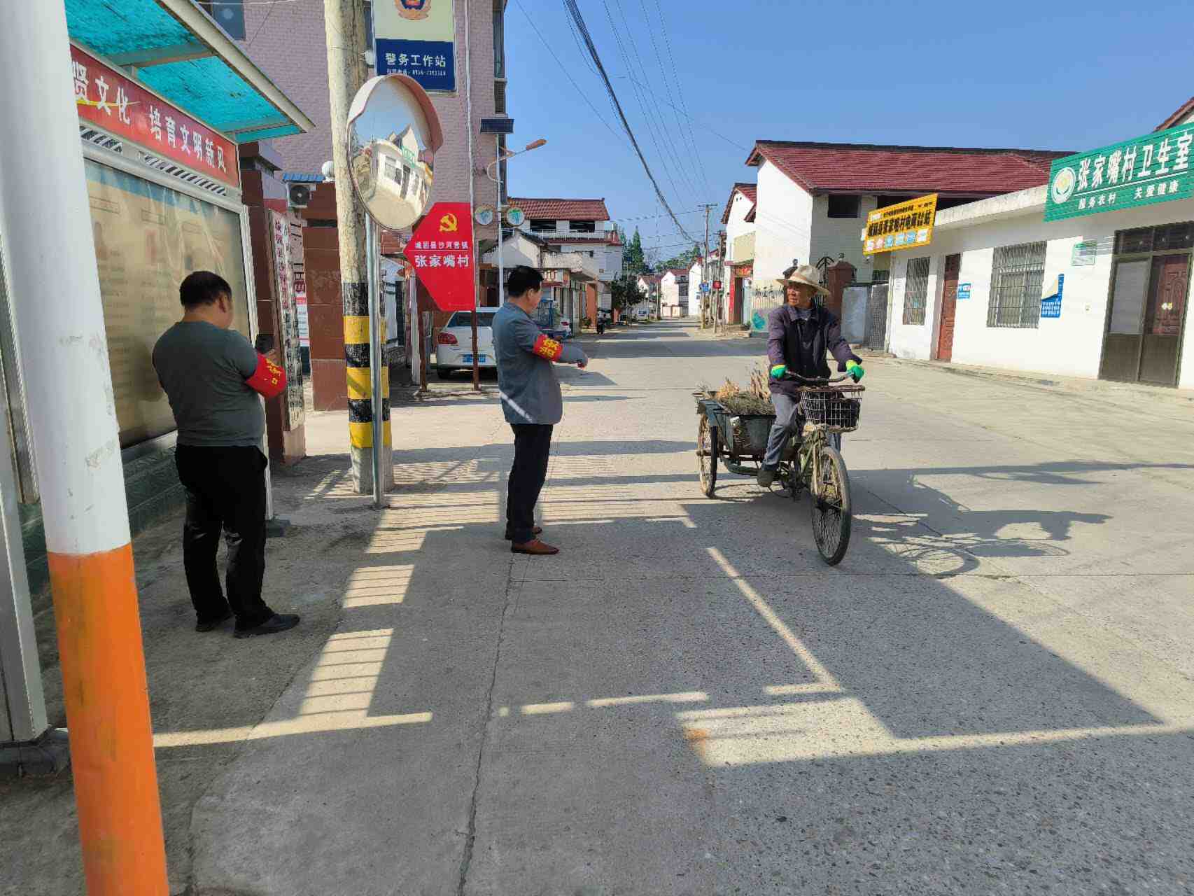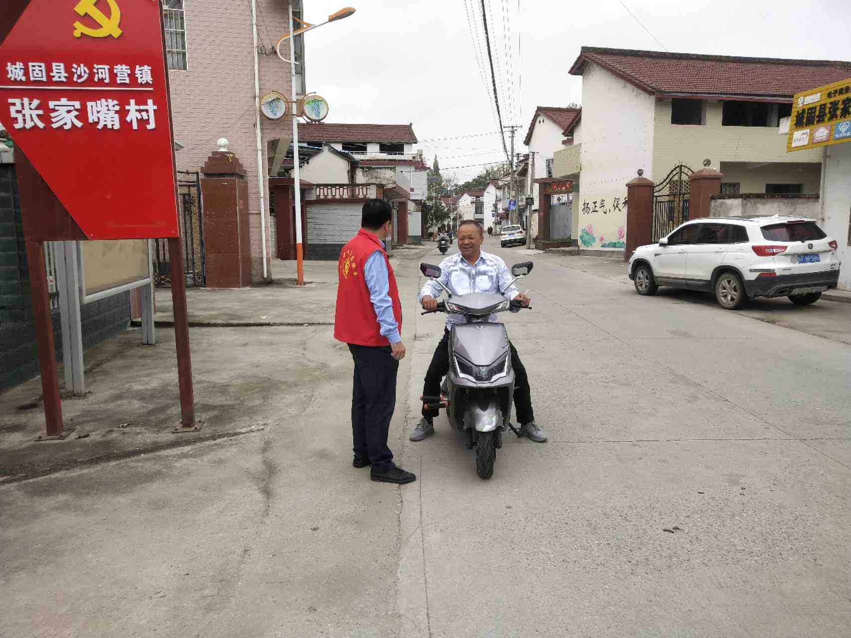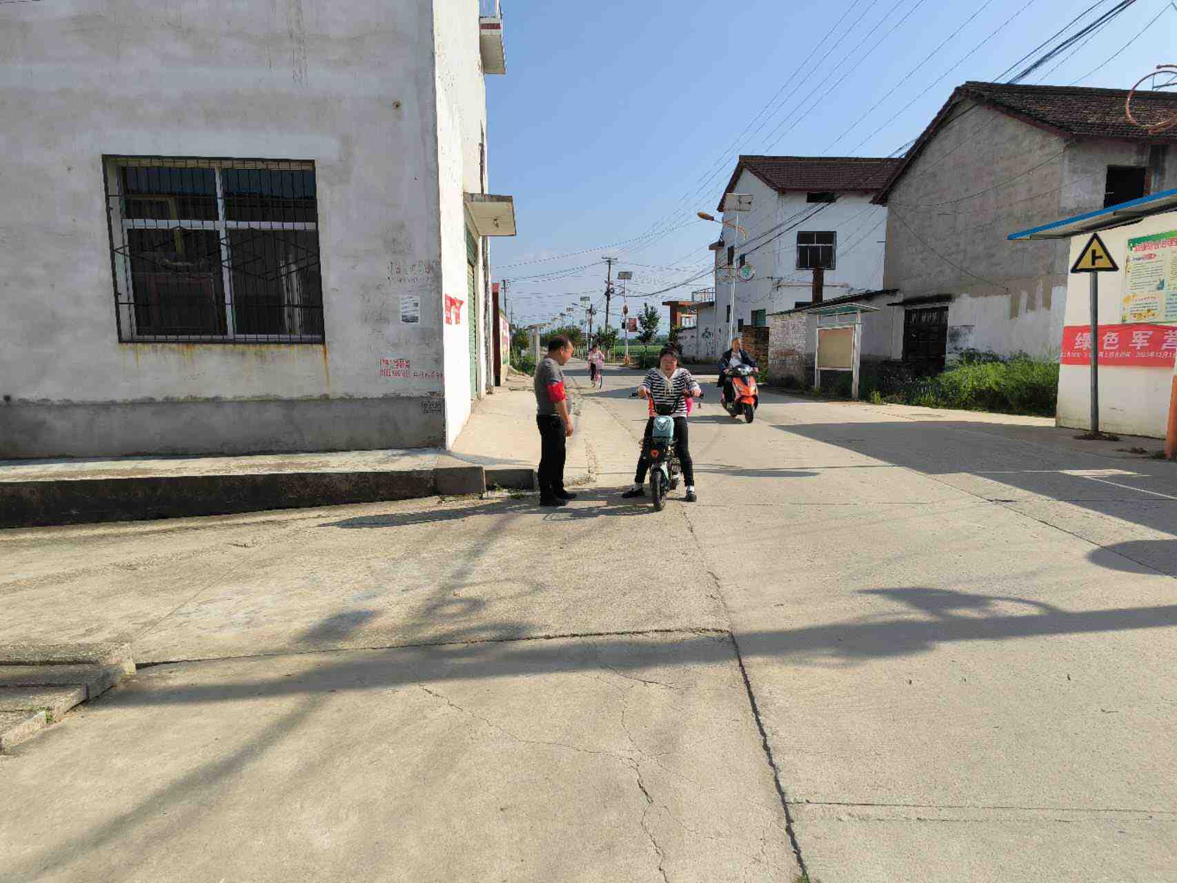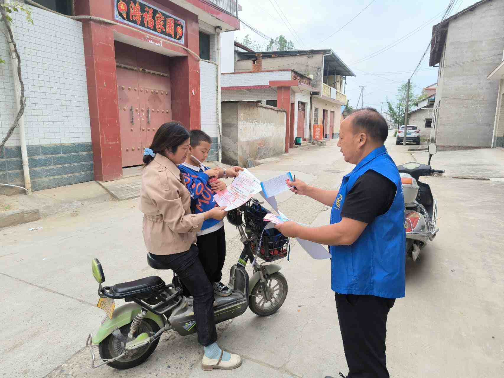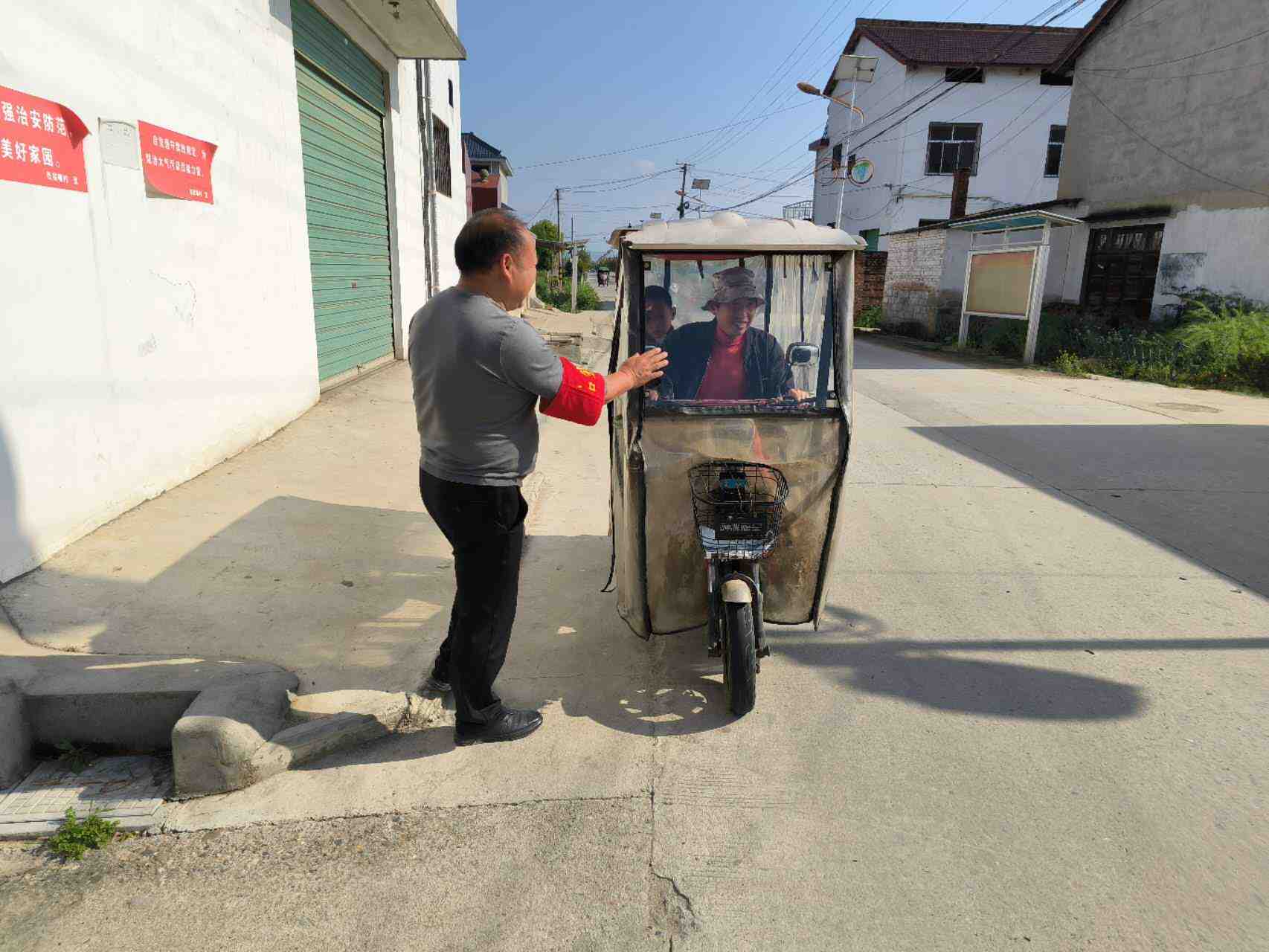 组织志愿者在村主干道学生放学时间段开展道路交通安全劝导工作。对来往两轮车,三轮车的违法载人,不戴头盔