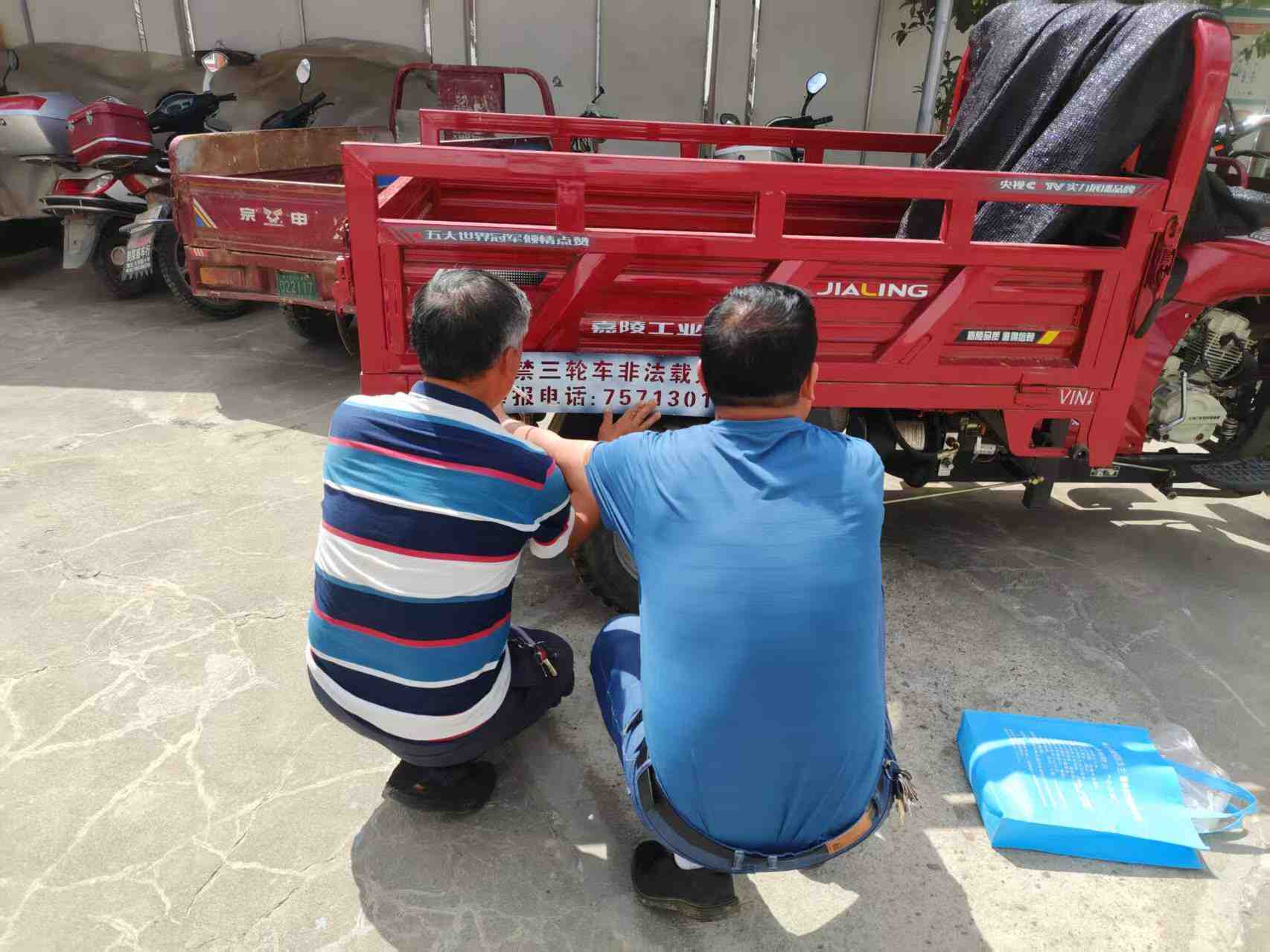 开展交通安全劝导,宣传交通法律法规,骑车戴好头盔,禁止三轮车载人。