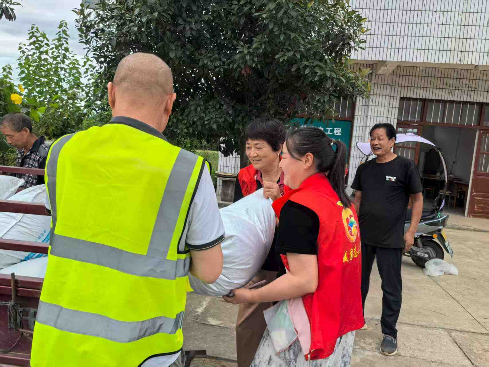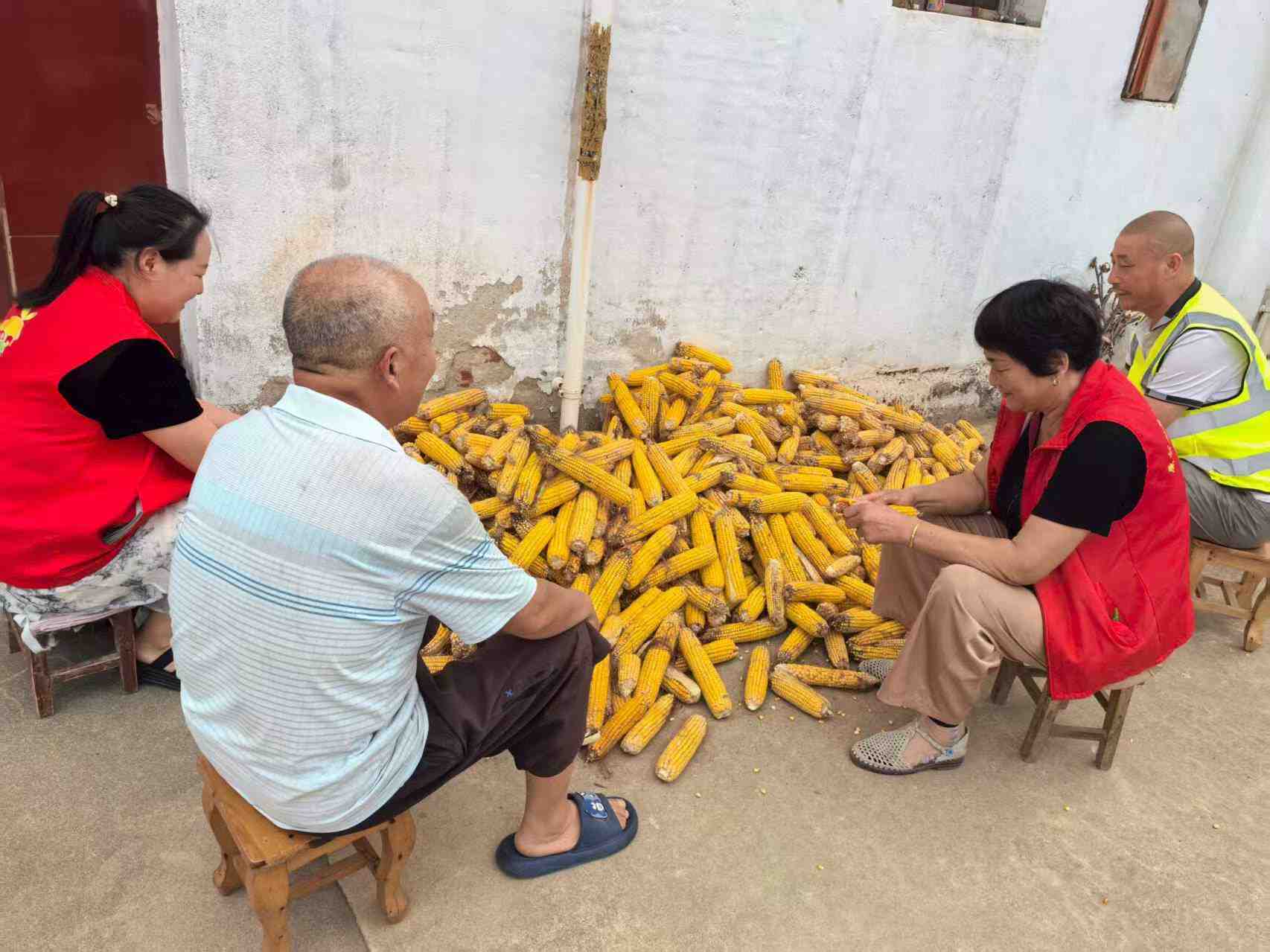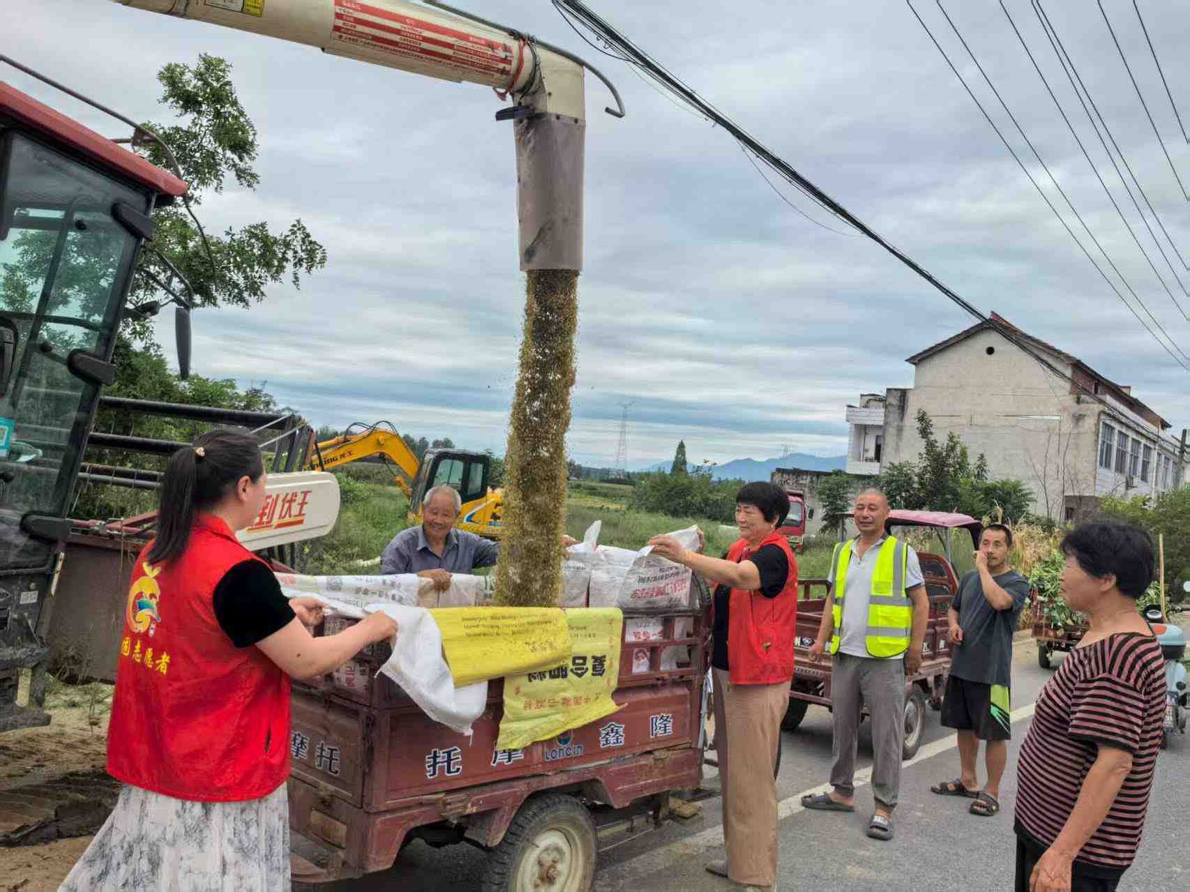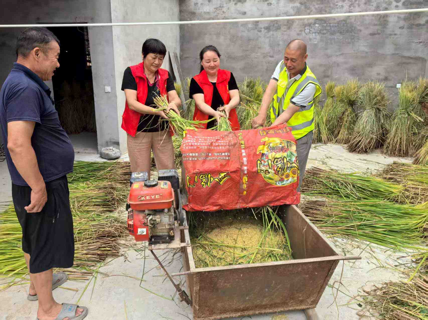 东原公村新时代文明志愿者组织去给弱势群体收谷子,解决了缺劳动力抢收,抢运争取时间,把成熟了的粮食入仓
