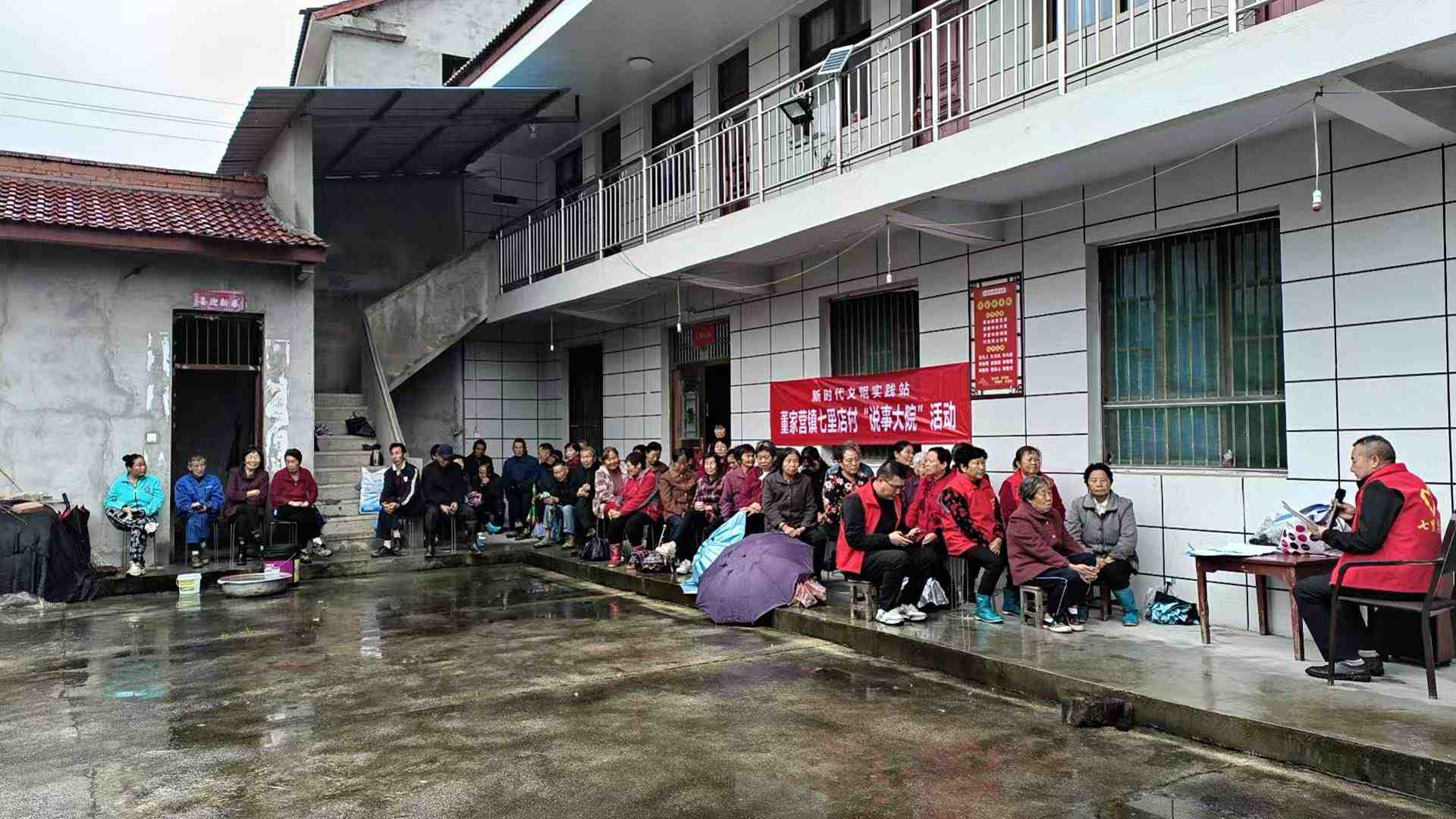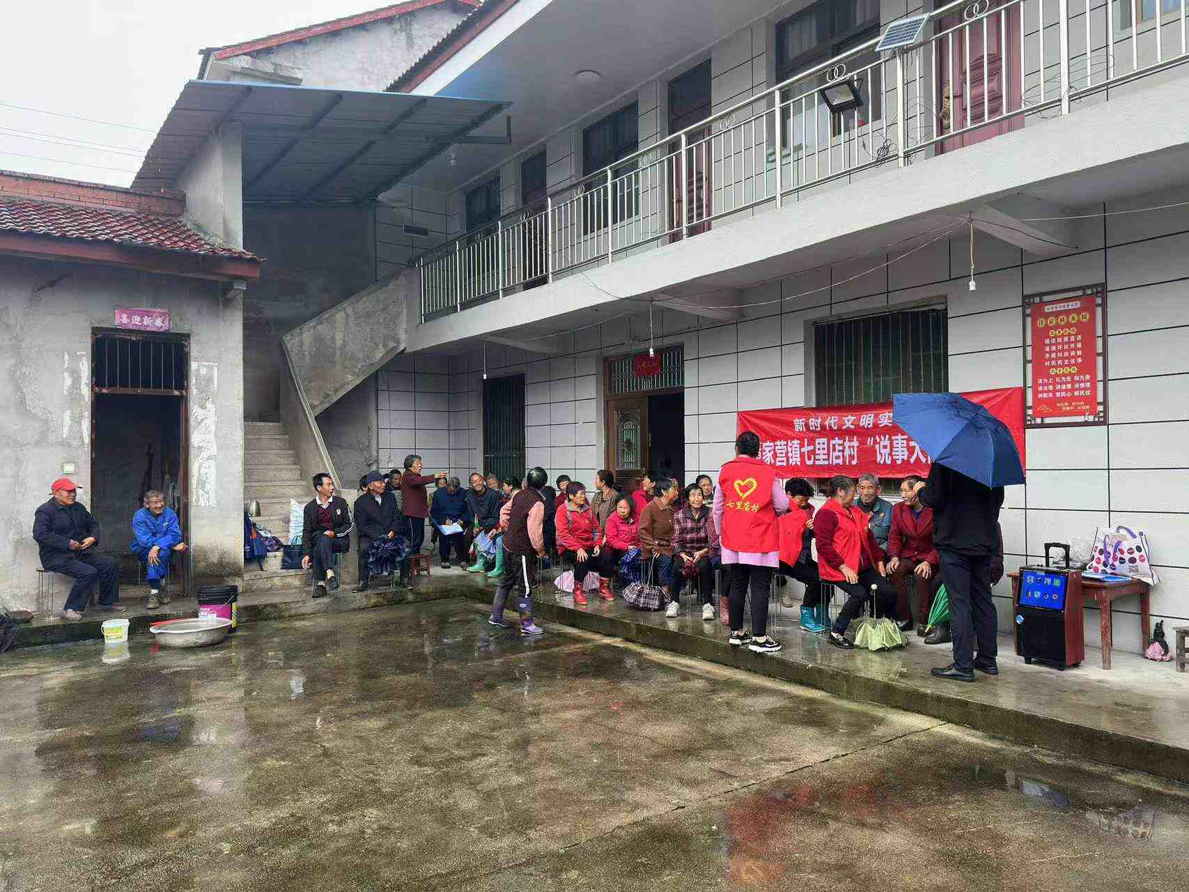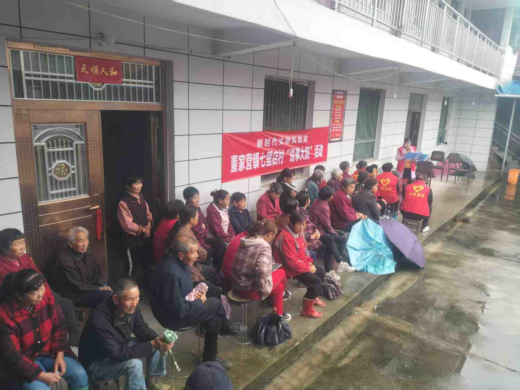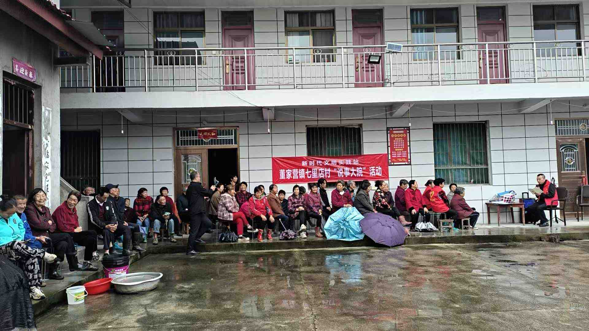 下雨天利用院坝会说事会开展乡风文明宣讲活动